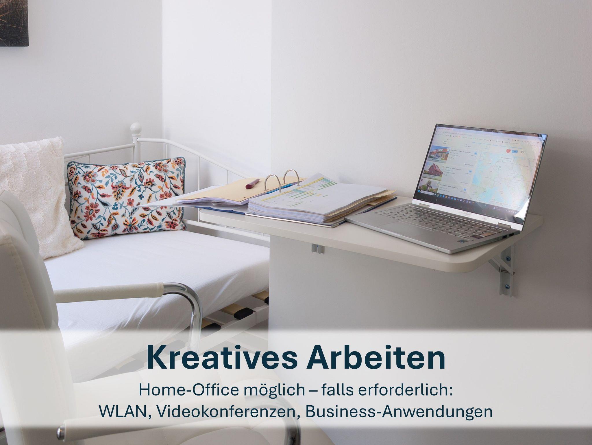 Die Ausstattung lässt keine Wünsche offen: Vom schnellen und stabilen WLAN über einen komfortablen Schreibtisch für digitales Arbeiten bis hin zur liebevoll ausgewählten Einrichtung erwartet Sie hier ein perfekter Mix aus Funktionalität und Flair. Ob Sie Urlaub machen, remote arbeiten oder beides kombinieren möchten ? hier ist alles möglich.