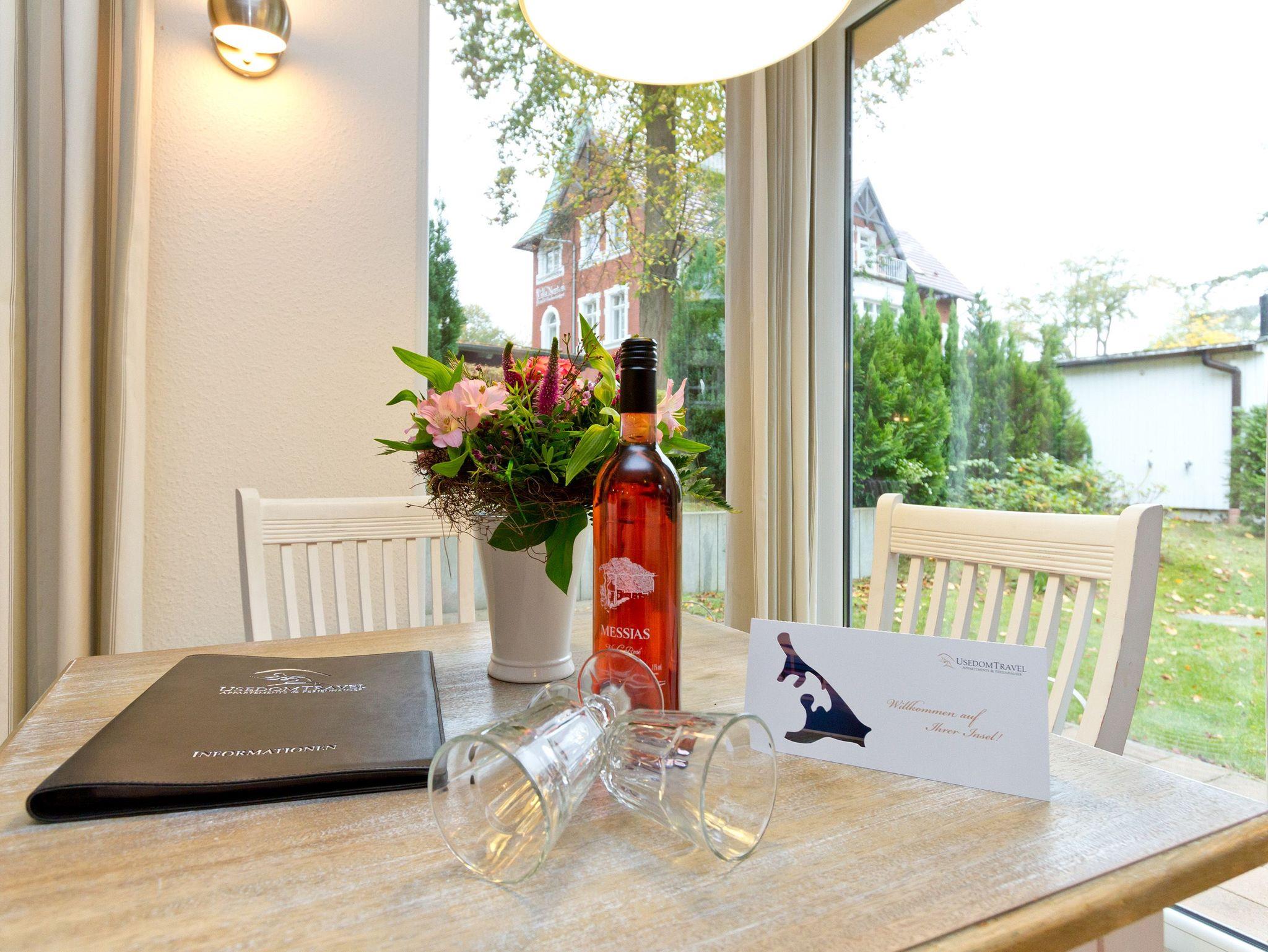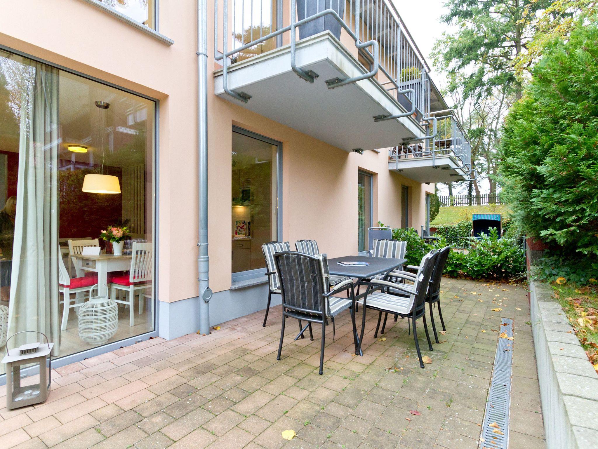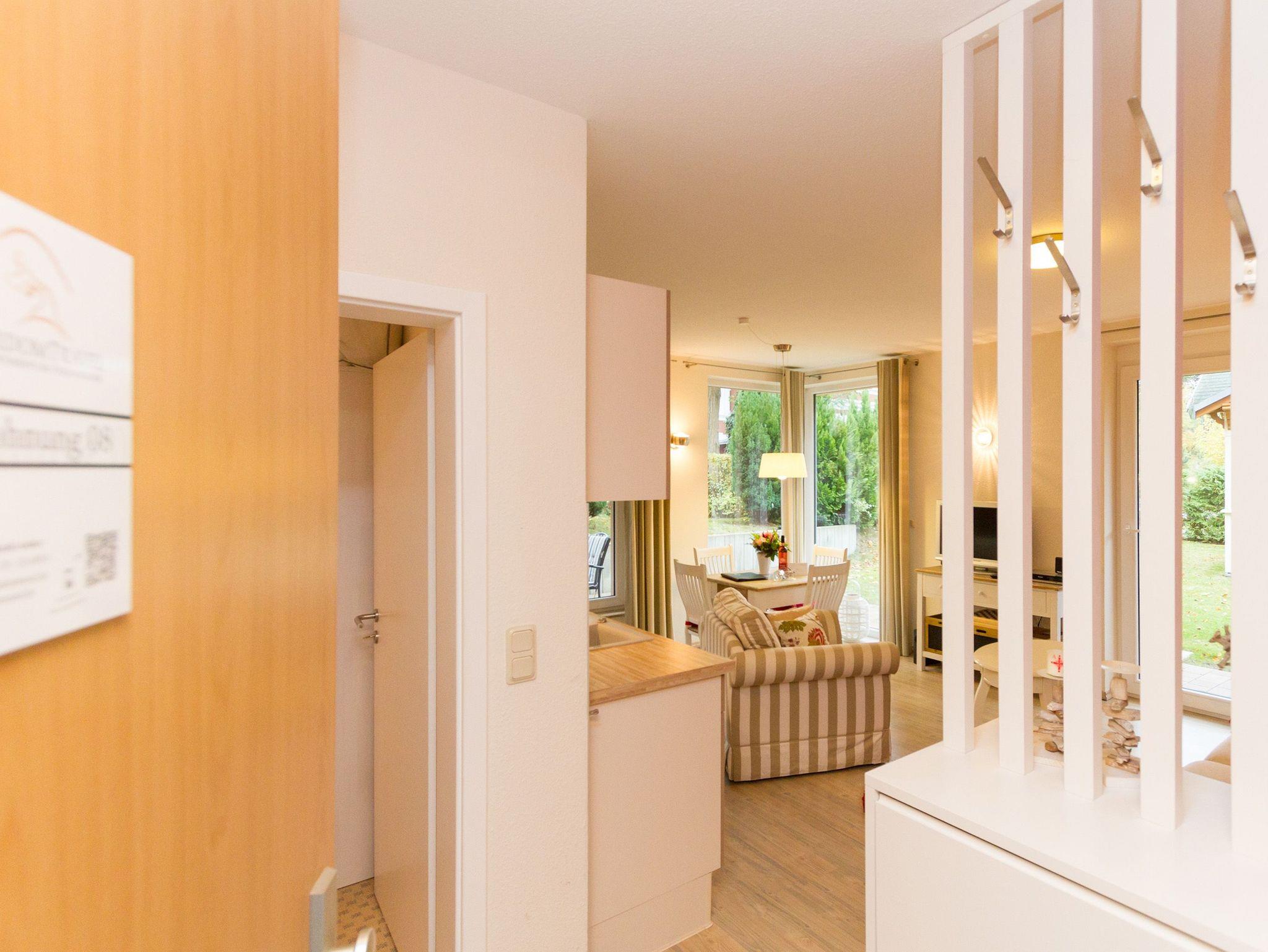 Diese 2-Raum-Ferienwohnung besticht durch eine zeitlos elegante Einrichtung und harmonierende Stoffe und Farben. Das helle Wohnzimmer mit Flachbild-TV und die komplett ausgestattete Küchenzeile eignen sich für einen komfortablen Urlaub. Im stylischen Schlafzimmer mit Doppelbett (1,80m x 2,00m) findet auch ein Babyreisebett Platz. Auf der umlaufenden Terrasse genießen sie die Morgen- und Nachmittagssonne und als besonderes Bonbon steht Ihnen noch ein kleines Teehäuschen vor Ihrer Terrasse zur Verfügung. Auf Wunsch stellen wir für unsere kleinen Gäste ein Kinderreisebett (ohne zusätzliche Matratze [&] Bettzeug) und einen Kinderhochstuhl ( gegen einen Aufpreis) zur Verfügung. Für Ihren Komfort sind die Betten bei der Anreise bezogen und Handtücher liegen bereit. Ein tolles Domizil für zwei Erwachsene und ein Kleinkind.