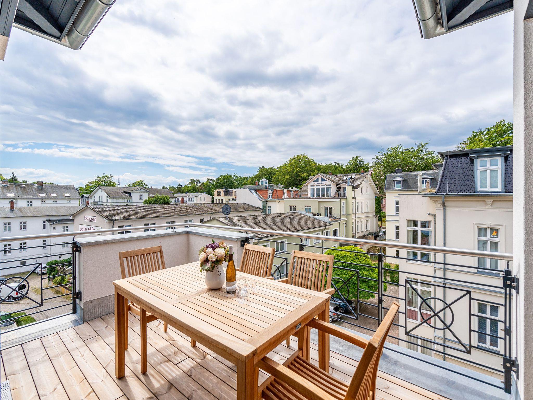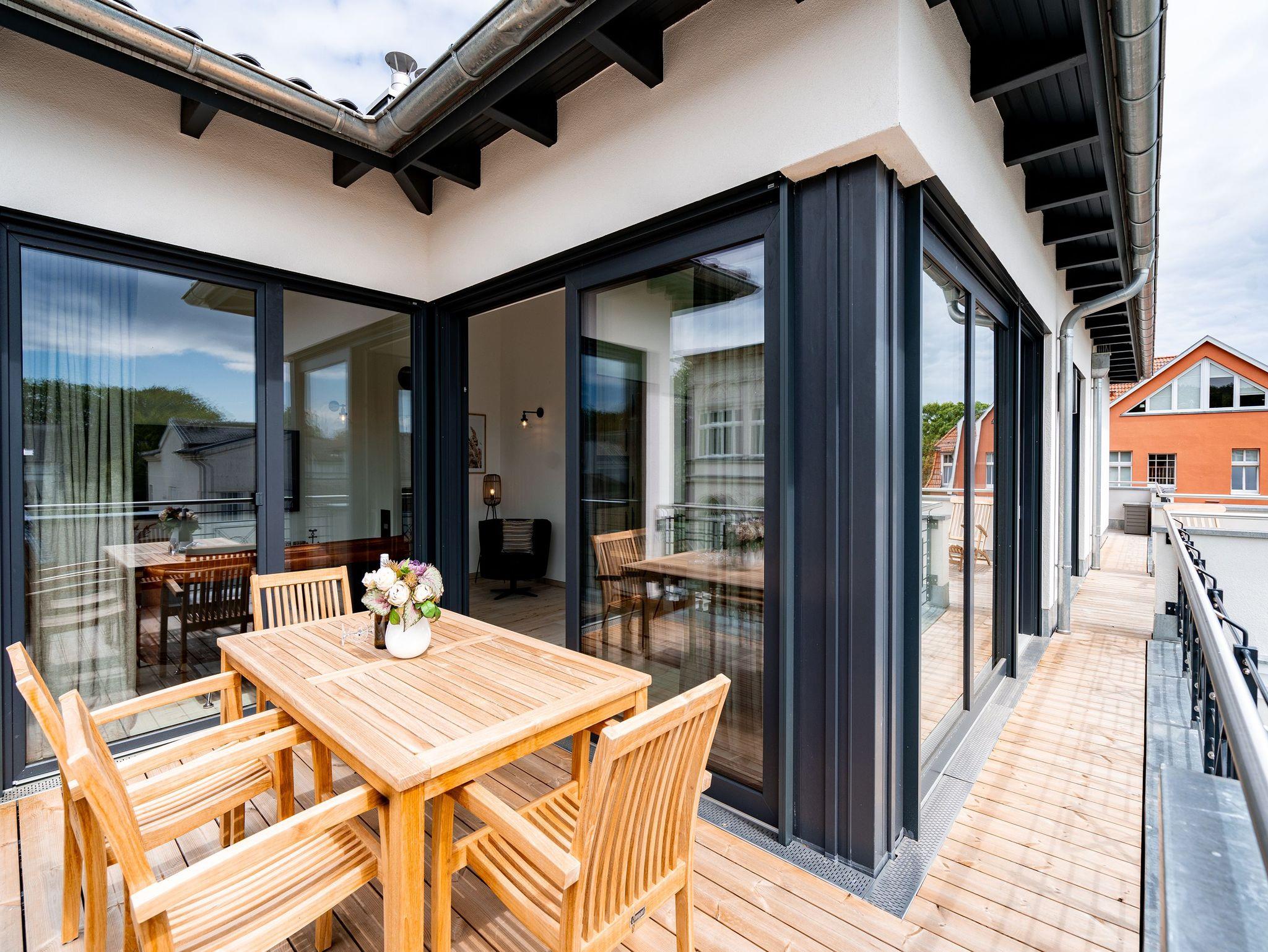 Nur 50m vom Strand entfernt und in einer kleinen Nebenstraße gelegen, empfängt Sie unser neues Domizil Quartier am Strand. Als zweites Objekt am Platz direkt an der schönen Strandpromenade gelegen, fügt sich die Anlage stilvoll zwischen Bäderstilvillen und Strandumgebung ein. Die insgesamt 9 Appartements und 2 Penthouses verfügen über helle und modern eingerichtete 2 bis 3 Zimmer. An kühleren Tagen sorgen Saunen und Kamin, die zu jedem Appartement gehören, für Entspannung in Ihrem Urlaub. Dem Klang der Wellen können Sie bequem von den Terrassen, Balkonen und Dachterrassen aus zuhören, denn jedes Appartement besitzt einen separaten Außenbereich. Der Blick auf die Ostsee ist Ihnen aus einigen Appartements möglich, aus den Penthouses garantiert. Offene Wohnbereiche und voll ausgestattete Küchen komplettieren das neue Objekt Quartier am Strand. Zudem gibt es eine hauseigene Tiefgarage (Einfahrthöhe 2,05 m) sowie einen Außenstellplatz (für Appartement 3), so dass ein eigener PKW-Stellplatz garantiert ist. Zu den weiteren Annehmlichkeiten des Objektes zählt ein Fahrstuhl, der Sie von der Tiefgarage bequem bis in die Etage Ihres Urlaubsdomizils leitet. Kostenfreies W-Lan rundet das Domizil ab. Wir wünschen Ihnen einen schönen Urlaub!
