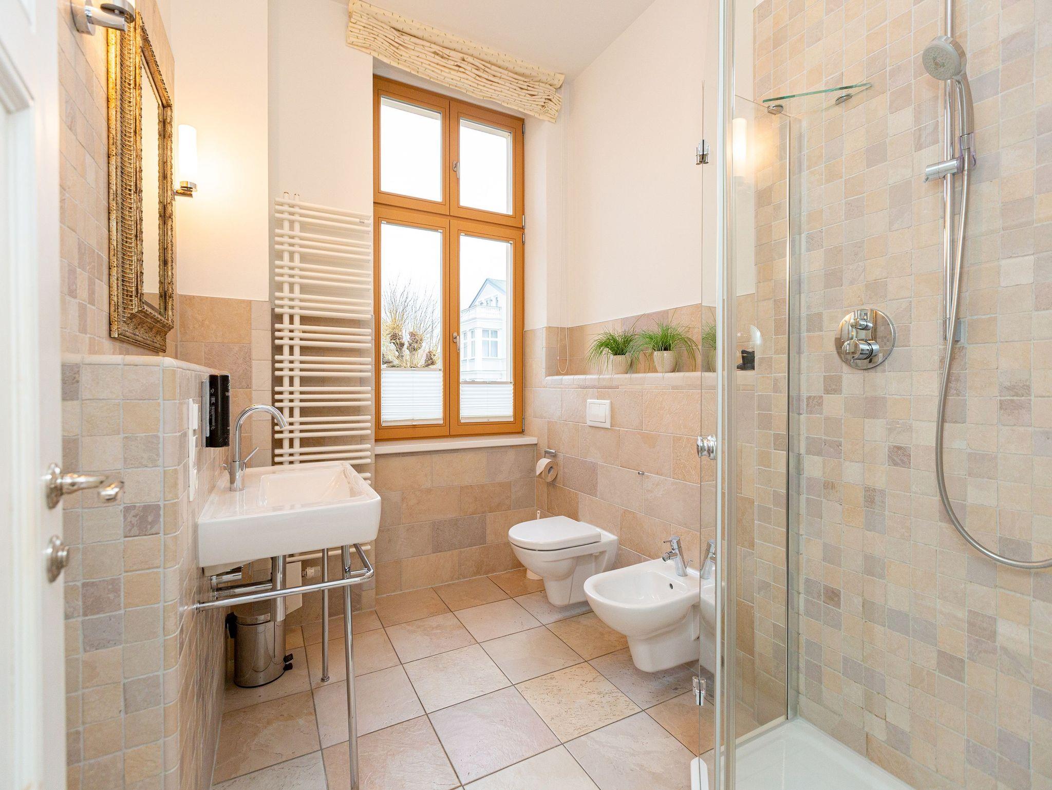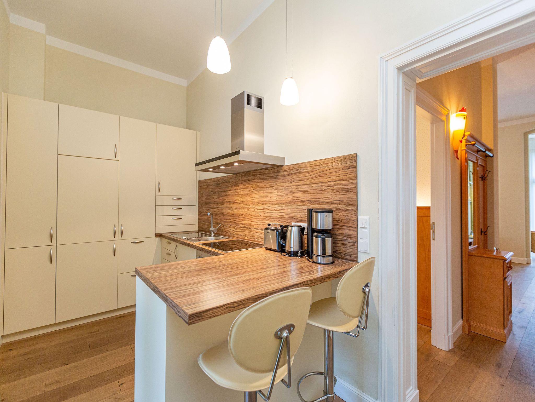 Villa Julius - Freuen Sie sich auf ein Wohnerlebniss der besonderen Art. Eine wunderschöne historische Villa mit großzügigen, stylischen Wohnungen und hochwertigster Einrichtung ist ein passendes Hideaway! Lassen Sie sich begeistern von einem stilvollen Ambiente, das von einer versierten Innenarchitektin gestaltet wurde. Viel Platz und jeglicher Komfort verstehen sich von selbst. Jedes der sechs 2- bzw. 3-Raum-Appartements wurde individuell eingerichtet: Marrakesch, La Mer, American Style... Wohnungen, die sofort Urlaubsatmosphäre versprühen. Auch die wunderschöne Gartenanlage mit einer Grillecke wird Sie begeistern. Das WLAN-Netz im Haus kann kostenfrei genutzt werden. Fahrradständer und ein Pkw-Stellplatz befinden sich am Haus.