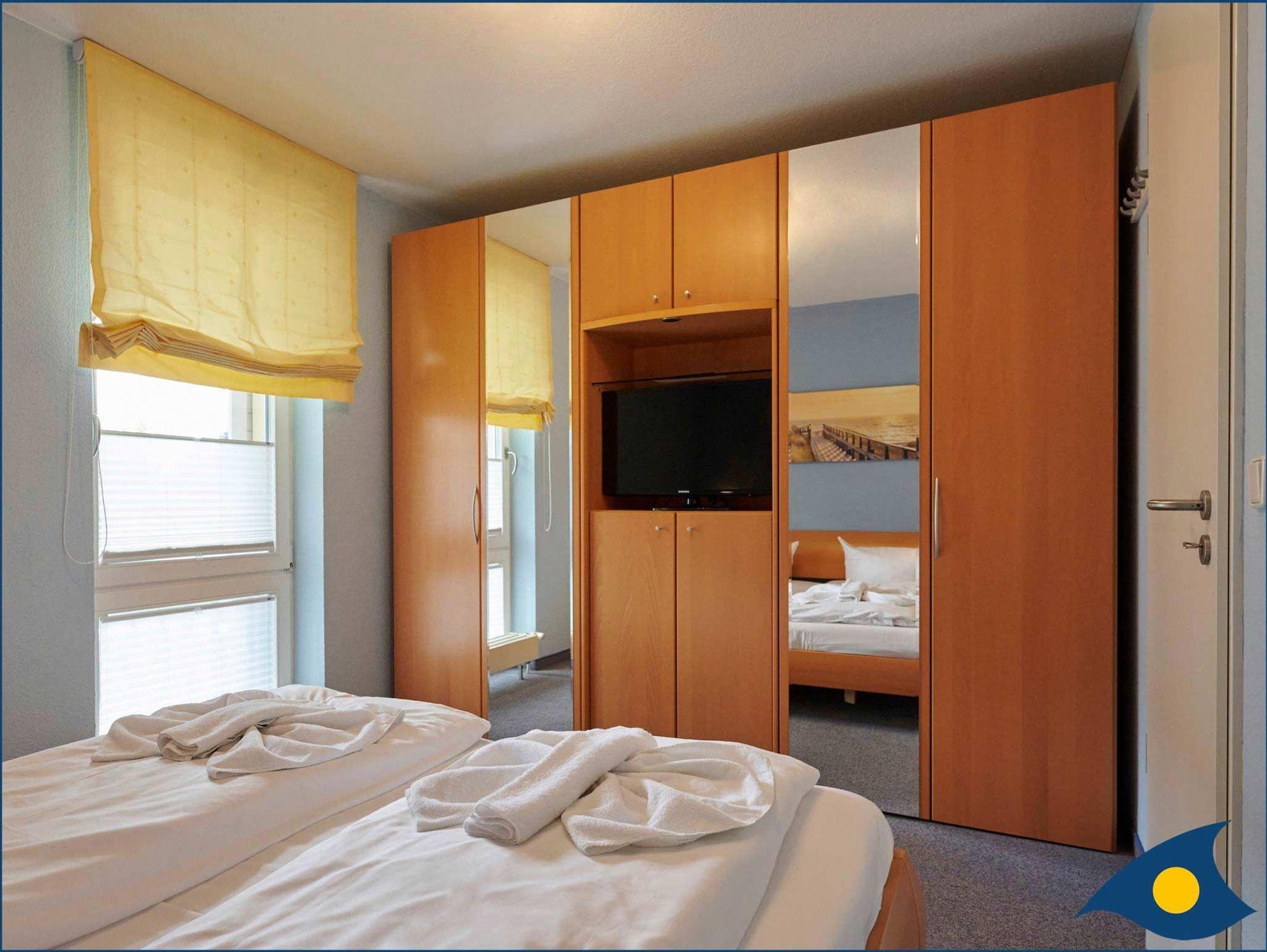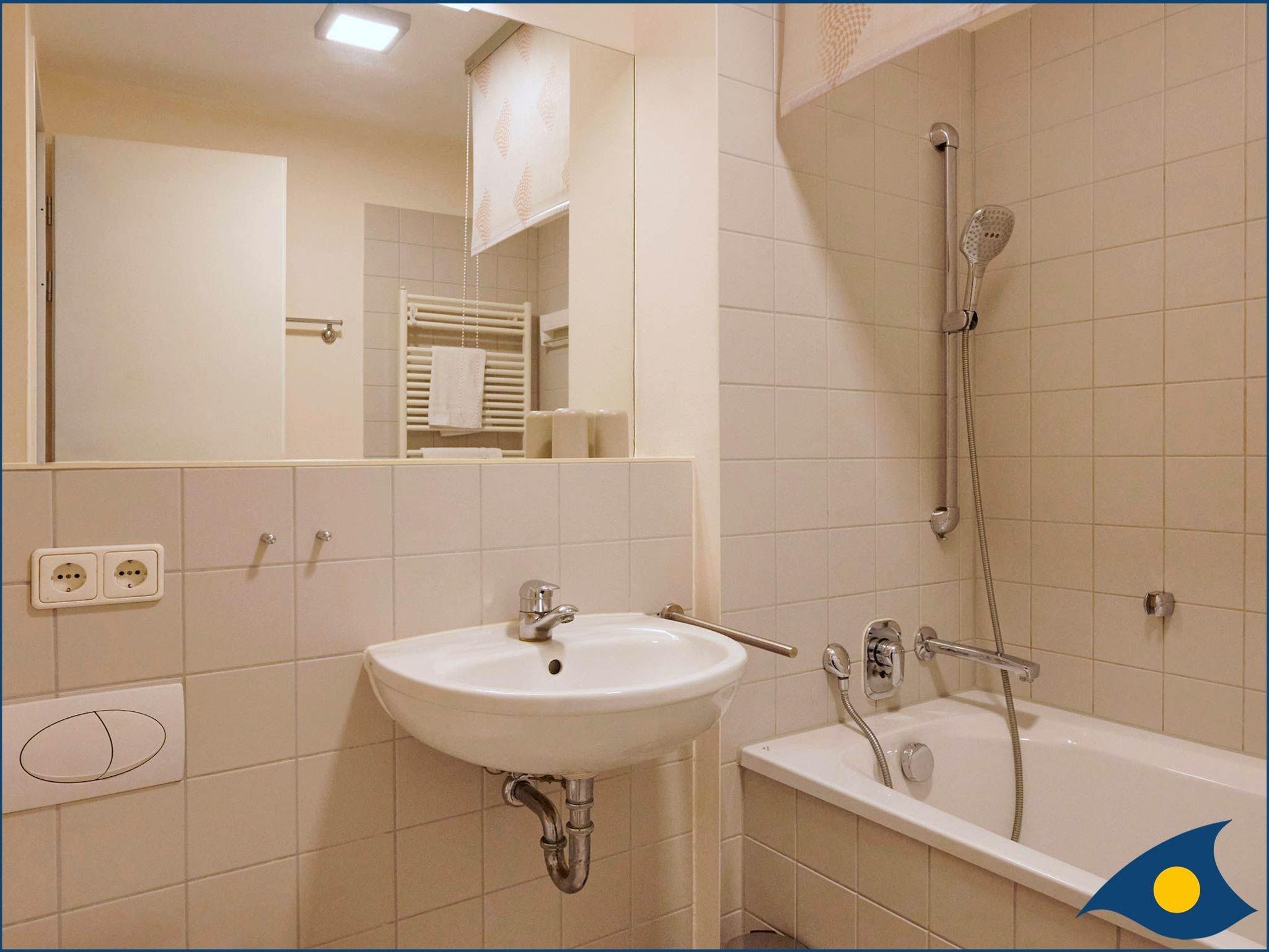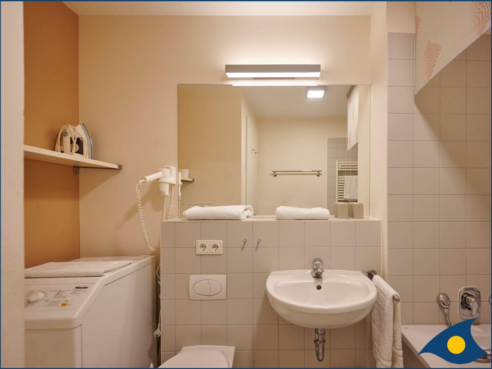 Dank dem hochwertigen und bequemen Doppelschrankbett im Wohnzimmer und dem Gäste-WC mit großem Waschtisch nebenan ist die Wohnung auch für vier Personen sehr gut geeignet.