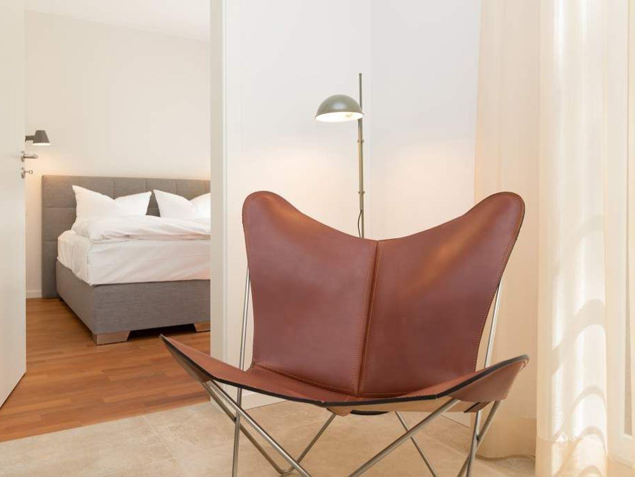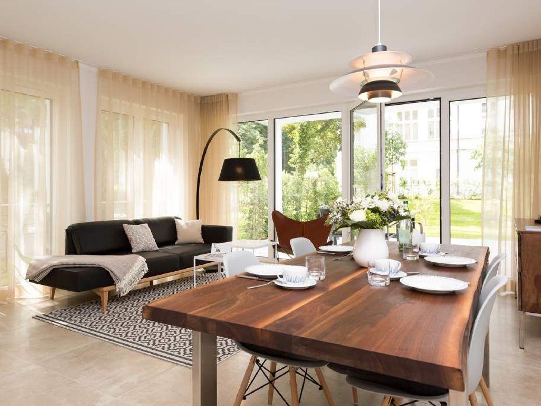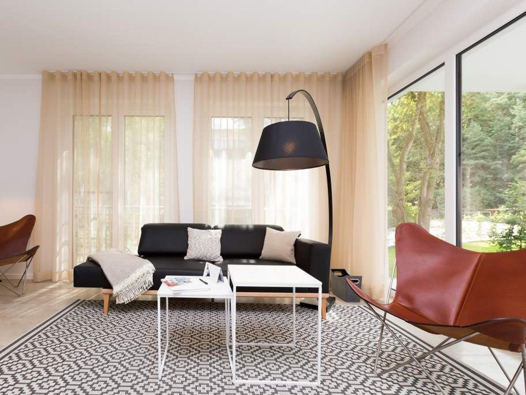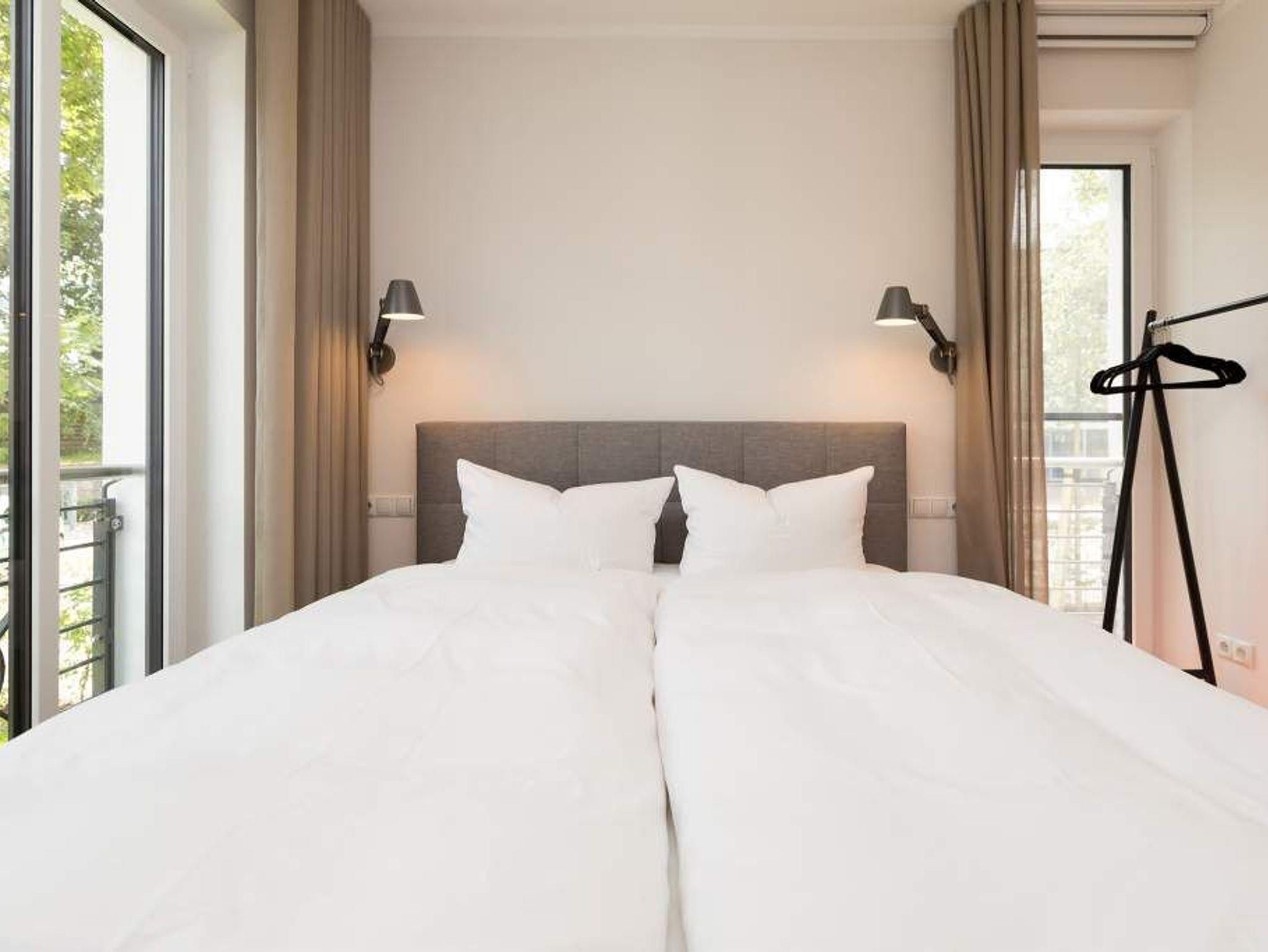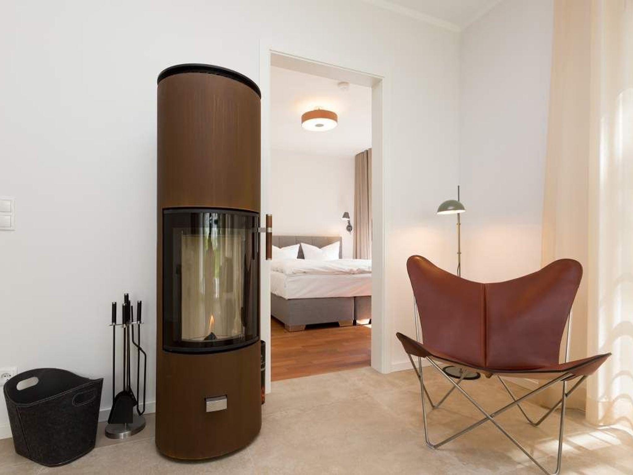 Zurücklehnen, die Beine ausstrecken, ein kühles Getränk vor sich auf dem Tisch, den Blick über das üppige Grün des Gartens schweifen lassen. Urlaub für die Seele. In der Wohnung Nummer 3 in der Villa Strandgrün ist das möglich. Egal ob auf der 30 Quadratmeter großen Gartenterrasse, im lichtdurchfluteten und mit Design-Möbeln eingerichteten Wohnzimmer oder der wohnungseigenen Panorama-Sauna ? in den 80 Quadratmetern dieses Ferienappartements wird das Wohlfühlen und Entspannen leicht gemacht. Vier Personen und ein Kleinkind (im Kinderreisebett) haben hier viel Platz zum Durchatmen. Schlicht, aber nobel ist Ihr Urlaubsdomizil vom Ledersofa, über die beiden Butterfly Sessel, die ausgefallene Bogenlampe bis hin zum behaglichen Musterteppich geprägt vom skandinavischen Design. Der Kaminofen sorgt an kühlen Tagen für wohlige Behaglichkeit. Der 49 Zoll-Flat-TV mit Blue Ray-Player ist ein echter Hingucker. Ein Highlight des Wohnzimmers, an das sich eine offene und hochwertig ausgestattete Küche anschließt, ist der große Echtholztisch mit den Vintage-Schalenstühlen. Für einen erholsamen und traumreichen Schlaf sorgen in den beiden Schlafzimmern die komfortablen Doppelboxspringbetten (1,60m x 2,00 m). In einem Schlafzimmer gibt es in den eigens angefertigten Einbauschränken reichlich Ablagemöglichkeiten. Beide Schlafzimmer verfügen ebenfalls über Flat-TVs. Eine Panoramasauna in einem der beiden geräumigen Bäder sorgt für den absoluten Wellnessgenuss. Beide Bäder haben darüber hinaus jeweils Dusche, Waschtisch und WC. Sogar eine Waschmaschine mit Trockner ist hier zu finden. Damit Sie sich so richtig entspannen können, sind die Betten bezogen und Handtücher liegen für Sie bereit. In der Tiefgarage ist ein Stellplatz reserviert. Für den Tag am Meer steht Ihnen ein Strandkorb am Strand von Mitte Mai bis September (je nach Witterung) zur Verfügung.