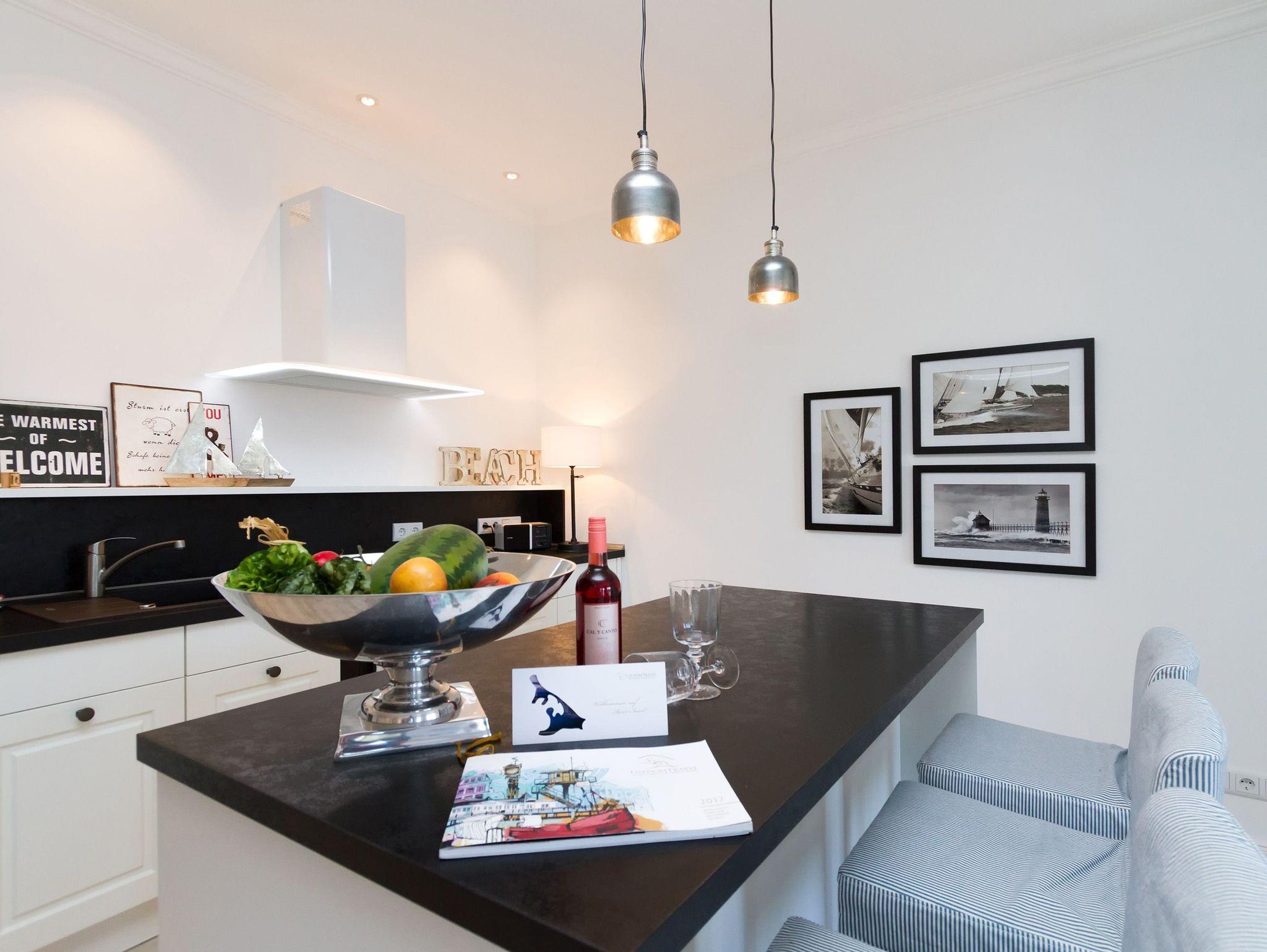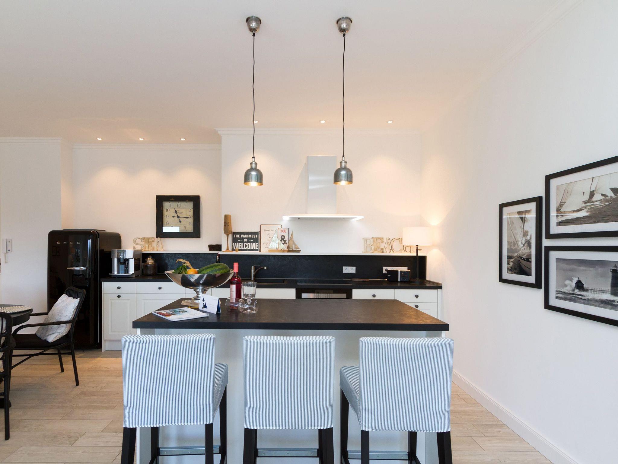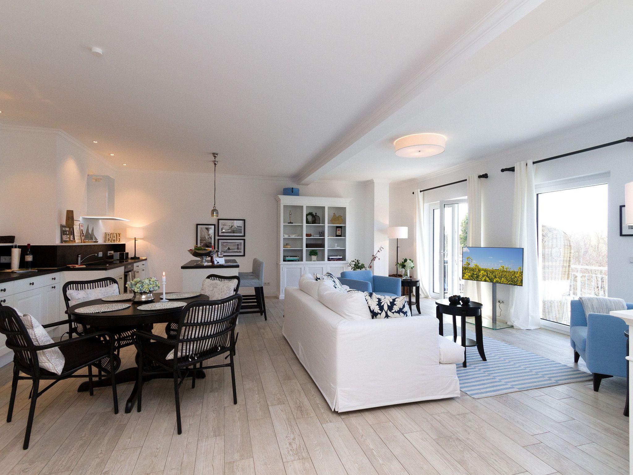 Viel Platz zum Urlauben haben bis zu drei Usedomfreudige und maximal ein Kind bis fünfzehn Jahre in diesem stilvollen Appartement Nummer 20 in der 3. Etage der Dünenresidenz. Denn dieses Ferienparadies ist mit seinen drei Räumen 100 Quadratmeter groß. Im lichtdurchfluteten Wohnbereich dominieren helle und warme Farben sowie exklusives Wohndesign. Eine große Sessel- und Sofalandschaft verlockt zum ausgiebigen Entspannen. Mit Blick auf den klassizistisch anmutenden Kamin oder auf den großen Flat-TV wird das Entspannen zum Abschalten und Runterfahren pur. Vom Wohnzimmer aus geht?s auf den sonnigen Süd-Balkon. Hier erwartet Sie ein kleines Highlight: Neben den gemütlichen Gartenmöbeln und Sonnenstühlen können Sie die Ostseesonne auch in einem originalgetreuen Nachbau eines der ersten Strandkörbe genießen. Wenn Sie der Appetit oder die Lust am Kochen packt ? die wunderschöne Küche mit dem freistehenden Kühlschrank im Look der1960er Jahre lässt die Herzen von Hobbyköchen höher schlagen. Sie ist mit hochwertigen Geräten und Geschirr voll ausgestattet. Offen, doch durch eine kleine Theke vom Wohnbereich abgetrennt, lässt es sich hier gemütlich beisammen sein. Genauso wie am exklusiven Biedermeier-Esstisch mit dazu passenden Armlehnstühlen in stylischem Schwarz. Doch hört die Auszeit hier nicht auf. Im Schlafzimmer sorgt ein großes Himmeldoppelbett (1,60 m x 2,00 m) für samtweiche und erholsame Träume. In einem liebevoll eingerichteten Kinderzimmer können gleich zwei Kinder viel Spaß miteinander haben. In dem Zimmer steht ein Einzelbett (0,90m x 2,00m) mit ausziehbarem Zusatzbett ( für eine 4. Person). Ein eigener kleiner Wellnessbereich ist das geräumige Badezimmer mit Dusche, Doppelwaschtisch, WC und einer Finnischen Sauna. Das Appartement verfügt zudem über ein Gäste-WC. Von Mai bis September steht Ihnen ein Strandkorb am unmittelbar in der Nähe gelegenen Strand zur Verfügung. Zu der Wohnung gehört ein Pkw-Stellplatz in der Tiefgarage (max. Einfahrtshöhe 1,93 m). Über einen Fahrstuhl können sie ins dritte Obergeschoss hinauffahren.