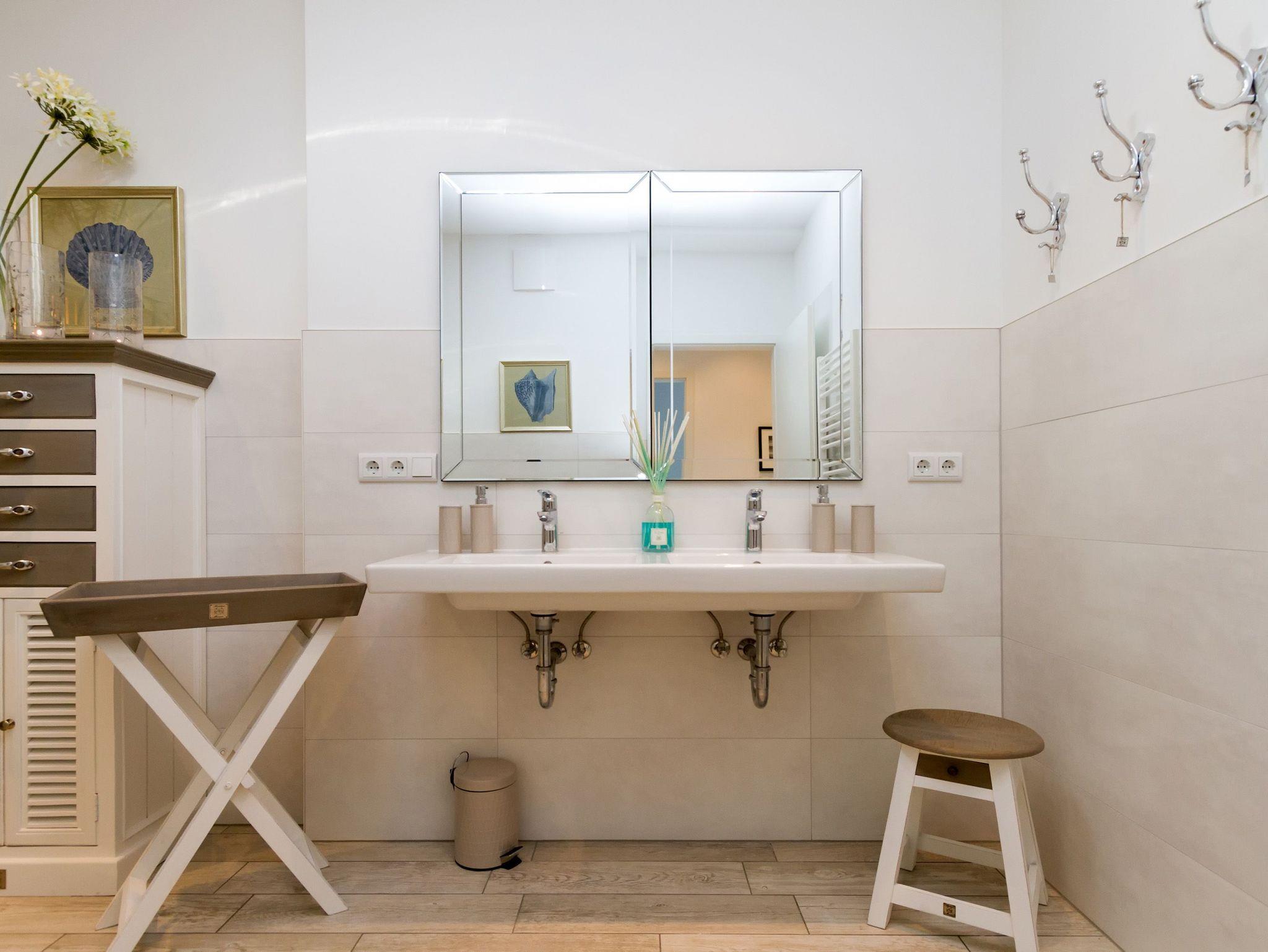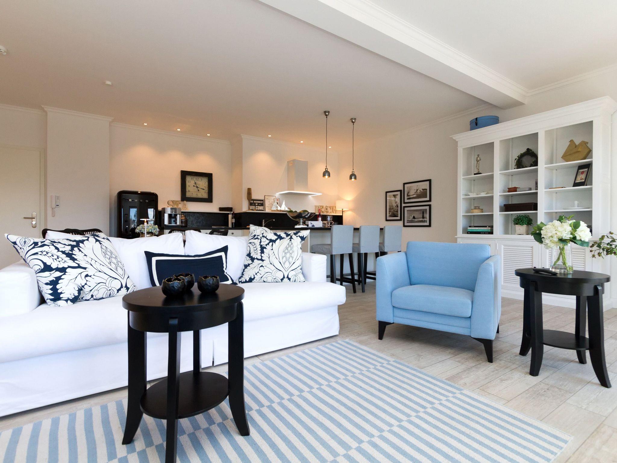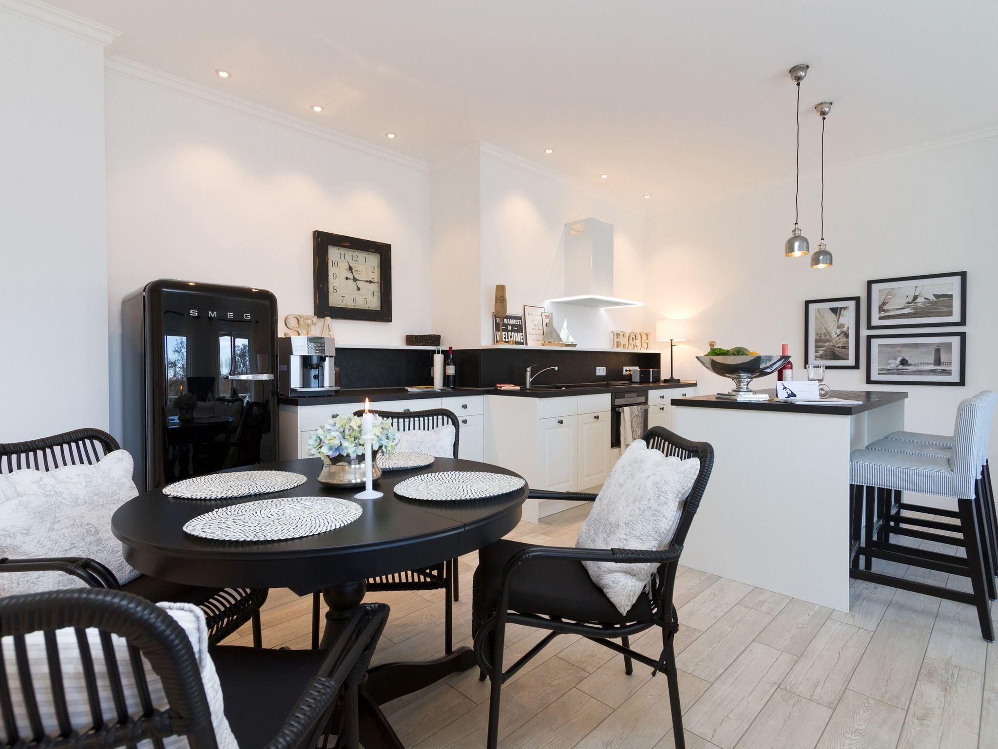 Viel Platz zum Urlauben haben bis zu drei Usedomfreudige und maximal ein Kind bis fünfzehn Jahre in diesem stilvollen Appartement Nummer 20 in der 3. Etage der Dünenresidenz. Denn dieses Ferienparadies ist mit seinen drei Räumen 100 Quadratmeter groß. Im lichtdurchfluteten Wohnbereich dominieren helle und warme Farben sowie exklusives Wohndesign. Eine große Sessel- und Sofalandschaft verlockt zum ausgiebigen Entspannen. Mit Blick auf den klassizistisch anmutenden Kamin oder auf den großen Flat-TV wird das Entspannen zum Abschalten und Runterfahren pur. Vom Wohnzimmer aus geht?s auf den sonnigen Süd-Balkon. Hier erwartet Sie ein kleines Highlight: Neben den gemütlichen Gartenmöbeln und Sonnenstühlen können Sie die Ostseesonne auch in einem originalgetreuen Nachbau eines der ersten Strandkörbe genießen. Wenn Sie der Appetit oder die Lust am Kochen packt ? die wunderschöne Küche mit dem freistehenden Kühlschrank im Look der1960er Jahre lässt die Herzen von Hobbyköchen höher schlagen. Sie ist mit hochwertigen Geräten und Geschirr voll ausgestattet. Offen, doch durch eine kleine Theke vom Wohnbereich abgetrennt, lässt es sich hier gemütlich beisammen sein. Genauso wie am exklusiven Biedermeier-Esstisch mit dazu passenden Armlehnstühlen in stylischem Schwarz. Doch hört die Auszeit hier nicht auf. Im Schlafzimmer sorgt ein großes Himmeldoppelbett (1,60 m x 2,00 m) für samtweiche und erholsame Träume. In einem liebevoll eingerichteten Kinderzimmer können gleich zwei Kinder viel Spaß miteinander haben. In dem Zimmer steht ein Einzelbett (0,90m x 2,00m) mit ausziehbarem Zusatzbett ( für eine 4. Person). Ein eigener kleiner Wellnessbereich ist das geräumige Badezimmer mit Dusche, Doppelwaschtisch, WC und einer Finnischen Sauna. Das Appartement verfügt zudem über ein Gäste-WC. Von Mai bis September steht Ihnen ein Strandkorb am unmittelbar in der Nähe gelegenen Strand zur Verfügung. Zu der Wohnung gehört ein Pkw-Stellplatz in der Tiefgarage (max. Einfahrtshöhe 1,93 m). Über einen Fahrstuhl können sie ins dritte Obergeschoss hinauffahren.