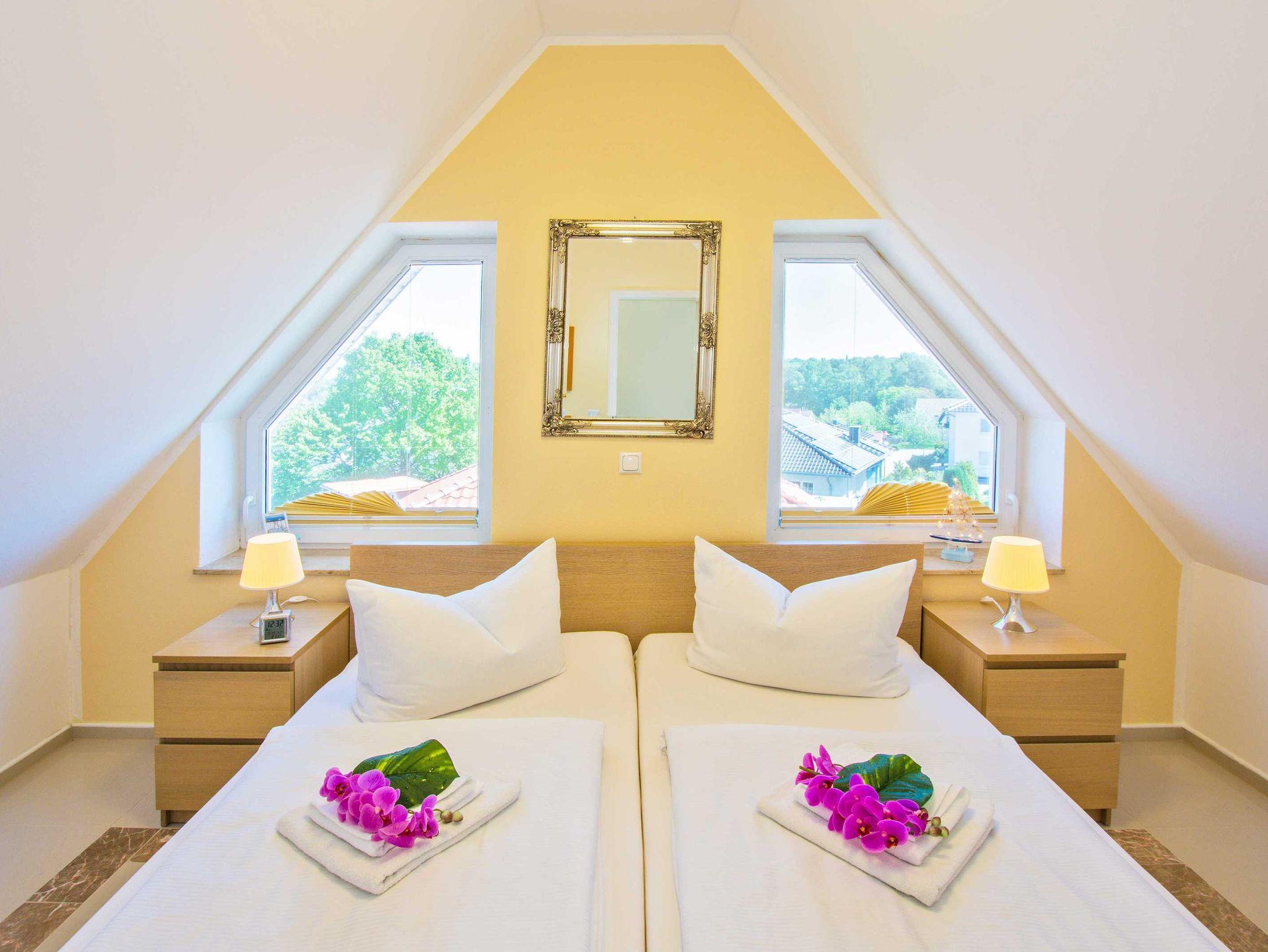 Die nächsten Einkaufsmöglichkeiten und Restaurants sind bequem zu Fuß oder mit dem Fahrrad in einem Umkreis von 500 bis 1000 Metern erreichbar. Der malerische Gothensee liegt nur etwa 150 Meter entfernt und der Sandstrand mit zahlreichen Wassersportmöglichkeiten ist nach nur 1000 Metern zu erreichen.