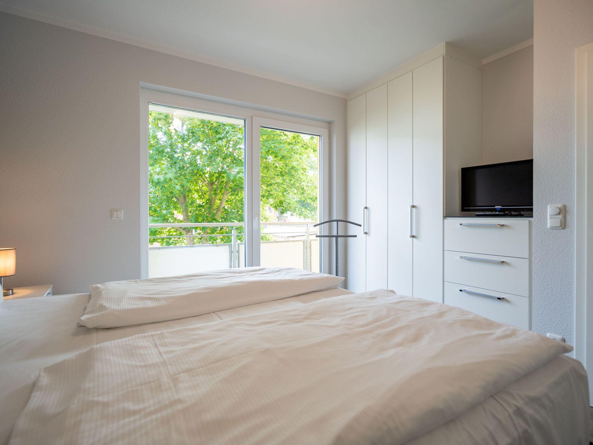 Ein moderner Wohn-Ess-Bereich empfängt den Urlaubsfreudigen in diesem schönen Domizil. Die elegante und stilvolle Einrichtung sorgt für eine gemütliche Atmosphäre. Eine schöne Ledersitzgruppe aus Sofa und Sessel ist ein echter Farbtupfer und lädt zum ausgiebigen Relaxen ein. Die Wohnung im Erdgeschoss des Domizils am Hang bietet auf 67 Quadratmetern viel Platz zum Urlauben. Bis zu vier Personen und ein Kleinkind (im Kinderreisebett) werden dieses kleine Fleckchen Usedom gar nicht wieder verlassen wollen. Die großzügige Südterrasse, die vom Wohnzimmer aus zugängig ist, mit Sonnenliegen und Esstisch ausgestattet, ist das Highlight dieses Appartements. Hier können Sie Sonne satt tanken. Die mit hochwertigen Markengeräten voll ausgestattete Küche ist zum Wohnraum hin offen, aber mit einem stylischen Tresen mit hohen Hockern von diesem abgegrenzt. Am schönen und großen Esstisch können Sie sämtliche Mahlzeiten mit viel Genuss zu sich nehmen. Zwei Schlafzimmer hat die Wohnung Nummer 2. In beiden wartet ein komfortables Boxspringdoppelbett (1,80 m x 2,00 m) nur darauf, Ihnen erholsame Träume zu schenken. Beide Zimmer haben einen Flat-TV mit DVD-Player und Zugang zu einem eigenen, kleinen Balkon, auf dem Sie schon morgens die Sonne genießen können. Die Schränke bieten viel Ablagefläche für die Urlaubsgarderobe. Das Appartement verfügt außerdem über zwei Badezimmer mit ebenerdiger und geräumiger Dusche, Waschtisch und WC. Das Masterbad ist von einem der beiden Schlafzimmer aus zugängig. In beiden Bädern liegen Handtücher für Sie bereit. Zudem sind die Betten bei Anreise für Sie bezogen. Zu der Wohnung gehört ein Tiefgaragenstellplatz. Es gibt auch einen Fahrradabstellraum. Das WLAN-Netz ist kostenfrei nutzbar.