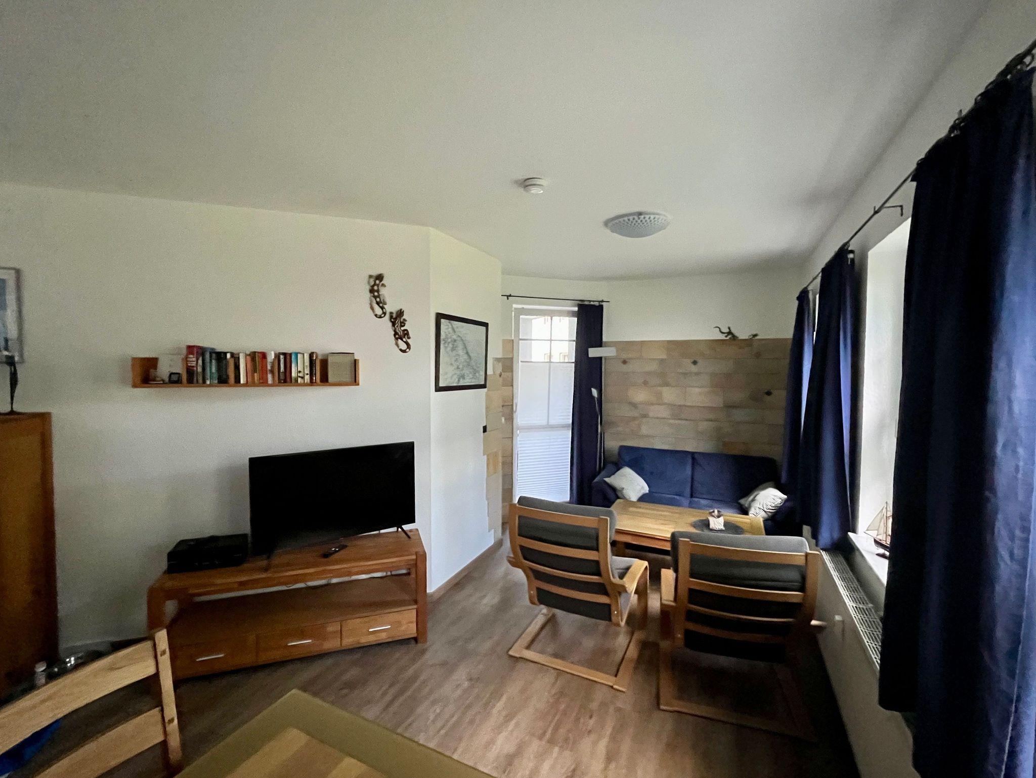 Die Ferienwohnung, welche mit einer individuellen Raumplanung komfortabel ausgestattet ist, verfügt über ein Wohnzimmer mit angrenzender Einbauküche, ein Schlafzimmer mit Doppelbett (180x200cm), ein modernes gefliestes Bad, einen Balkon sowie einen Flur. Das Besondere an dem Apartment ist neben der edlen Natursteingestaltung, dass der Balkon sowohl vom Schlafzimmer, als auch vom Wohnzimmer aus begangen werden kann. Bis zu 3 Personen (aber nur 2 Ew. + max. 1 Kind) haben die Möglichkeit, in dieser Ferienwohnung ihren Urlaub zu verbringen. Eine WLAN Nutzung ist inklusive. Die Wohnung wird regelmäßig renoviert und hebt sich mit der vorzüglichen, freiräumlichen grünen Lage von vielen anderen Wohnungen deutlich ab. Die Nutzung eines beschrankten PKW-Stellplatzes, welcher direkt der Wohnung zugeordnet ist, ist unabhängig von der Mietdauer im Gesamtmietpreis inkludiert. Dieser befindet sich ca. 30m links neben der angrenzenden Villa.