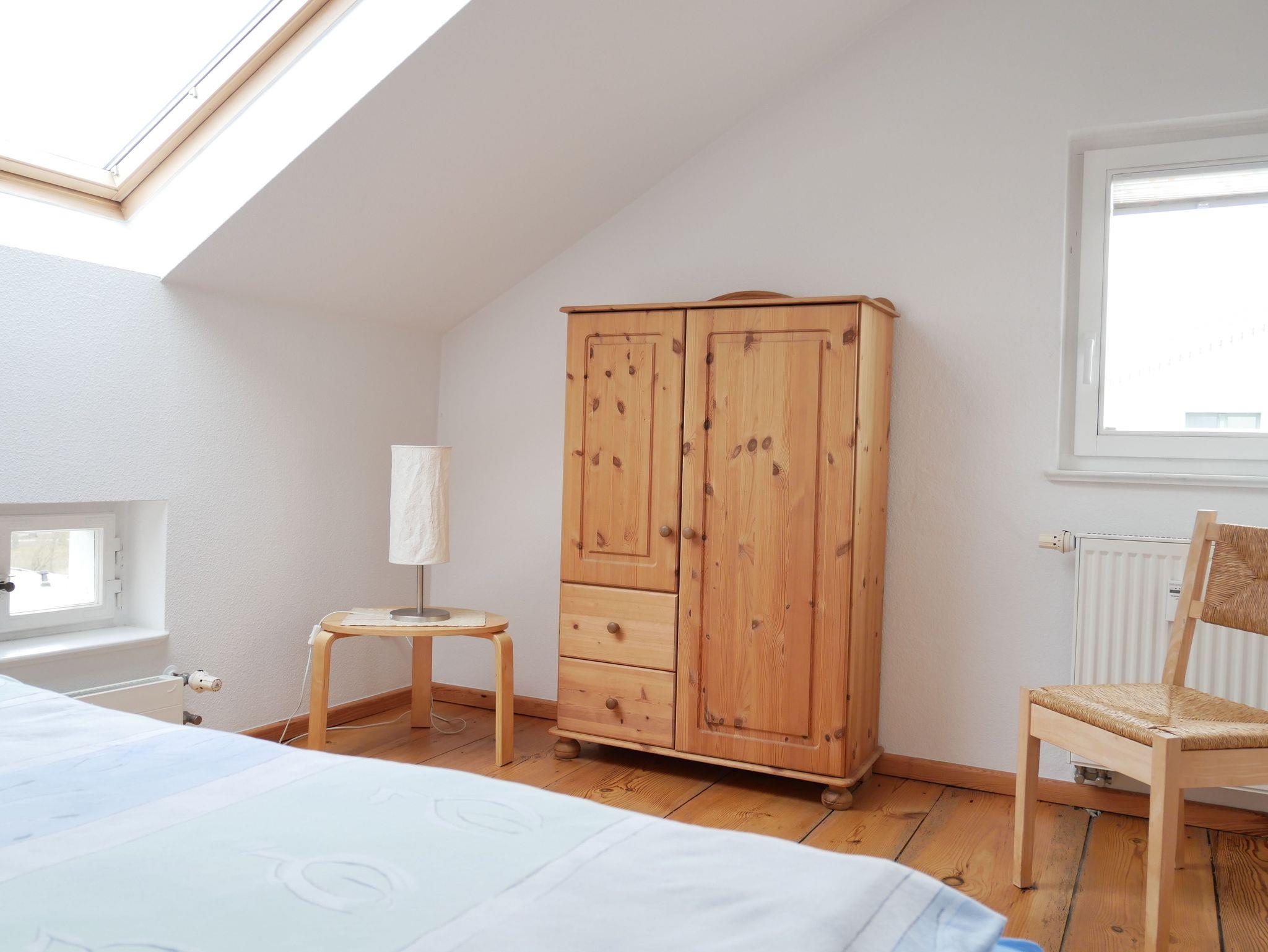 Die moderne 3-Raum-Nichtraucher-Ferienwohnung (54 qm) befindet sich im 2. OG. mit Dachschrägen.