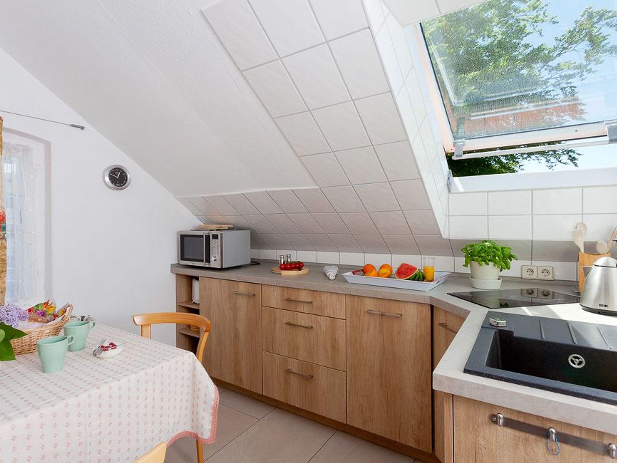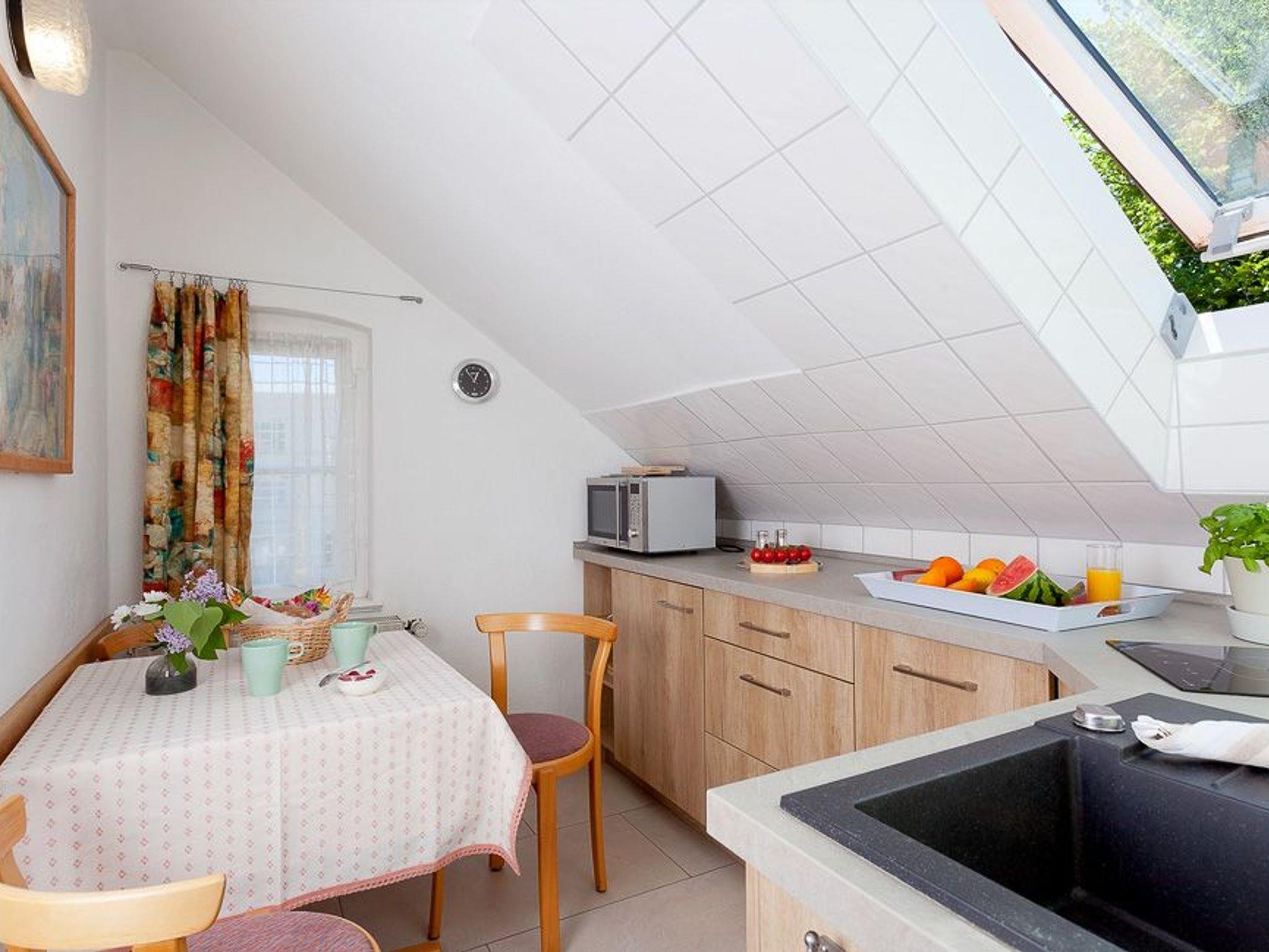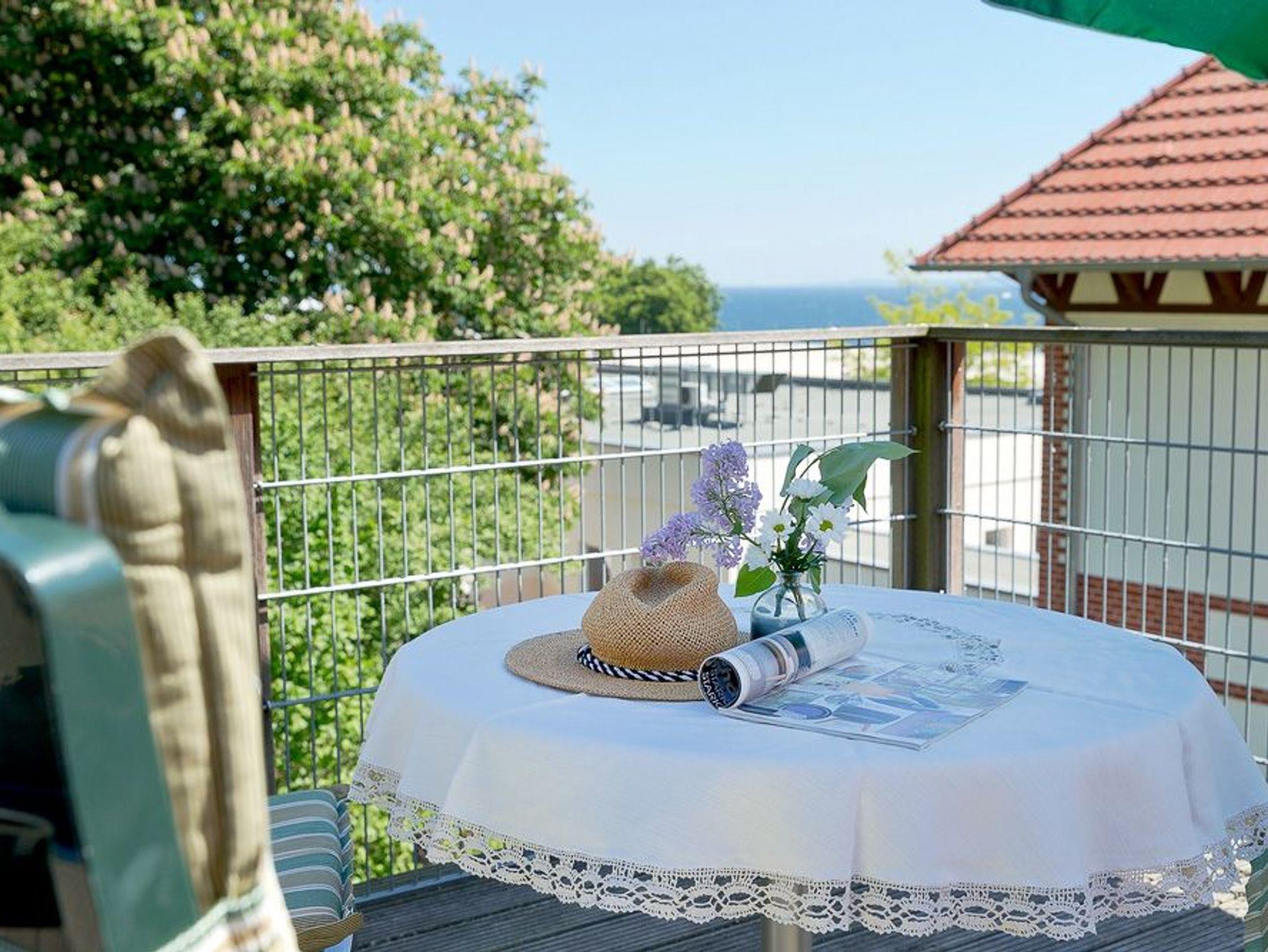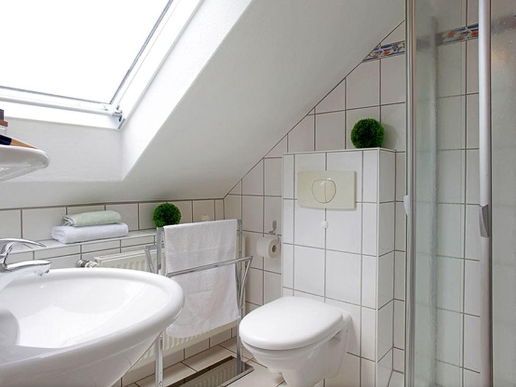 Das Appartement verfügt über ein Bad mit Dusche, WC und einem Haartrockner. Die gemeinsame, großzügige Nord-Ost-Dachterrasse der Appartements 5 und 6 bietet Ihnen einen herrlichen Blick auf die Ostsee und die Heringsdorfer Seebrücke.