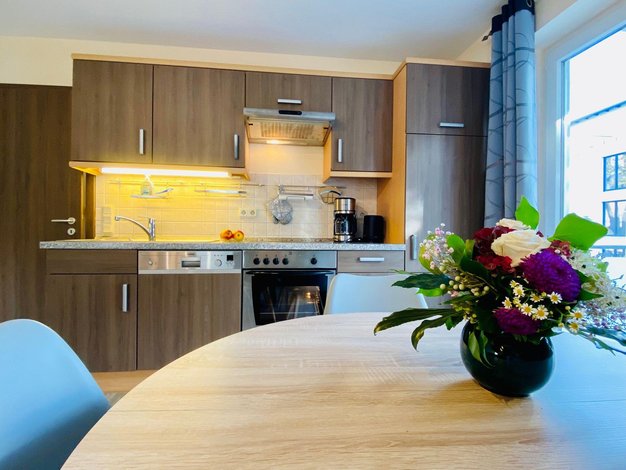 Die schöne 2 Raumwohnung im 1 OG ist modern eingerichtet und besteht aus einem gemütlichen Wohn-Esszimmer mit offener Küche. Genießen Sie Ihr Frühstück auf dem kleinen Balkon Richtung Neuer Weg.