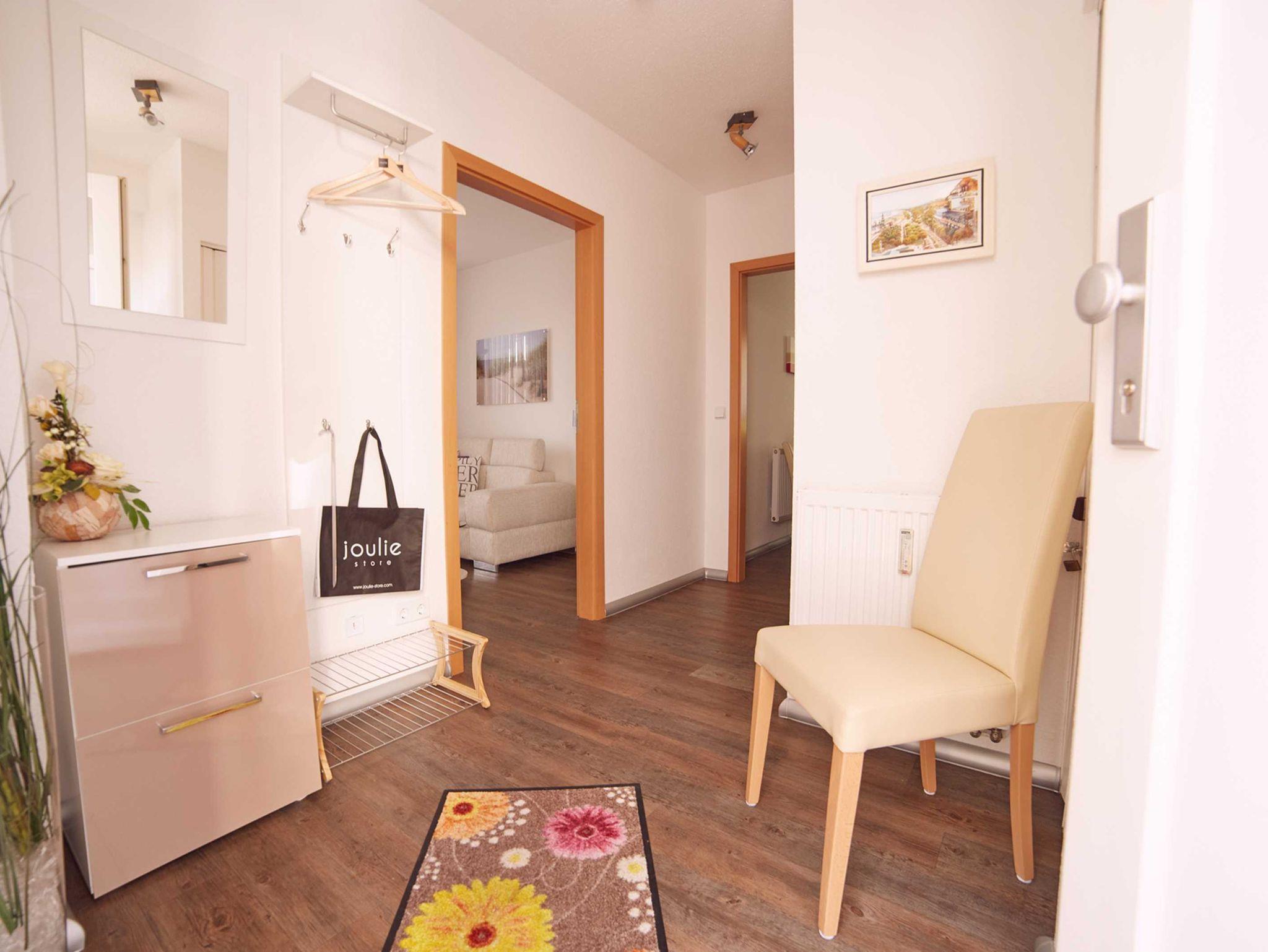 Mit insgesamt 43qm bietet die Ferienwohnung neben einem Wohnzimmer mit Couch, Relax-Sessel und TV auch eine voll ausgestattete Küche mit Backofen, Spülmaschine, Mikrowelle, Herd sowie Essbereich. Ein geräumiges Schlafzimmer mit Doppelbett, Kleiderschrank und TV sowie ein Bad mit Dusche/WC runden den Komfort der Wohnung ab. Im Sommer haben Sie zudem die Möglichkeit auf der Terrasse zu grillen (Elektrogrill) und den Tag so entspannt ausklingen zu lassen. WLAN steht Ihnen ebenfalls in der gesamten Wohnung kostenfrei zur Verfügung.