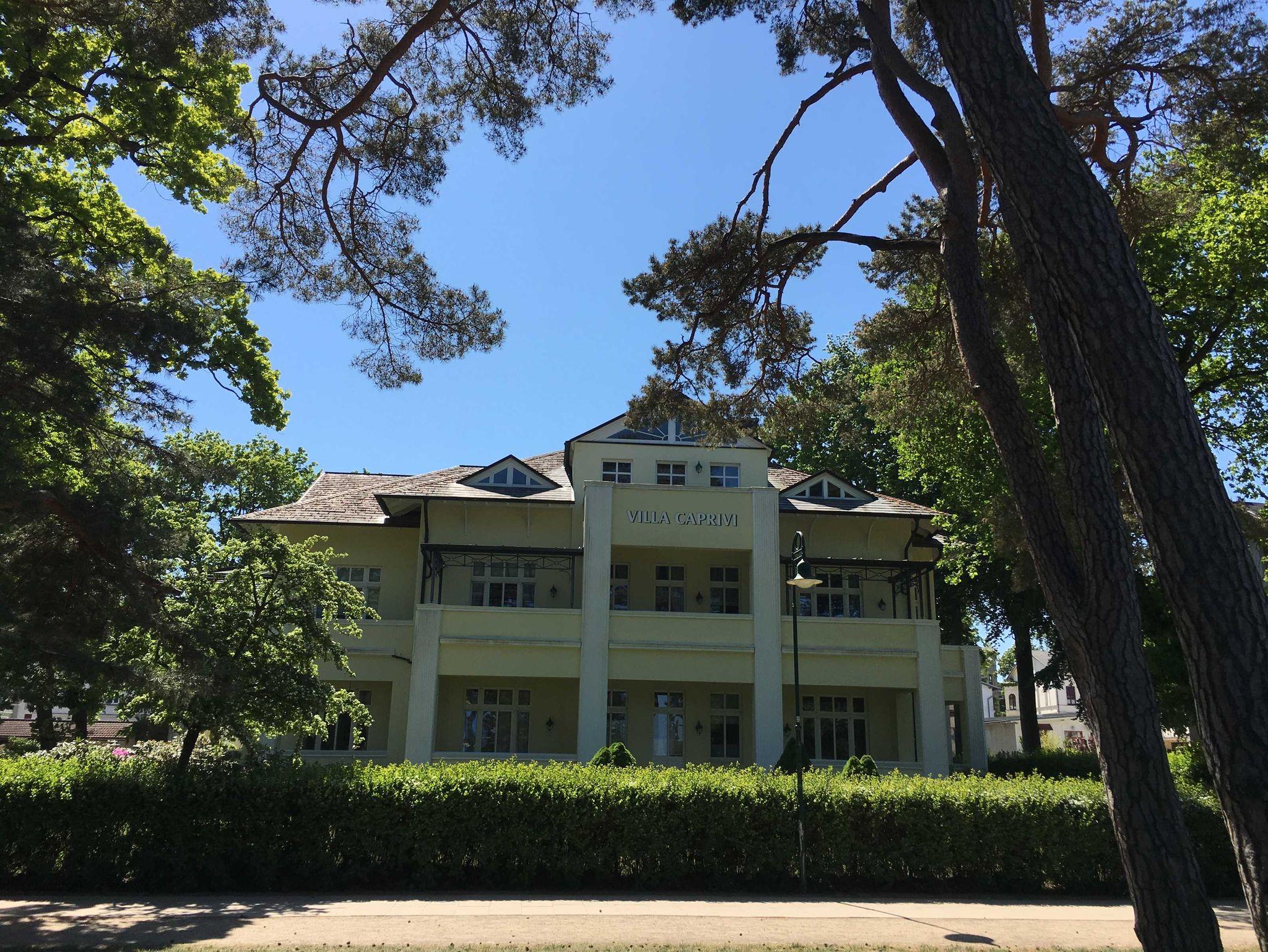 Die schöne Villa aus der Gründerzeit zeichnet sich durch unverwechselbare Architektur aus. 1995 wurde sie komplett saniert. 12 Wohnungen befinden sich im Haus. Den Gästen stehen Waschmaschine/Trockner sowie eine Fahrradunterstellmöglichkeit (verschlossen) zur Verfügung. Zu jeder Ferienwohnung gehört ein Stellplatz am Haus. Zum Strand sind es 50m. Zwischen den Seebrücken in Heringsdorf und Ahlbeck gelegen erreicht man beide Ortszentren in wenigen Gehminuten.