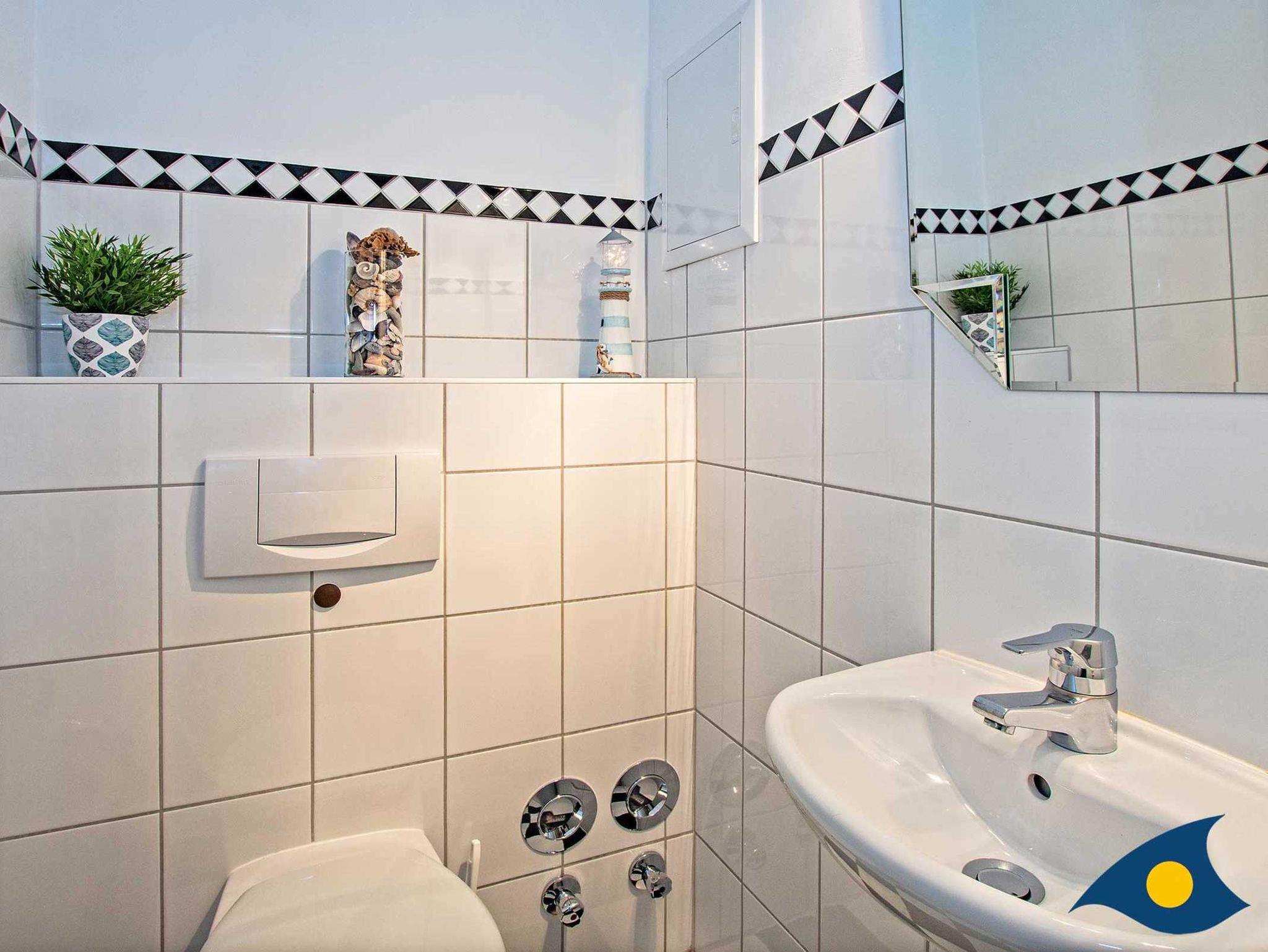 Das Badzimmer mit WC, Handwaschbecken und Dusche ist die kleine Wohlfühloase des Appartements.