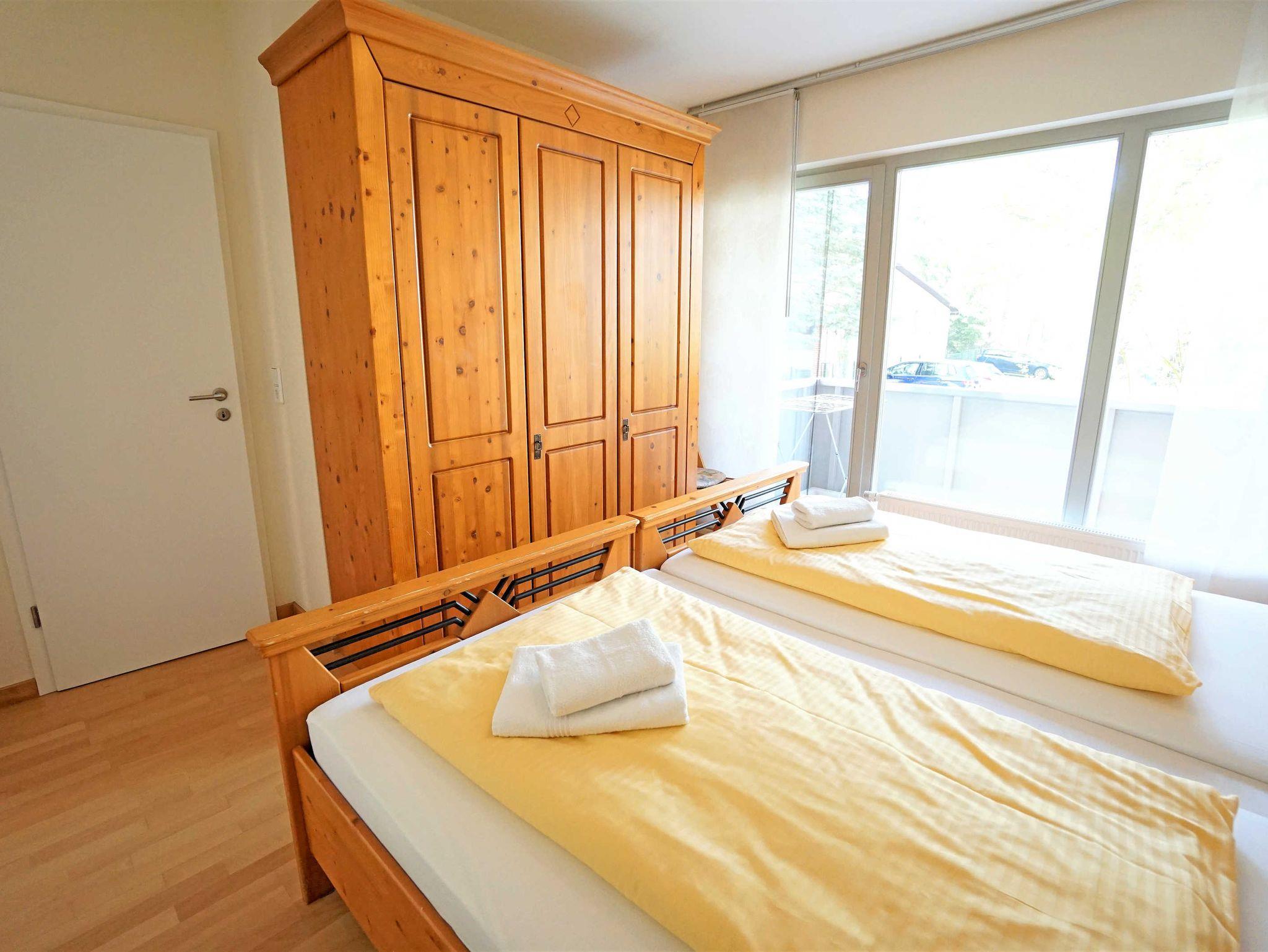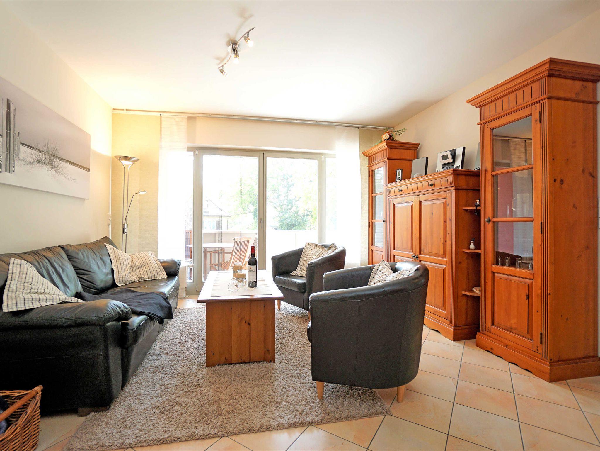 Die hochwertig eingerichtete 3-Zimmer Ferienwohnung (65m²) befindet sich im Hochparterre des Hauses Villa Marlen. Das geräumige Wohnzimmer mit offener, vollausgestatteter Küchenzeile, großem Esstisch und gemütlicher Couch lässt keine Wünsche offen. Vom Wohnzimmer aus erreicht man den großen Balkon mit einer Treppe zum Grundstück. Zwei Schlafzimmer mit jeweils einem großen Doppelbett (180x200) und einem großen Kleiderschrank bieten genug Platz für bis zu 4 Personen. Eines der beiden Schlafzimmer hat einen eigenen Balkon. Unter anderem verfügt diese Ferienwohnung über ein Duschbad und einem weiteren Badezimmer mit Badewanne.