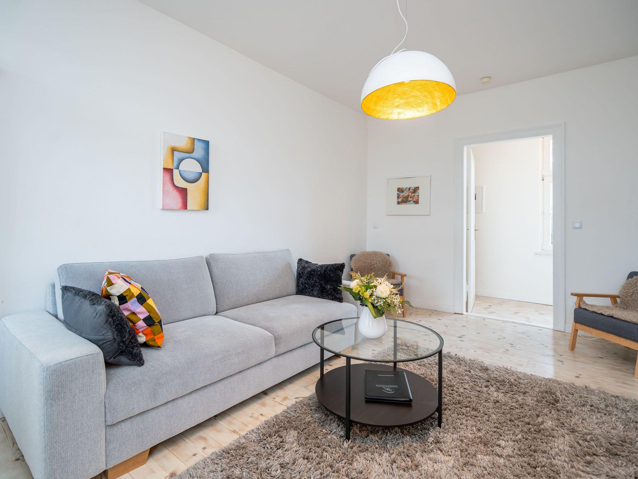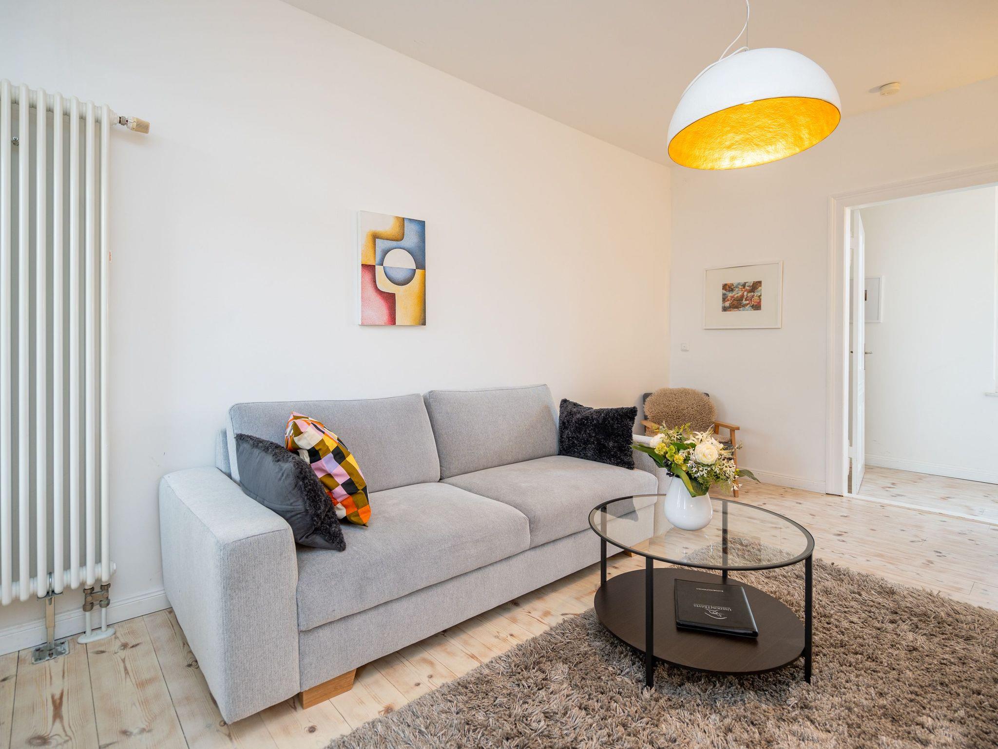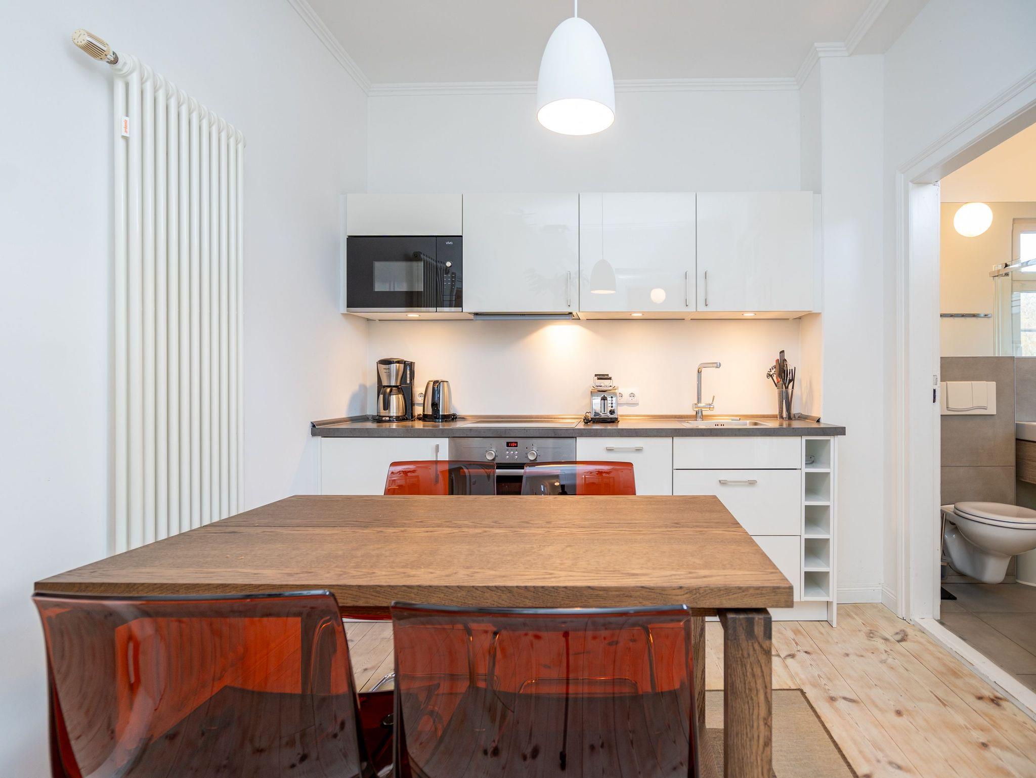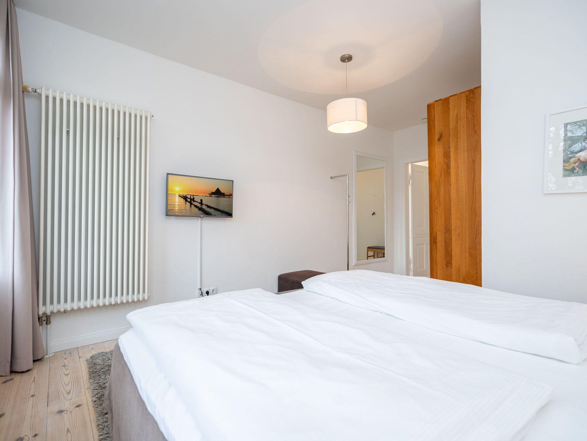 Moderner Lifestyle vom Feinsten: Erfrischend, pur, clean und entspannt macht das Interieur-Design dieses Ferienparadieses Freude und gibt ihm das gewisse Etwas. Hell und licht und mit viel Weiß lädt das Appartement 2 im Obergeschoss der Villa Diehl zum Ausspannen und Wohlfühlen ein. Bis zu 4 Personen haben in den großzügig geschnittenen 102 Quadratmetern dieser Wohnung jede Menge Platz. Ein wunderschöner Wohnbereich mit weiß gekälktem Echtholzdielenboden, flauschigem Hochflorteppich, einer stylischen Design-Sitzgruppe aus Sofa und Sesseln, dem gemütlichen Gas-Kamin und großem Flat-TV mit Blue-Ray-Player machen die Auszeit zu etwas Besonderem. Von hier aus geht es auf die sonnenüberflutete, offene Loggia mit Blick auf die begrünte Anlage hinaus. Lässt es sich schöner frühstücken als hier, wo die Ostsee sanft ins Ohr rauscht? Auch die beiden Schlafzimmer mit bequemen Doppelboxspringbetten und großen Schränken haben jeweils eigene Balkone. Die Küche ist mit hochwertigen Geräten voll ausgestattet. Nehmen Sie Platz am großen Esstisch und lassen Sie es sich schmecken. Highlight des geräumigen Badezimmers ist neben Waschtisch, WC und Echtglas-Dusche die kleine Infrarot-Sauna für zwei Personen. Hier wird es an kühlen Tagen und Abenden so richtig muschelig warm. Zur Wohnung gehört ein separates Gäste-WC. Damit Sie sich in Ihrem Urlaub wirklich um nichts kümmern müssen, liegen Handtücher für Sie bereit und die Betten sind bezogen. Sie haben im Appartement einen kostenfreien WLAN-Zugang. Auf dem Hof ist ein Pkw-Stellplatz für Sie reserviert.