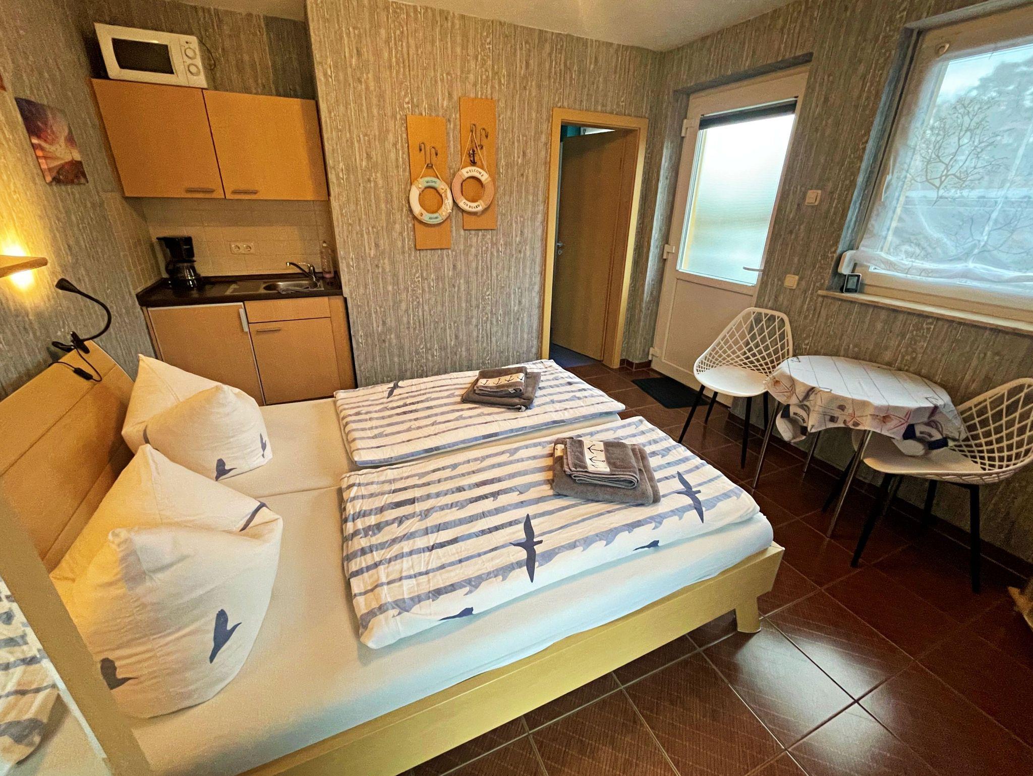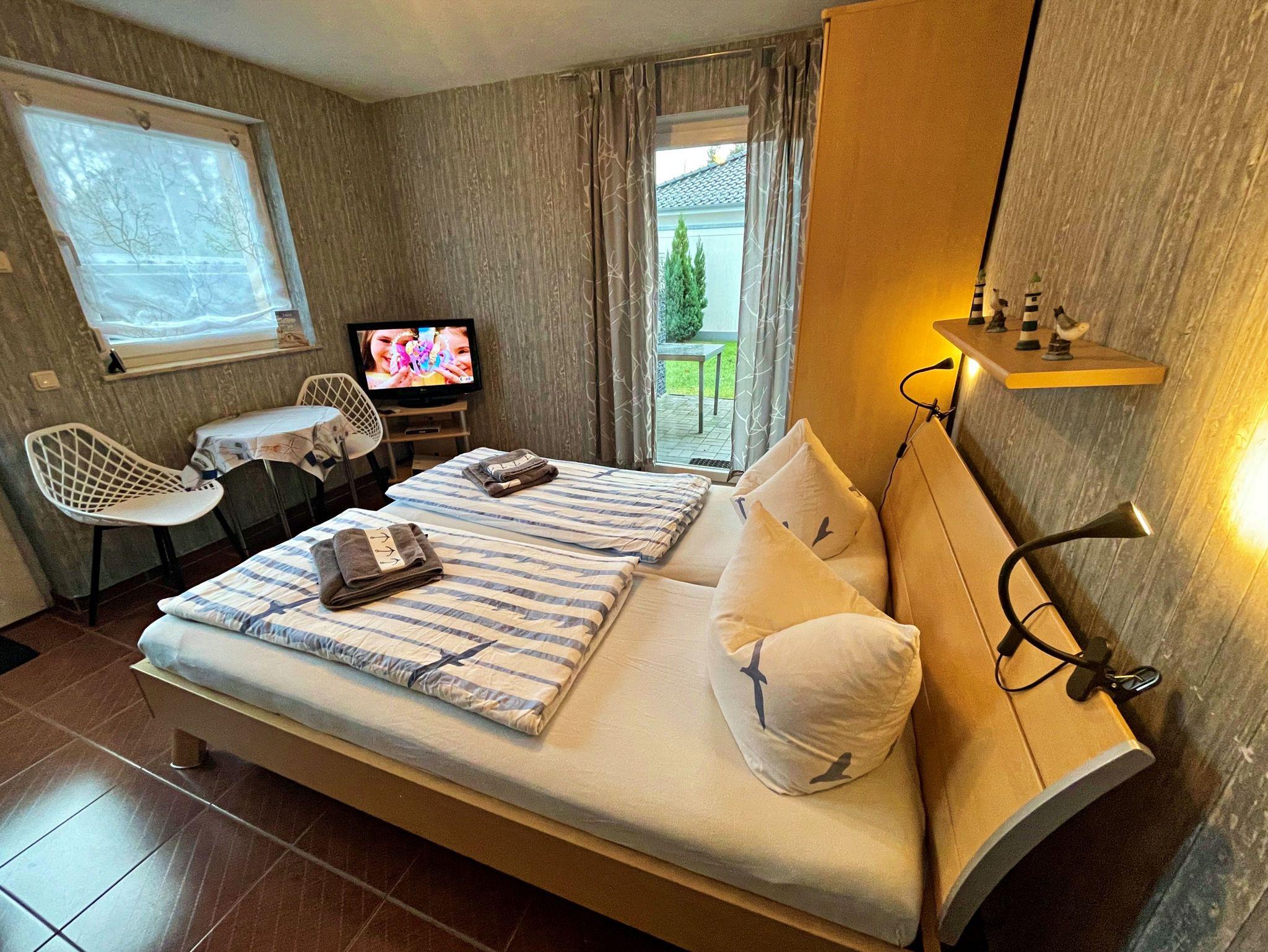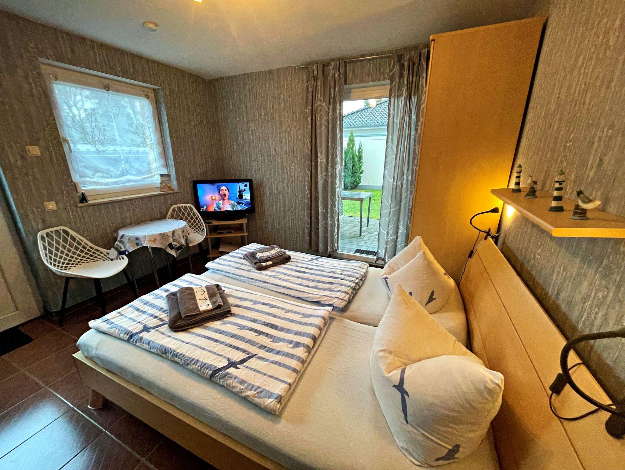 Dieses einladende und gemütliche Zimmer befindet sich in einem modernen Einfamilienhaus, das im Jahr 2007 erbaut wurde, im charmanten Ortsteil Neuhof. Es bietet Platz für bis zu 2 Personen und ist ideal für einen entspannten Aufenthalt. Auf 20 m² erwartet Sie ein kombinierter Wohn- und Schlafraum mit einem komfortablen Doppelbett sowie ein separates Badezimmer mit Dusche/WC und Fenster, das für Ihr Wohlbefinden sorgt. In der kleinen Pantryküche finden Sie alles, was Sie für die Zubereitung entspannter Frühstücke benötigen: Kühlschrank mit Gefrierfach, Mikrowelle, Toaster, Kaffeemaschine sowie Wasser- und Eierkocher. Genießen Sie die frische Luft und die Sonne auf Ihrer eigenen Sitzecke auf der sonnigen Terrasse (Südseite), wo auch die Möglichkeit zum Grillen besteht - perfekt für gesellige Abende! Und das Beste: Ihr kleiner Hund (max. 30 cm Schulterhöhe) ist gegen eine kleine Gebühr herzlich willkommen! Ein Parkplatz steht direkt vor dem Haus für Sie bereit und die Erstausstattung mit Bettwäsche und Handtüchern ist selbstverständlich im Preis enthalten.