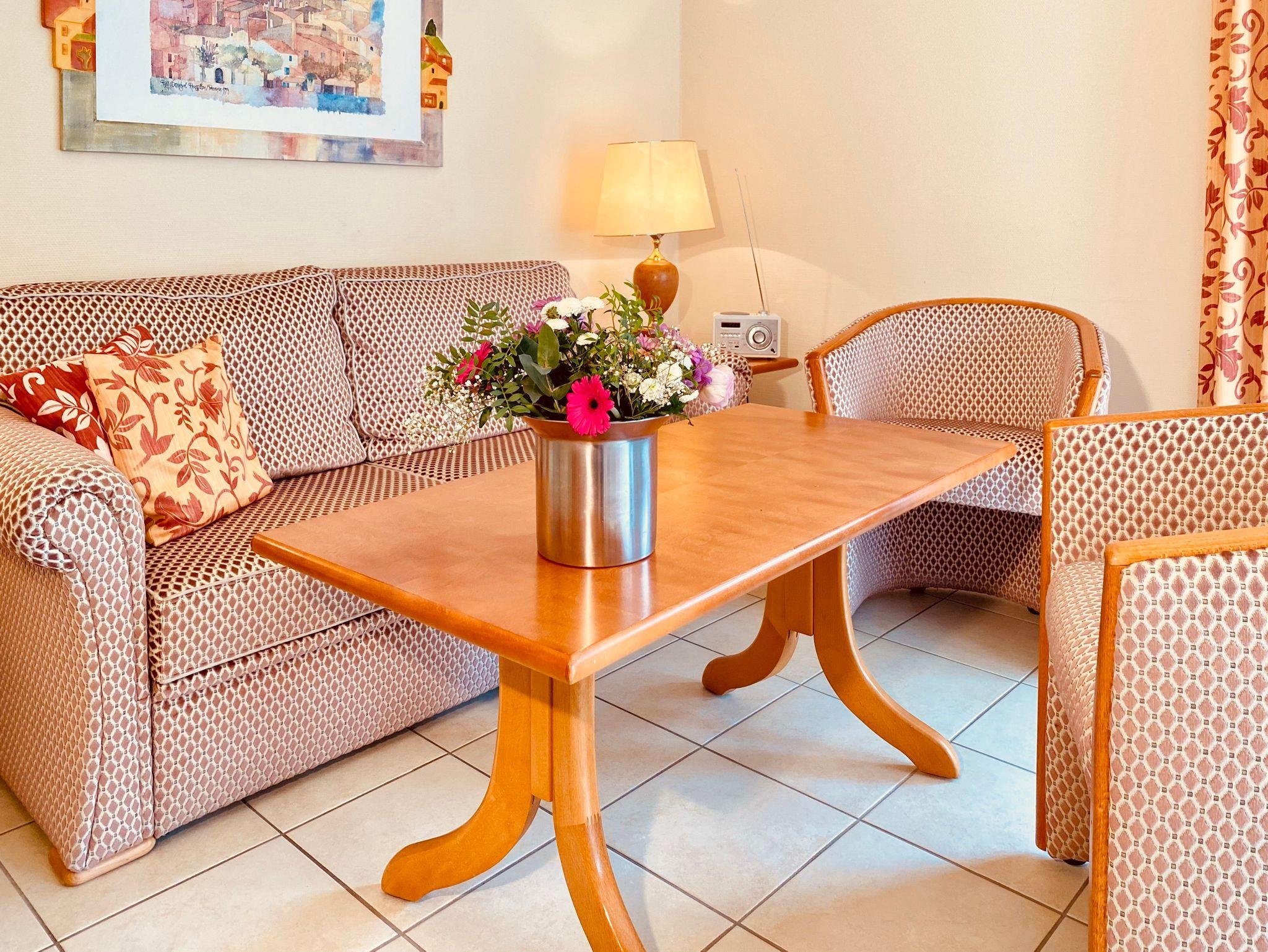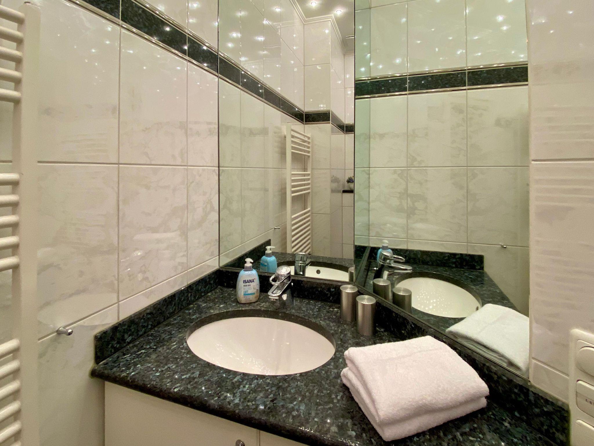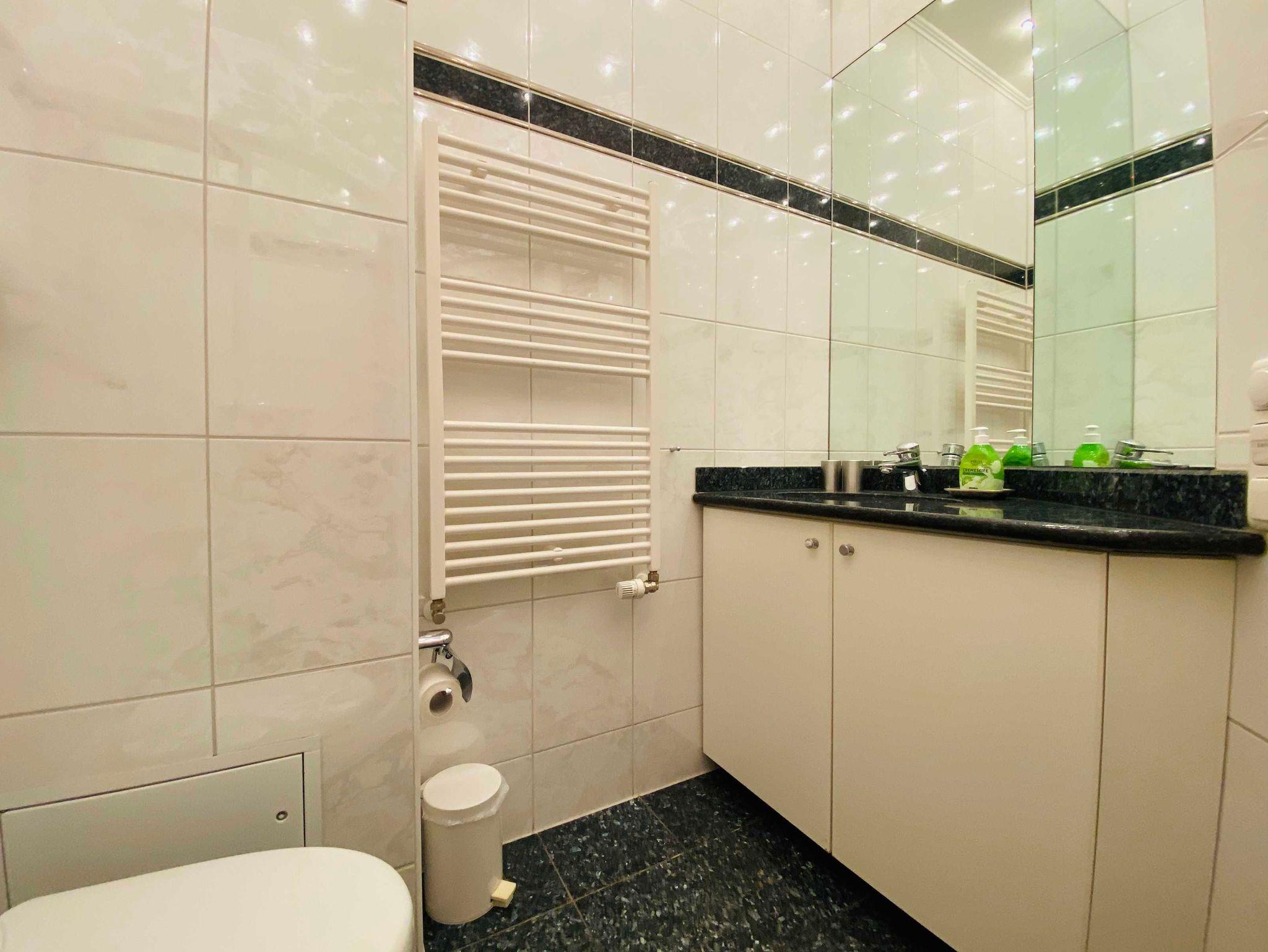 Es gibt ein Badezimmer mit Dusche. Die Wohnung verfügt über Internet.