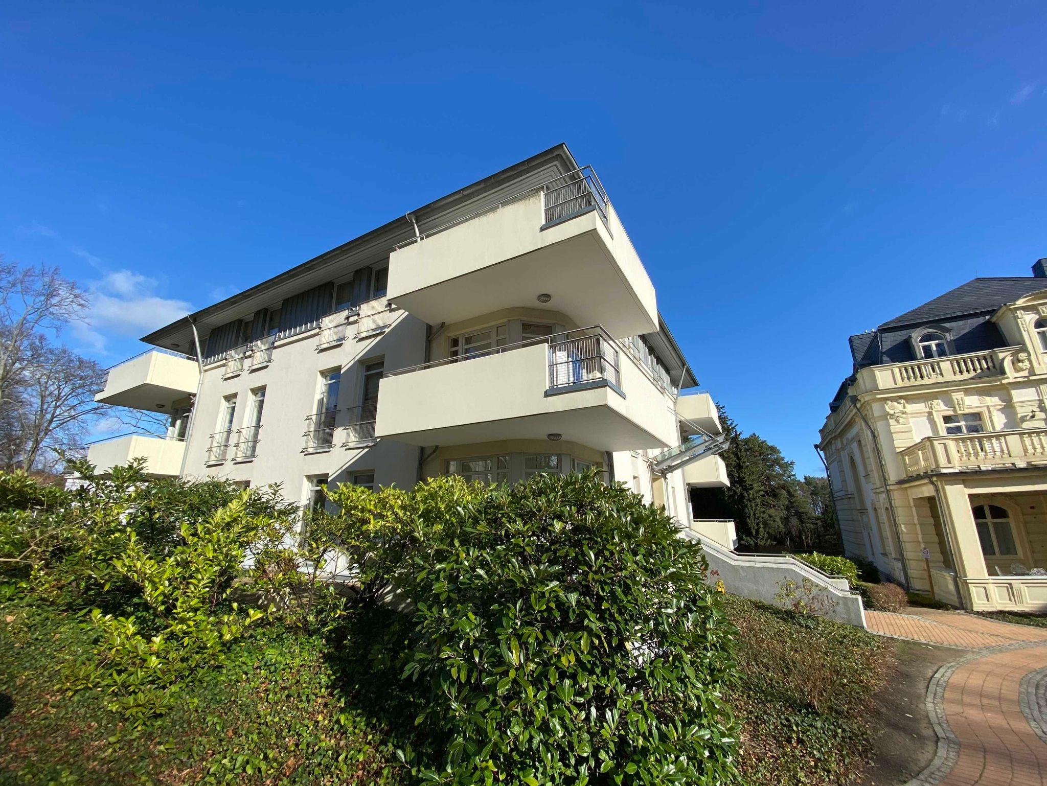Die Residenz Bleichröder ist eine einzigartige Ferienunterkunft im Seebad Heringsdorf. Im Zentrum strahlt die Bäderstilvilla Bleichröder. Auffällig sind auch die in Sandstein ausgebildete Toranlage mit reichhaltiger schmiedeeiserner Verzierung und der mit üppigen Balustraden versehene Rosengarten mit Brunnenanlage. Kieswege führen durch den Park vorbei an der Jagdgöttin Diana und tragen dazu bei, die herrliche Parkanlage zu erleben. Bänke laden zum Verweilen ein. Ein kleiner Spielplatz für die Kinder ist ebenfalls vorhanden. Genießen Sie Ihren Usedom-Urlaub in diesem besonderen Ambiente: Residenz Bleichröder.