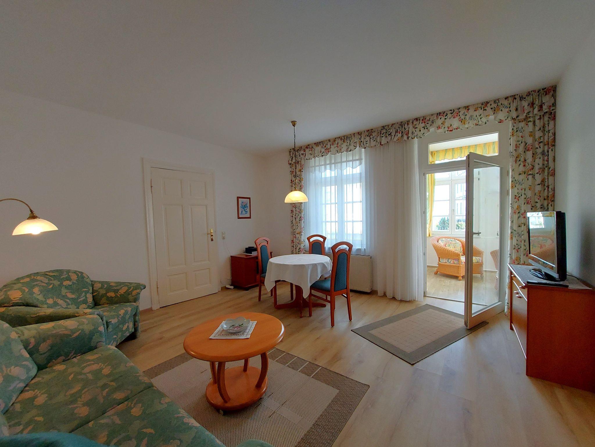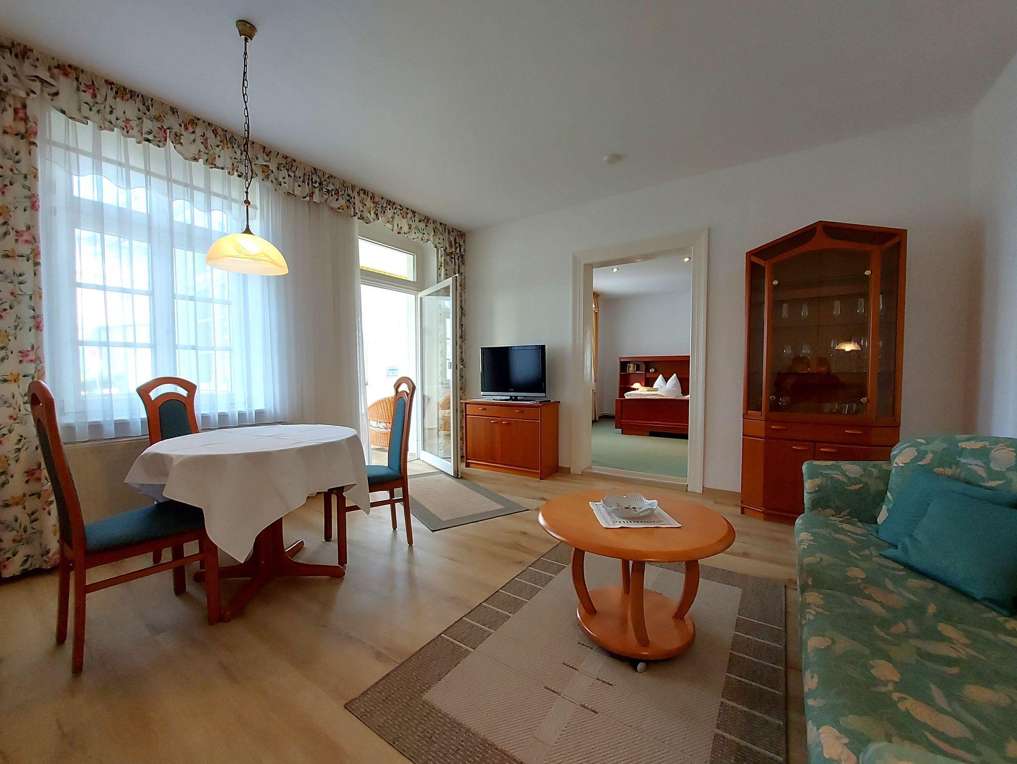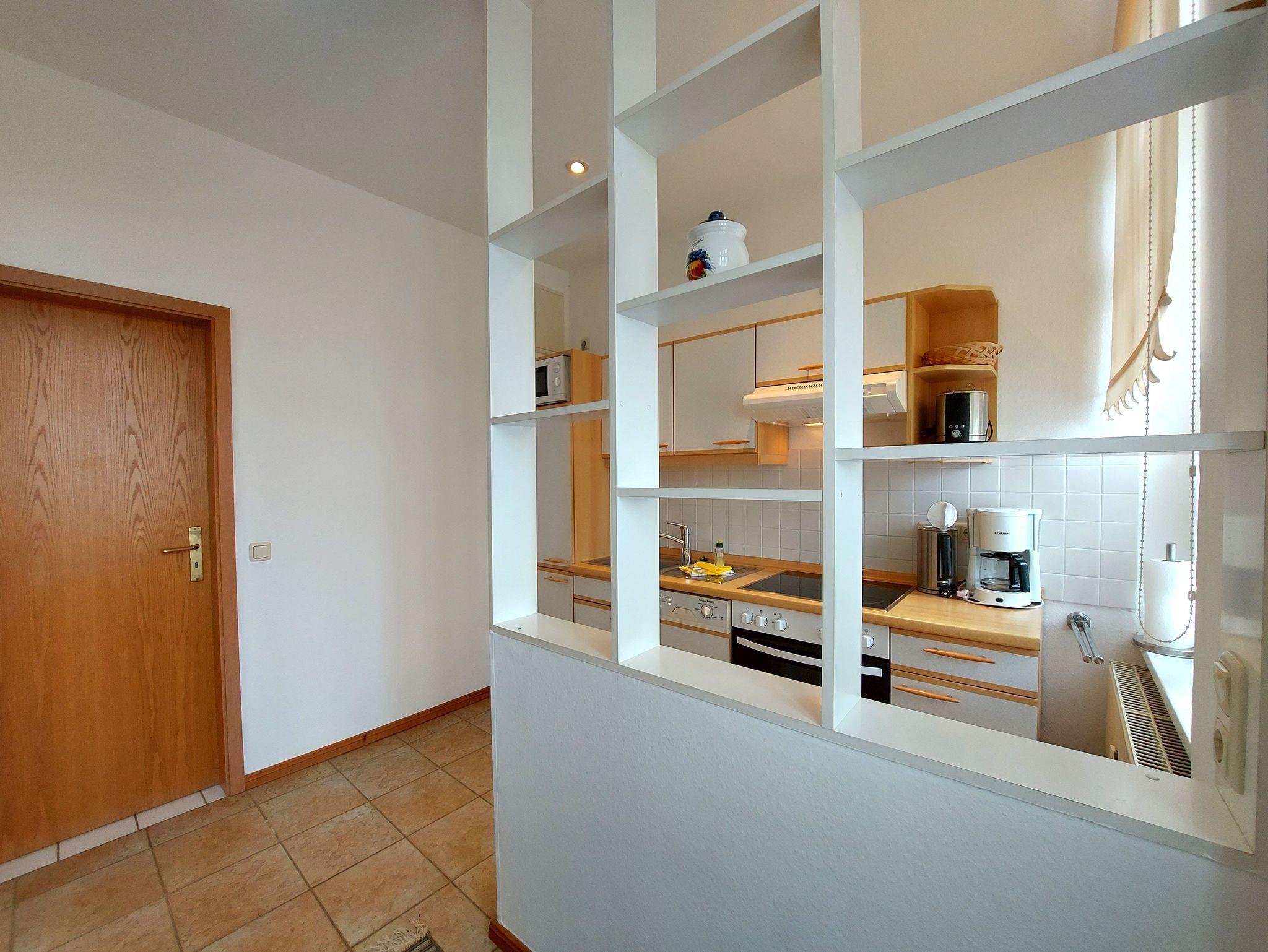 Die Ferienwohnung 10 befindet sich in Hochparterre des Hauses und verfügt über einen Meerblick. Sie teilt sich auf in ein Eingangsbereich mit einer Küche. Die Küche ist ausgestattet mit Herd, Backofen, Spülmaschine, Kühlschrank mit Gefriermöglichkeit, Mikrowelle, Kaffeemaschine, Wasserkocher und Toaster. Das Wohnzimmer verfügt über eine gemütliche Couch, Sessel, Flachbildfernseher und über einen Essbereich.