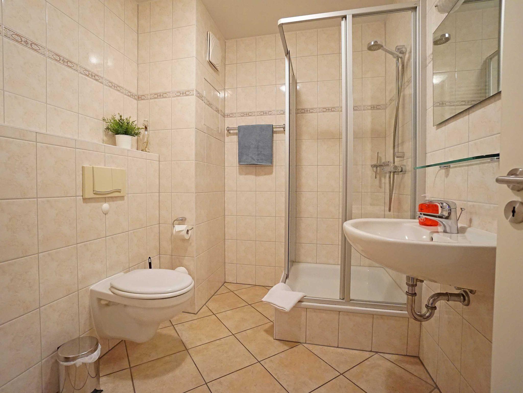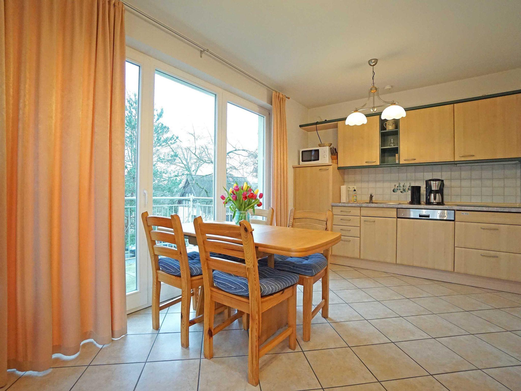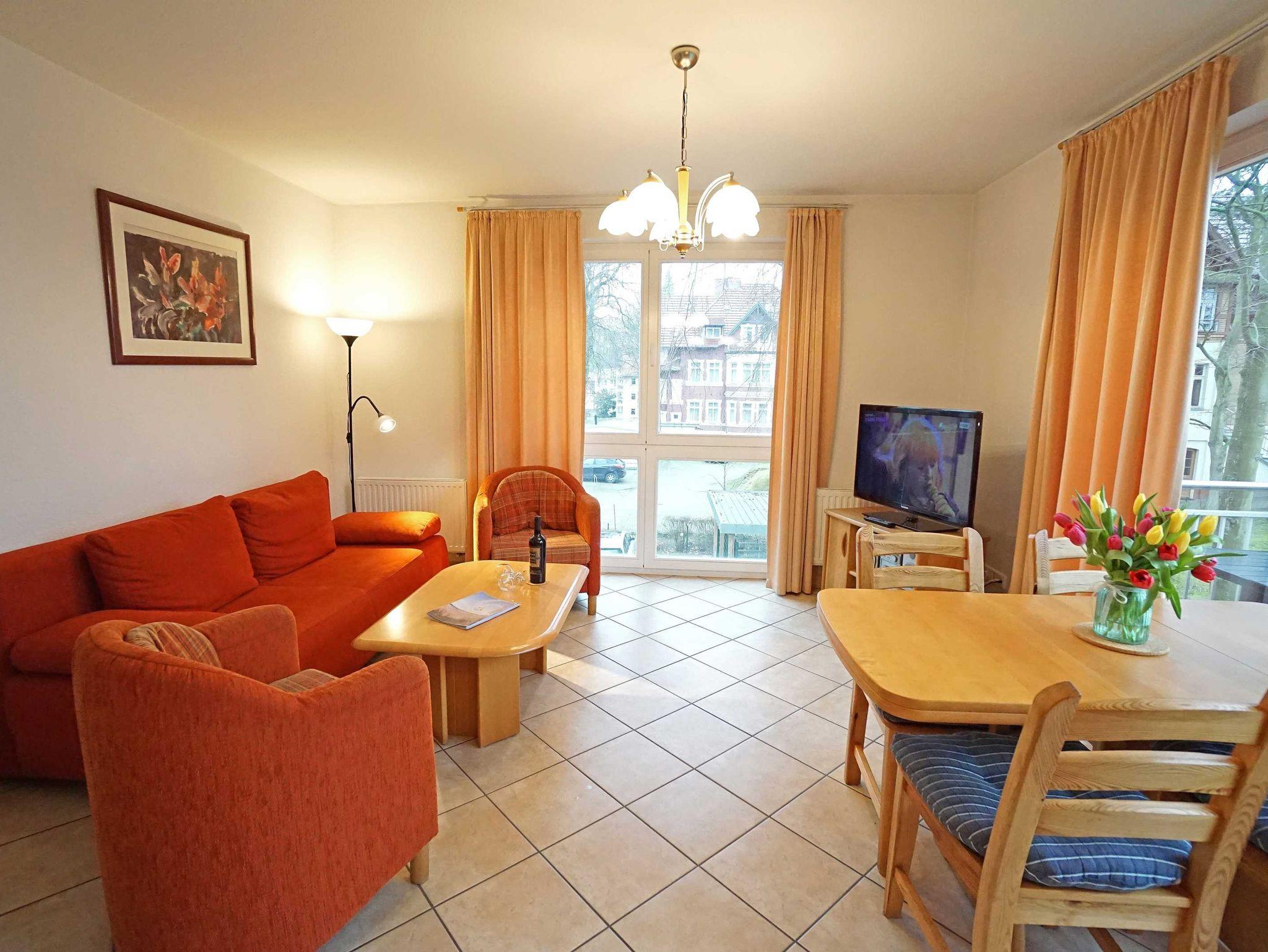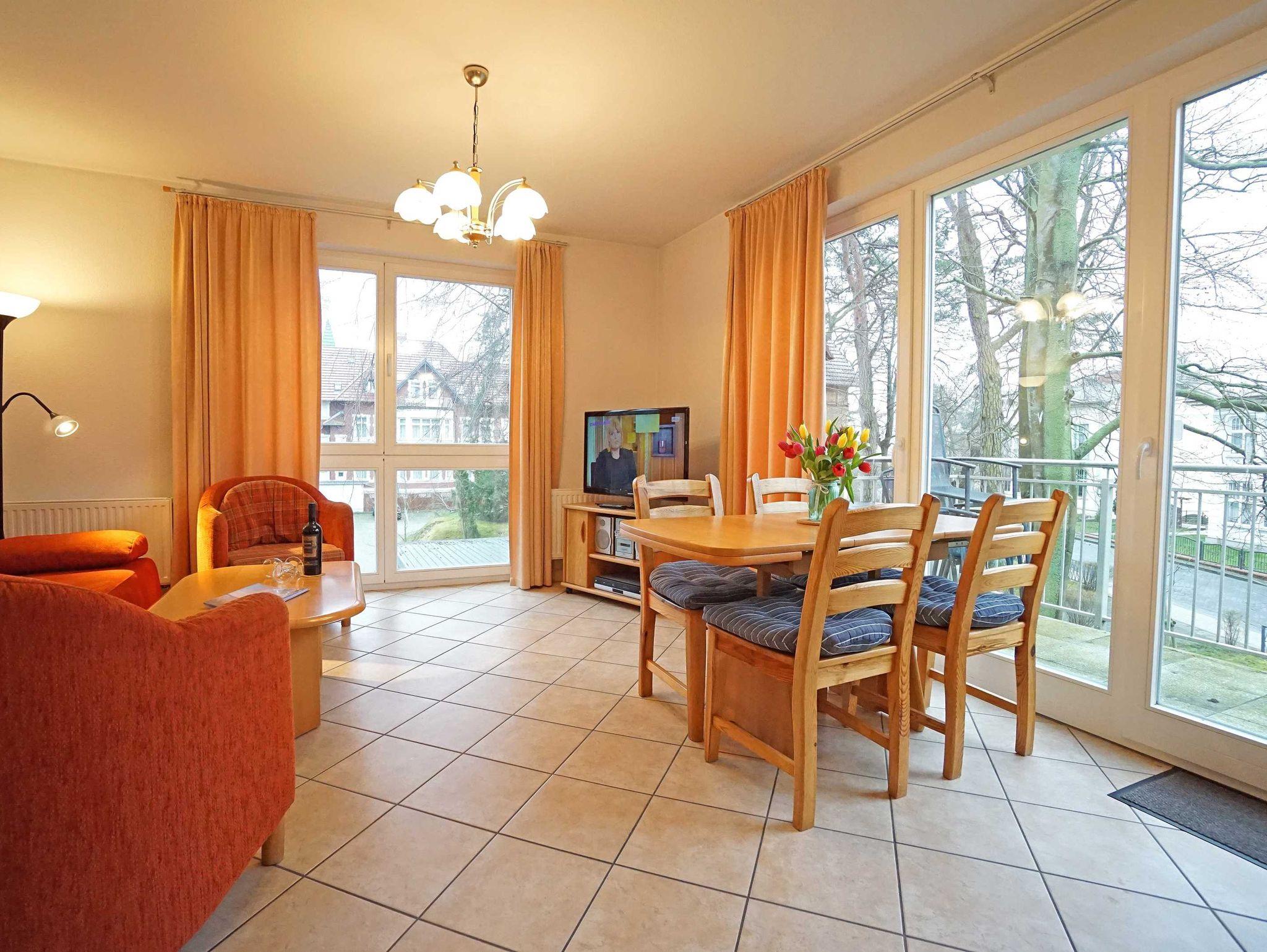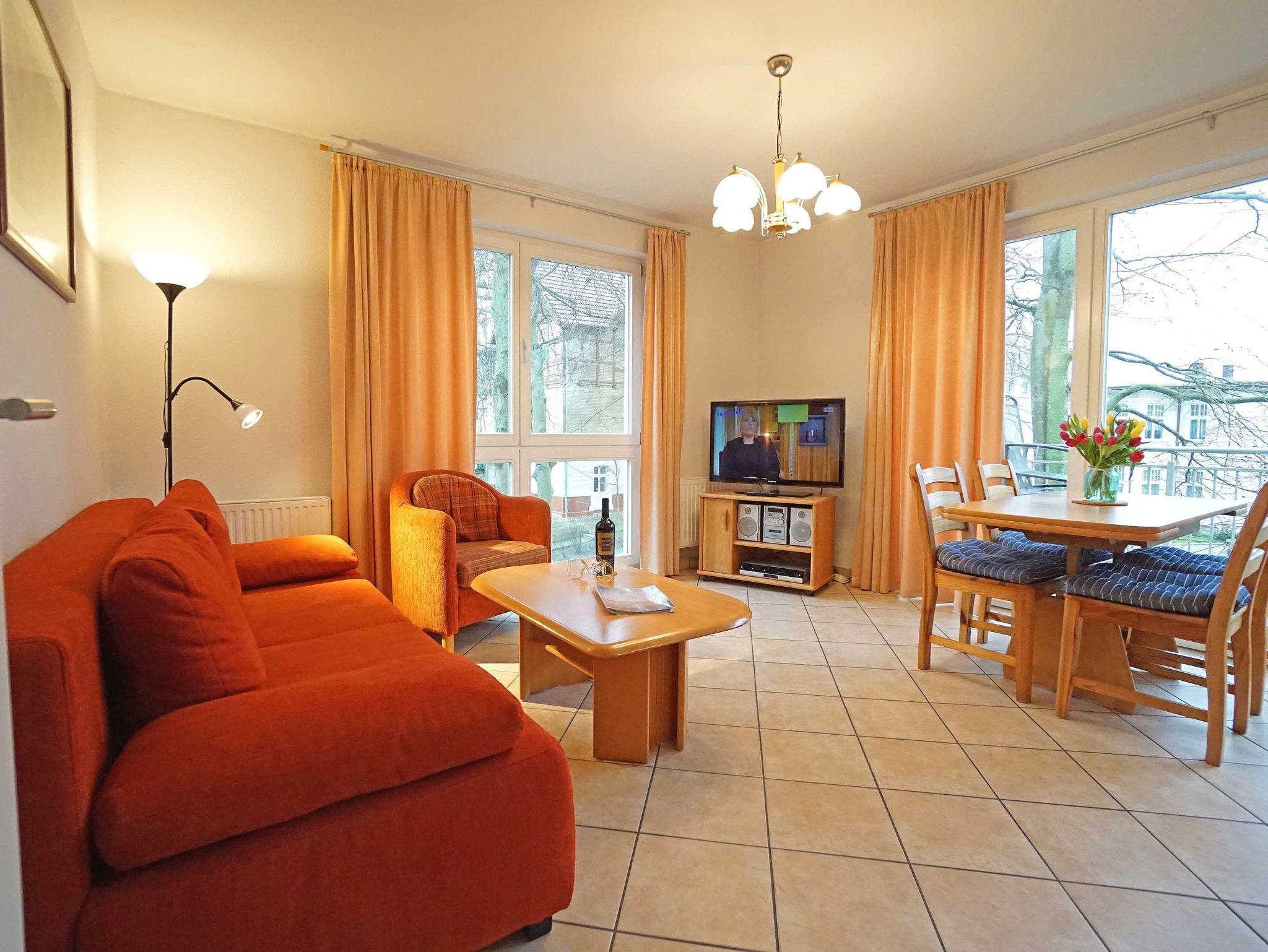 Die Zweizimmerwohnung ist 48 m² groß und hat ein Bad mit Dusche und WC. Wohnzimmer: Esstisch für 4 Personen, Schlafsofa für zwei Pers., Kabel-TV, zweiter Fernseher im Schlafzimmer, Radio mit CD und Kassette, komplett eingerichtete Küchenzeile mit Mikrowelle, Geschirrspüler, Herd mit Ceranfeld usw. sowie einen sonnigen Balkon in Süd-Westlage. Schlafzimmer: mit einem Doppelbett (180 x 200 cm), Radio. Ein kostenloses WLAN-Netzwerk steht Ihnen zur Verfügung.