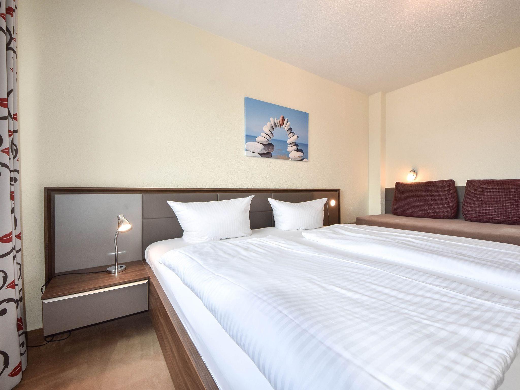 Das liebevoll eingerichtete Appartement befindet sich im vierten Stock eines Mehrfamilienhauses. Ein Fahrstuhl ist im Haus vorhanden. Im Schlafzimmer befindet sich ein großes Doppelbett, eine weitere Person kann auf dem Einzelbett übernachten (1,80x80cm). Im Badezimmer finden Sie eine Dusche und eine Waschmaschine vor. Das große Wohnzimmer und die komplett ausgestattete Küche sorgen für einen angenehmen Aufenthalt. Auf dem Balkon können Sie die Sonne genießen. Ein PKW-Stellplatz befindet sich am Haus, WLAN ist vorhanden. Mitgebrachte Räder können Sie im abschließbaren Keller unterstellen.