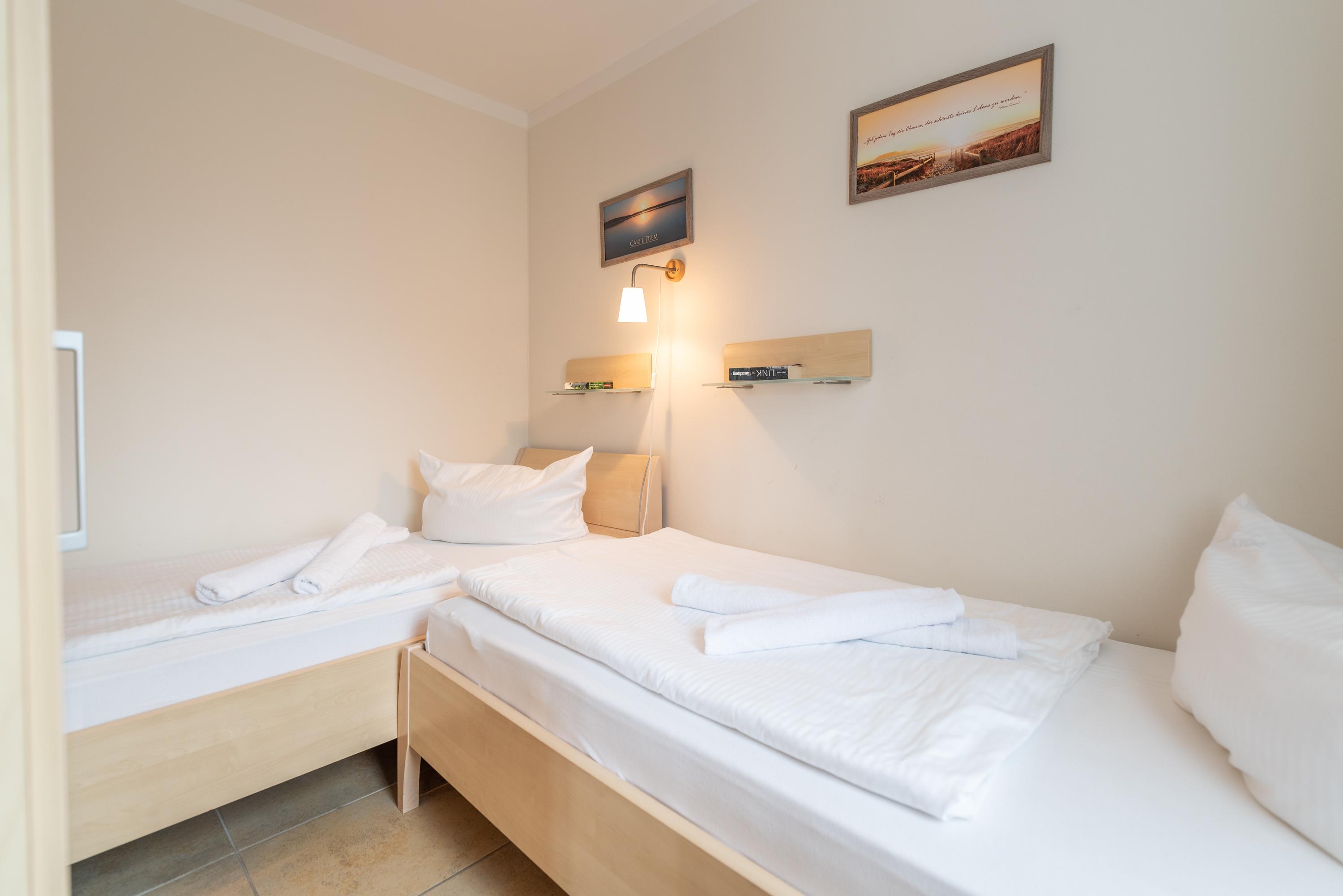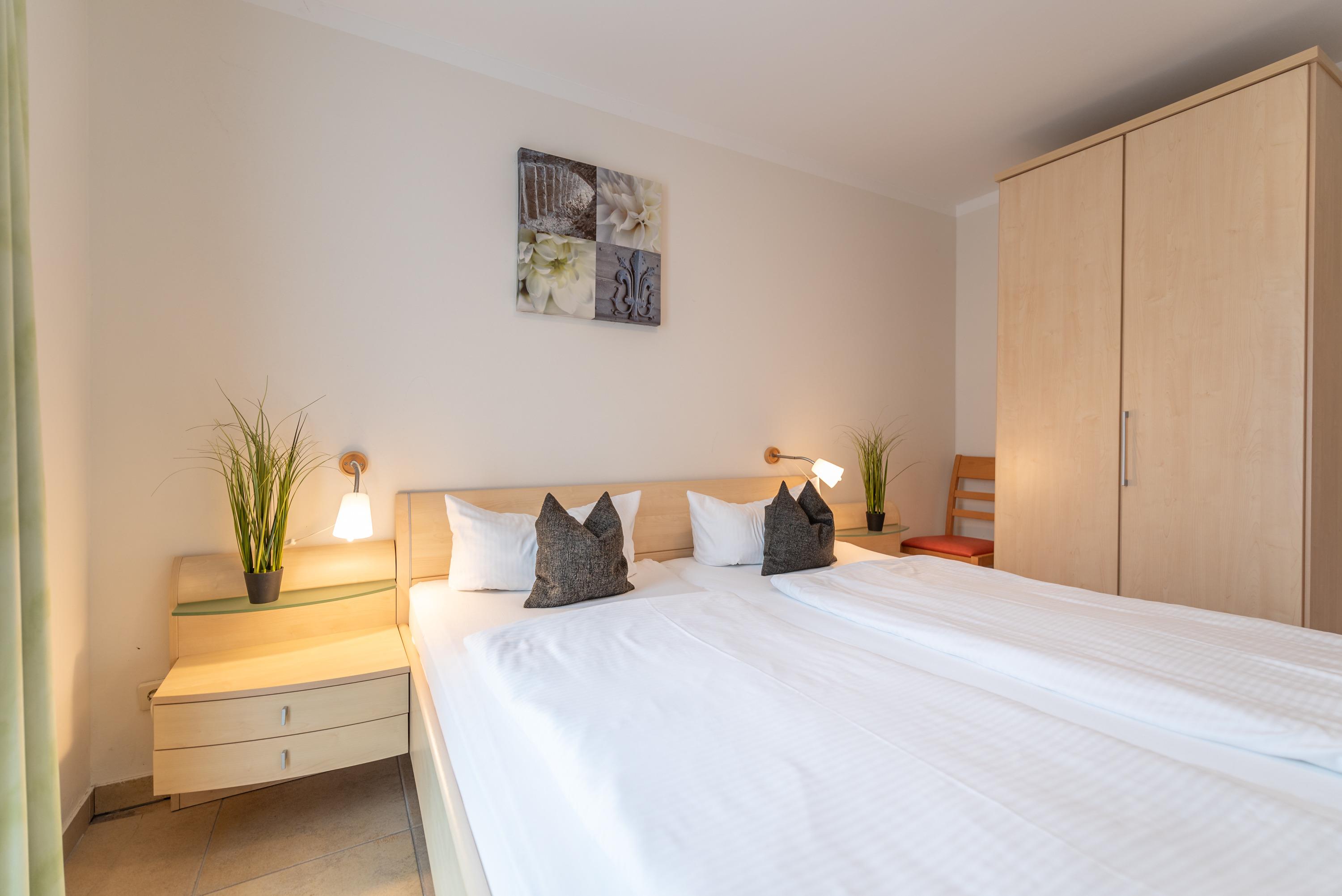 Die Unterkunft bietet zwei separate Schlafzimmer: eines mit einem komfortablen Doppelbett und ein weiteres mit zwei Einzelbetten. Im stilvoll gestalteten Wohnbereich finden Sie eine gemütliche Ledercouch, einen Esstisch für vier Personen, einen modernen Flachbildfernseher (Full-HD/LED) sowie ein CD-Radio. Die offene, komplett ausgestattete Küchenzeile ermöglicht Ihnen, Ihre Lieblingsgerichte bequem selbst zuzubereiten. Für den Zugang zum Internet steht Ihnen ein kostenfreier WLAN-Hotspot zur Verfügung.