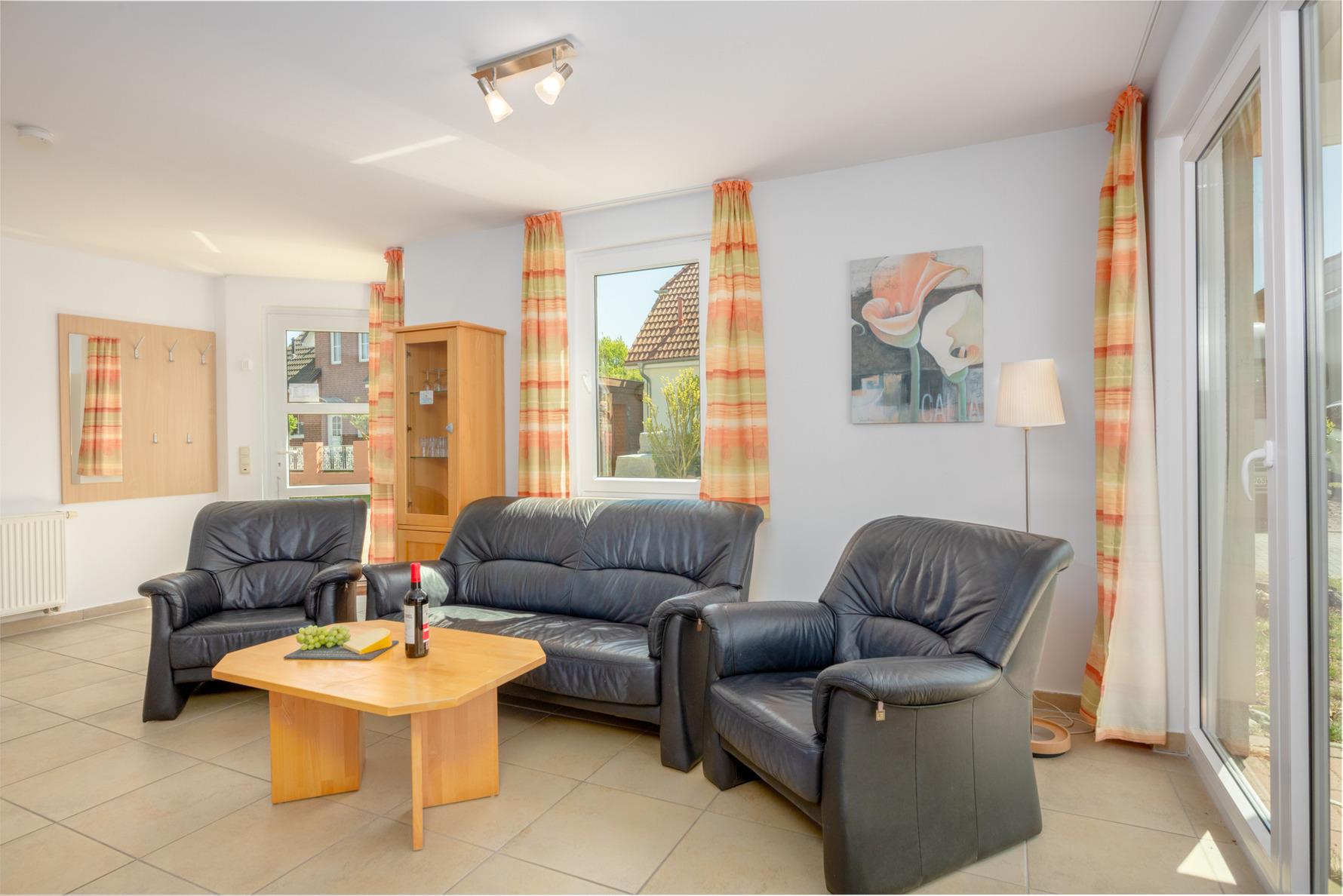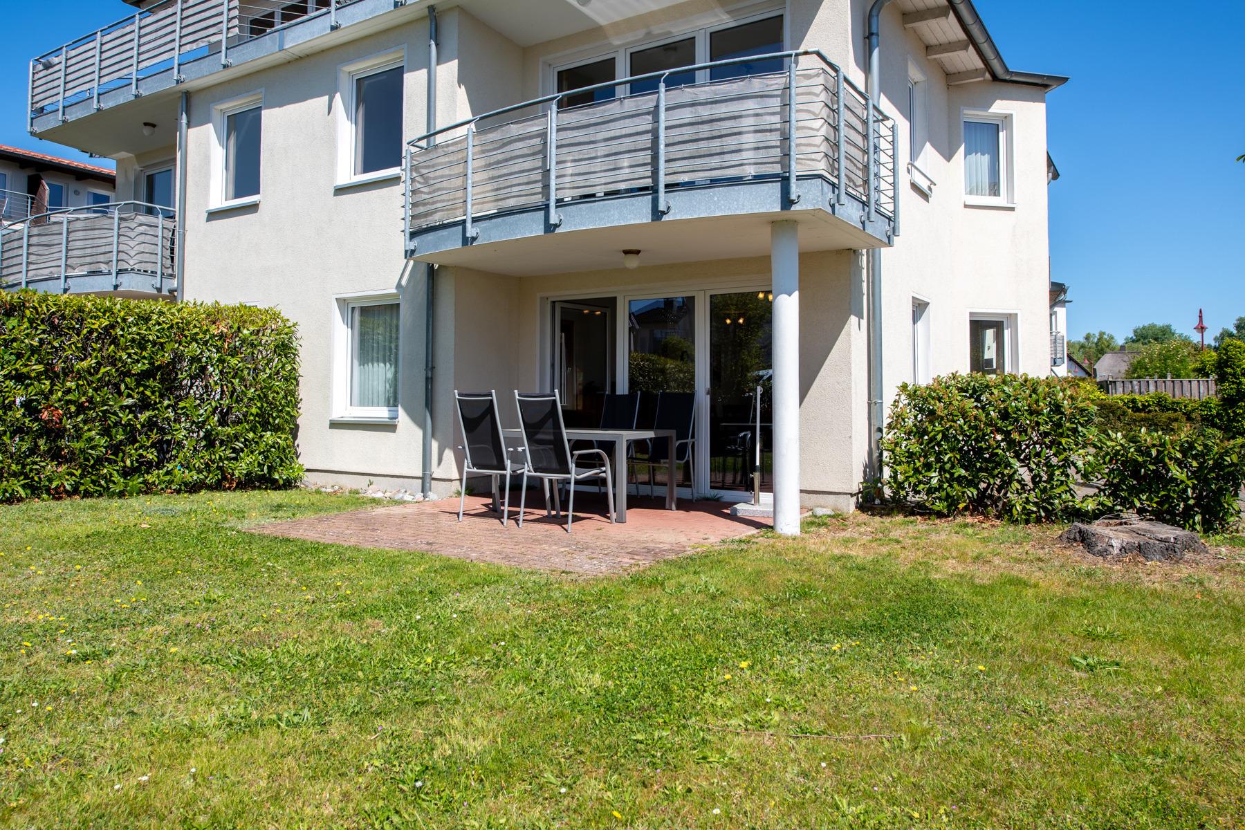 Die Erdgeschosswohnungen haben eine Größe von ca. 65 m² und bieten Platz für insgesamt 4 Personen. Sie sind mit 2 getrennten Schlafzimmern ausgestattet und verfügen über eine Terrasse mit Sitzmöglichkeiten für bis zu 4 Personen. In der Wohnküche befindet sich eine voll ausgestattete Küchenzeile mit Herd, Kühlschrank und Geschirrspüler. Das Badezimmer ist mit einer Dusche und einer Toilette ausgestattet. Die Wohnung ist barrierefrei zugänglich und verfügt über einen eigenen Parkplatz.