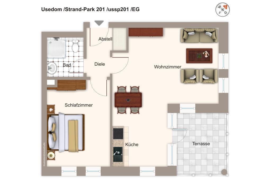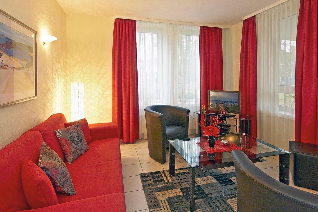 Das haustierfreie Apartment verfügt über kostenfreies WLAN und ist ausgestattet mit einem Duschbad, Schlafzimmer mit Doppelbett, Wohnbereich mit Schlafcouch, Flachbild-TV, DVD-Player, einer HiFi-Anlage und einer sonnigen Terrasse zur Südseite. Genießt den Ausblick in die liebevoll gepflegte Parkanlage.