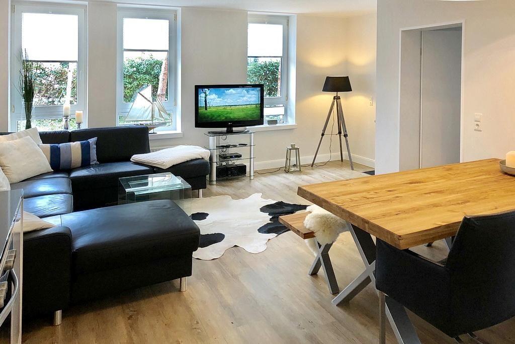 Die harmonisch eingerichtete Ferienwohnung verfügt über kostenfreies WLAN und zeichnet sich aus durch ein liebevolles Farbkonzept, kombiniert mit hochwertigem Mobiliar sowie einer individuellen Dekoration. Der helle Wohnbereich wird ergänzt durch einen behaglichen Essbereich mit einer offenen und voll ausgestatteten Küche mit Wasserkocher, Kaffeemaschine, Toaster, Eierkocher, Herd mit Ceranfeld und Backofen, Geschirrspüler, Mikrowelle und Kühlschrank mit Gefrierfach.