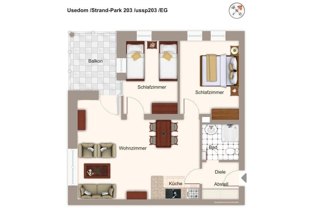 Das moderne, nordwestlich gelegene Apartment befindet sich im Erdgeschoss von Haus 2 in der beliebten Ferienanlage "Strand-Park". Den Strand und das Meer erreicht ihr gleich über die am Grundstück angrenzenden Strandpromenade.