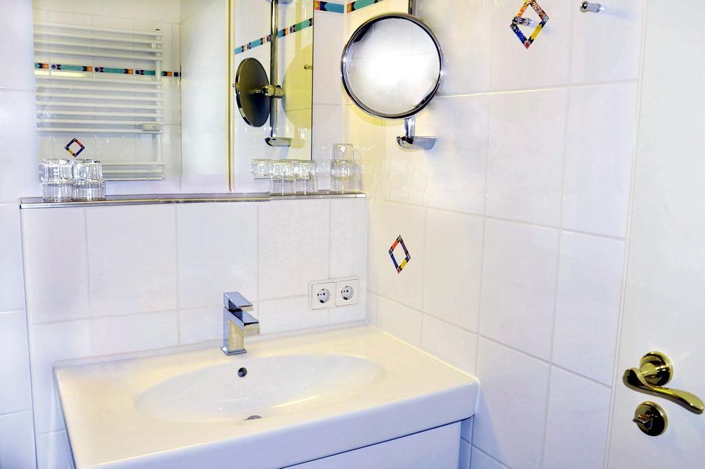 Das Wohnzimmer beinhaltet eine Ledercouchlandschaft, Flatscreen-TV und eine HiFi-Anlage. Das Bad verfügt über Dusche, WC, Handtuchheizkörper, Waschtisch, Föhn und Kosmetikspiegel. Zwei separate Schlafzimmer mit Doppelbett und Flatscreen-TV bzw. zwei Einzelbetten stehen euch zur Verfügung. Die gesamte Wohnung wurde mit einem hellen Design-Fußboden versehen. Wecker, Ganzkörperspiegel, Handstaubsauger, Minisafe, Insektenschutz in beiden Schlafzimmern und an der Terrassentür sowie Gesellschaftsspiele und Bücher vervollständigen das hochwertige Interieur eures Urlaubsdomizils.