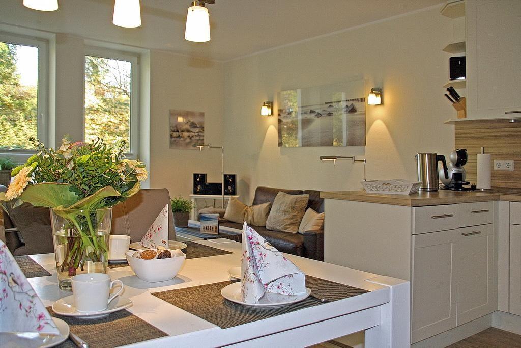 Das moderne Apartment bietet euch eine voll ausgestattete offene Küche mit Wasserkocher, Kaffeekapselmaschine (Dolce Gusto), Kaffeemaschine, Toaster, Ceranherd mit Backofen, Geschirrspüler, Mikrowelle und Kühlschrank mit Tiefkühlfach.