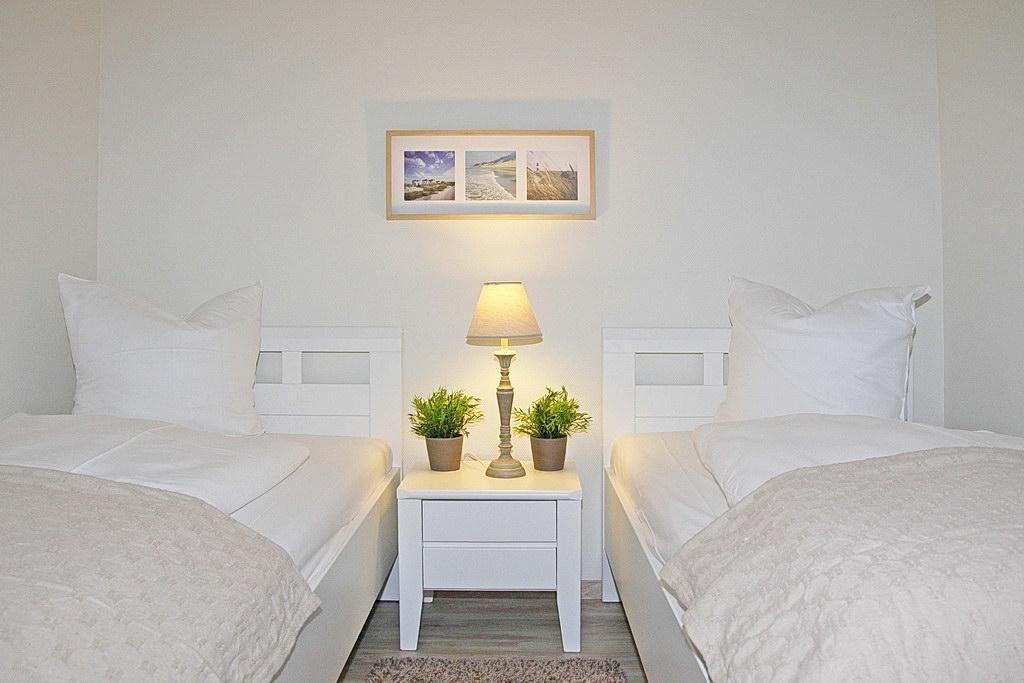 Die geschmackvoll eingerichtete Nichtraucher-Ferienwohnung mit Duschbad verfügt über kostenfreies WLAN und besteht aus zwei Schlafzimmern mit einem Doppelbett bzw. zwei Einzelbetten sowie aus einem Wohn-Essbereich mit Flatscreen-TV, Radio, Blu-ray-Player, DVDs und einer HiFi-Anlage. Vom Wohnbereich aus gelangt ihr auf die idyllisch gelegene Terrasse mit Blick ins Grün des parkähnlichen Gartens.