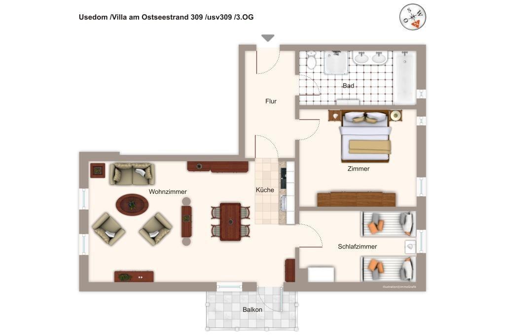 Ferienwohnungen direkt an der Strandpromenade von Heringsdorf gelegen, bietet euch die historische 'Villa am Ostseestrand'. Das 75 qm große 3-Zimmer-Apartment mit Balkon ist für bis zu 4 Personen geeignet.
