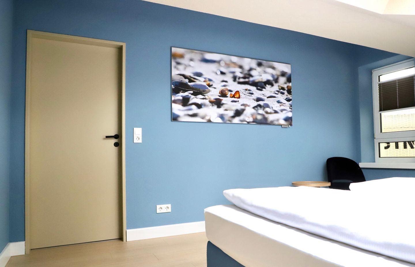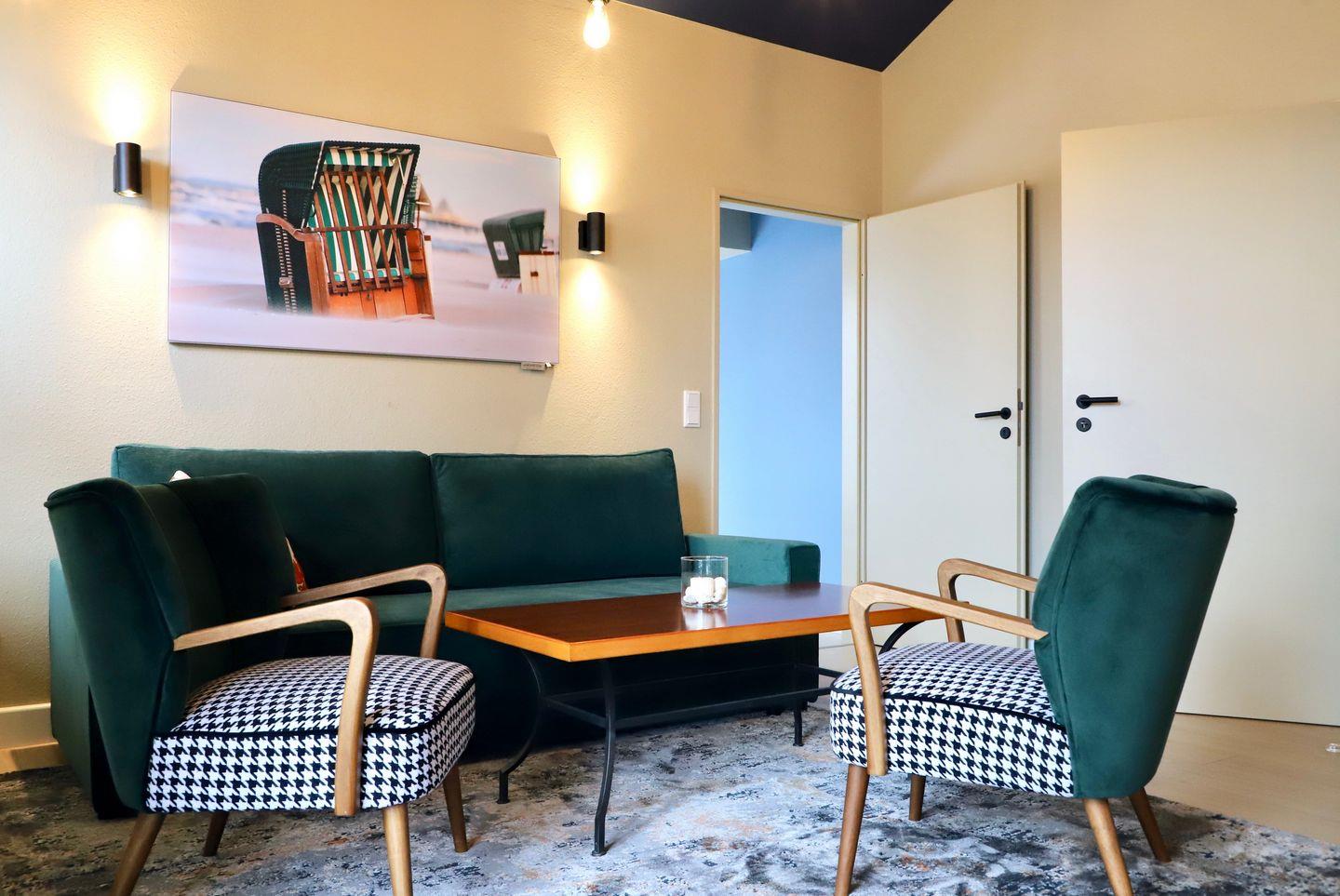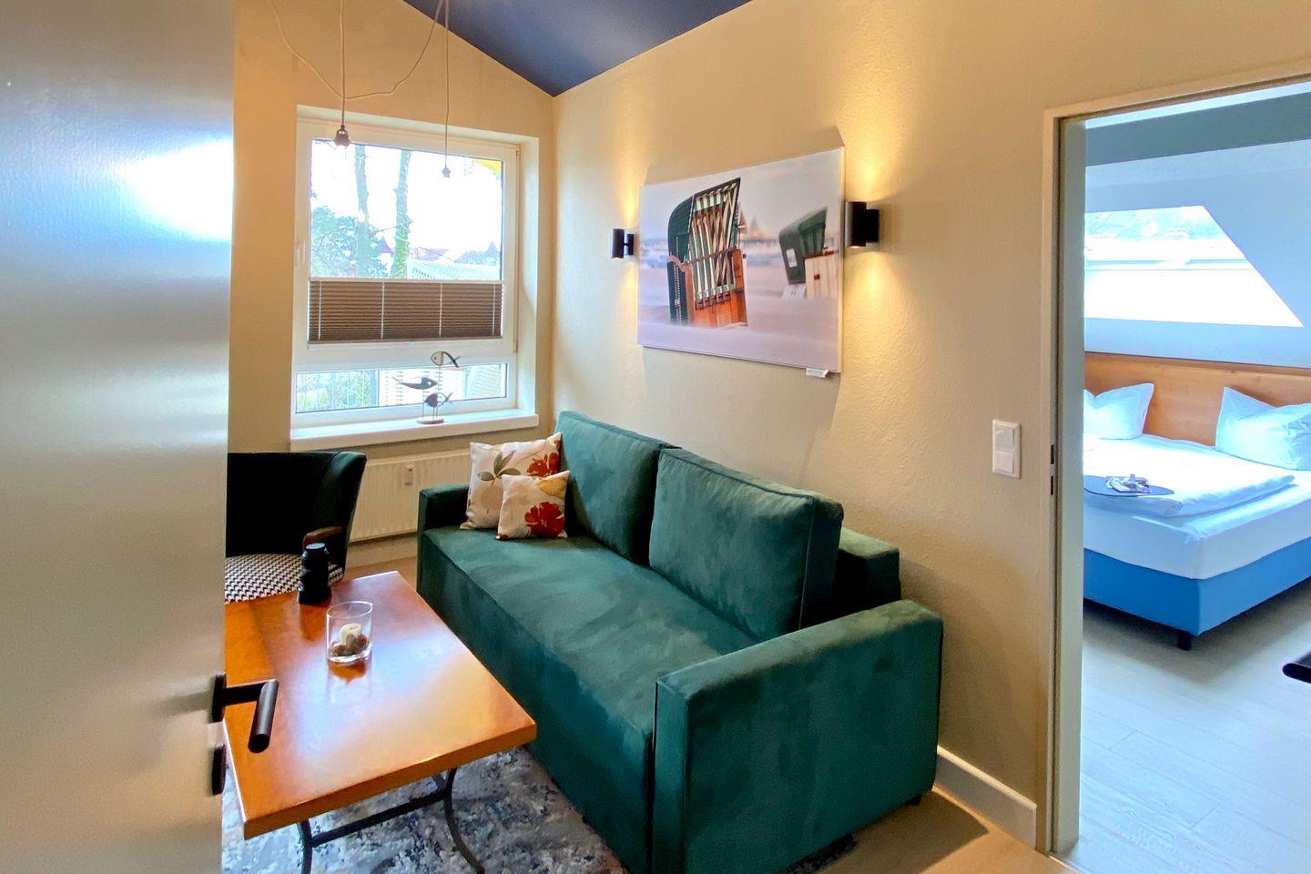 Die helle Nichtraucher-Ferienwohnung mit Duschbad verfügt über kostenfreies WLAN und besteht aus zwei Schlafzimmern mit jeweils einem Doppelbett, einem Wohnbereich mit Doppelschlafcouch, Flatscreen-TV, DVD-Player und HiFi-Anlage. Eine große Auswahl an Gesellschaftsspielen garantiert ausgelassene Abende mit der ganzen Familie. Vom Wohnbereich aus habt ihr Zugang zum 20 qm großen und überdachten Balkon in sonniger Südlage mit eigenem Strandkorb und Blick ins Grün der Parkanlage.