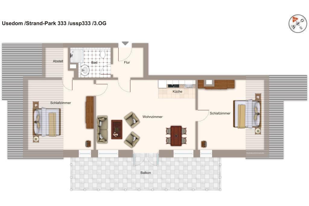 Die Ferienanlage „Strand-Park“ liegt direkt an der Strandpromenade von Heringsdorf. Das 68 qm große 3-Zimmer-Apartment mit großem überdachten Südbalkon mit Strandkorb ist für bis zu 6 Personen mit Familienhund geeignet.