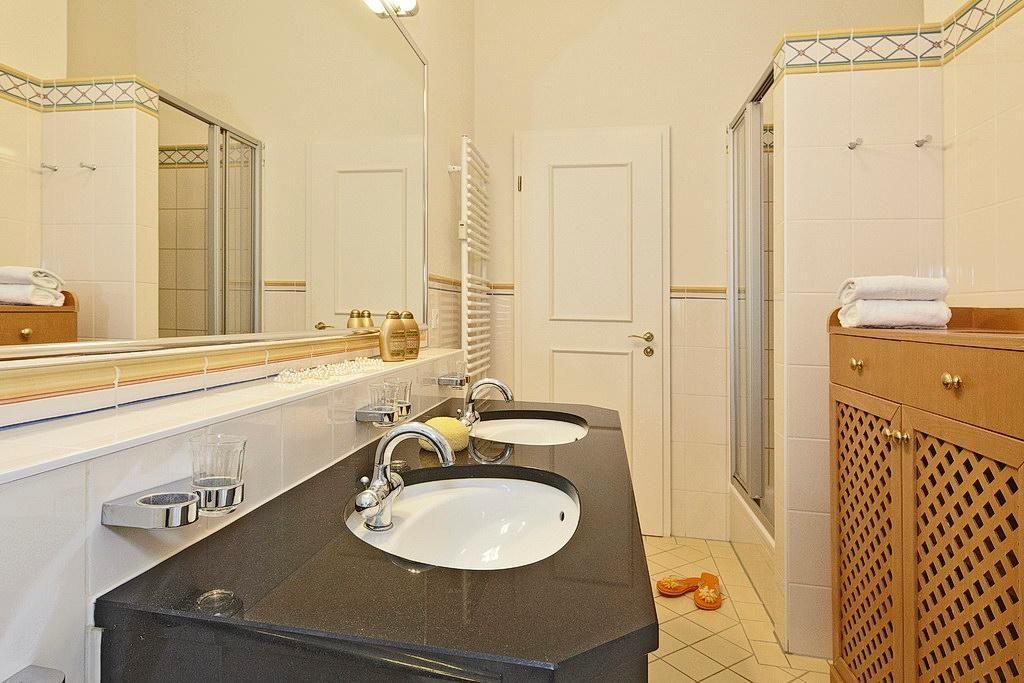 Das Nichtraucherapartment verfügt über kostenfreies WLAN und eine voll ausgestattete offene Küche mit Geschirrspüler, Kühlschrank mit Gefrierfach, Kaffeemaschine, Toaster, Wasserkocher, Ceranherd mit Backofen und Mikrowelle. Zwei Schlafzimmer beinhalten ein Doppelbett bzw. zwei Einzelbetten. Im Wohnbereich mit dekorativem Elektrokamin stehen euch ein Flatscreen-TV, ein CD-Player, Radio und eine Auswahl an Spielen zur Verfügung. Das Badezimmer mit Dusche und Badewanne beinhaltet WC, Doppelwaschbecken, Handtuchwärmer, Föhn und Kosmetikspiegel und verfügt über Tageslicht. Der hübsche und sonnige Balkon in Süd-West-Lage mit Blick auf die benachbarten Villen ist mit Gartenmöbeln ausgestattet.