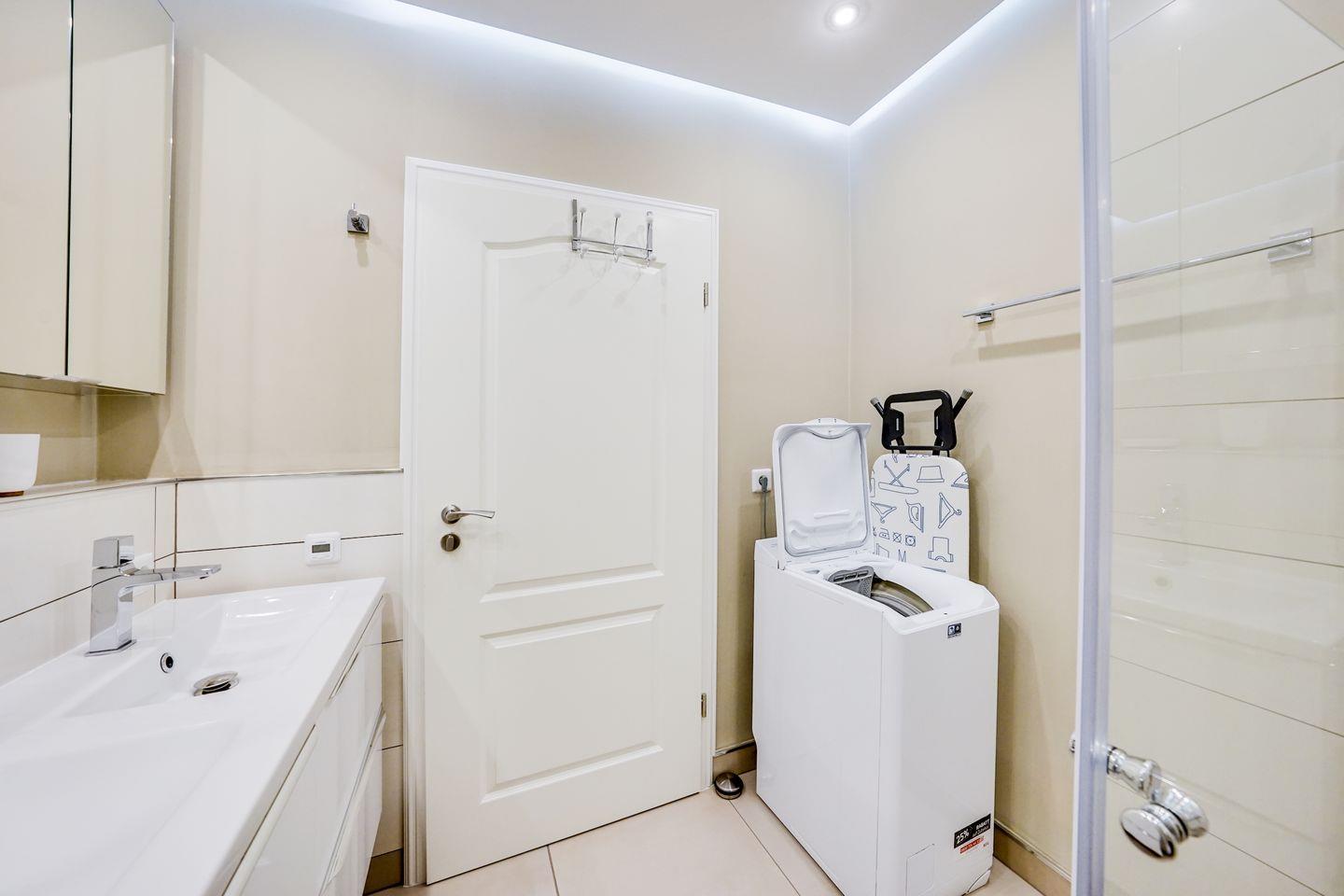 Die hochwertig ausgestattete Wohnung verfügt über ein geräumiges Wohnzimmer, das in das Schlafzimmer mit großem Bett übergeht. Zudem hat die Wohnung eine gut ausgestattete Wohnküche. Im Bad ist neben dem Doppelwaschbecken und der Dusche auch eine Waschmaschine zu finden.