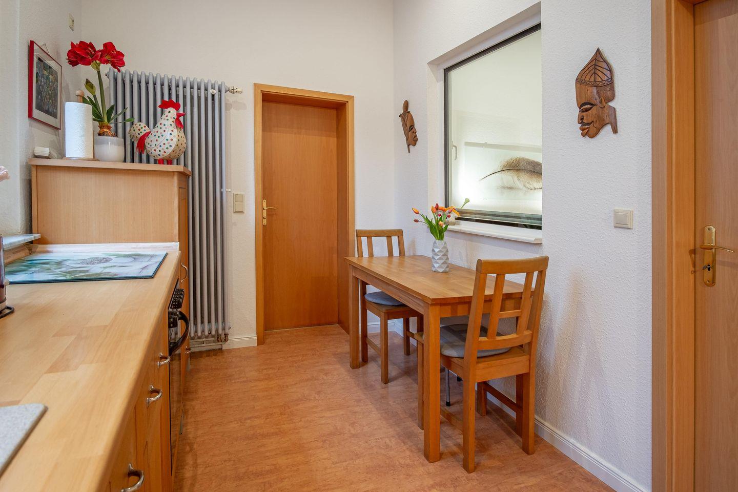 Ferienwohnung "Strand" in Heringsdorf: Ideal für zwei Erwachsene und ein Kind. Kurze Wege zu Fußgängerzone und Strand, nahe Kur- und Erholungswald. Ausstattung: Queen-size Bett, Schlafsofa, TV, Bücher, Brettspiele, voll ausgestattete Küche. Außenbereich zum Entspannen. Kostenfreier Parkplatz inklusive. Haustiere willkommen (max. ein Tier, eigenes Bett/Decke mitbringen). Ideal für entspannten Usedom-Urlaub.