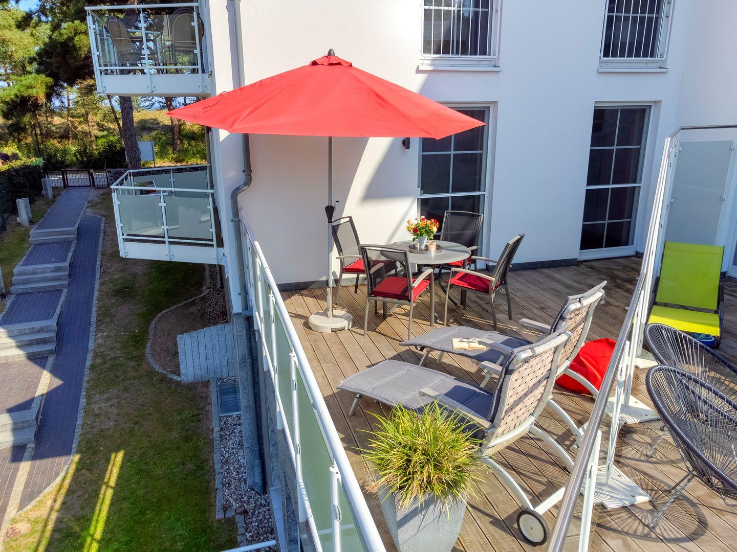 Genießen Sie diese mit 5-DTV-Sternen zertifizierte, moderne und individuell eingerichtete 3-Zimmer Ferienwohnung mit der über 20 qm großen Sonnendachterrasse nach Südwesten und dem Westbalkon mit Blick zur Strandpromenade. Hier können Sie herrlich entspannt frühstücken, essen oder sonnenbaden. Die im 1. Obergeschoß gelegene, komfortable Wohnung verfügt über beheizte Granitfußböden und edle Parkettfußböden in den 2 Schlafzimmern, sowie ein geräumiges Wohn -und Esszimmer und eine hochwertige, voll ausgestattete Küche.