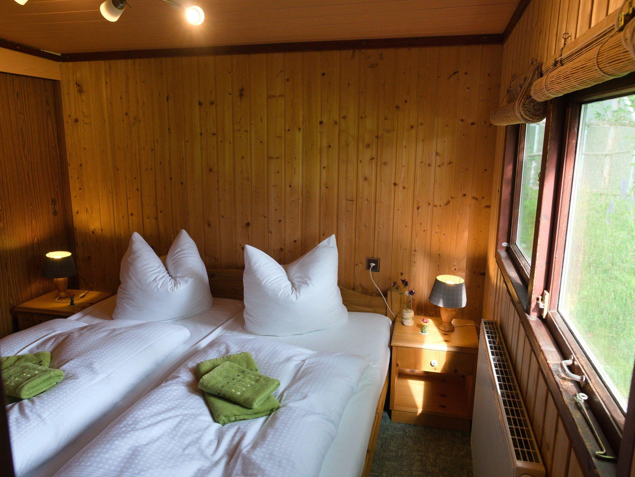 Es befinden sich im Haus in der ersten Etage 3 Ferienwohnungen für jeweils bis zu 4 Gästen. Im Garten mit Blick auf Teich und Wald befindet sich unser gemütlicher Bungalow auch für bis zu 4 Gästen. Alle Wohnungen sind einzeln abschließbar und über einen seperaten Eingang nutzbar.