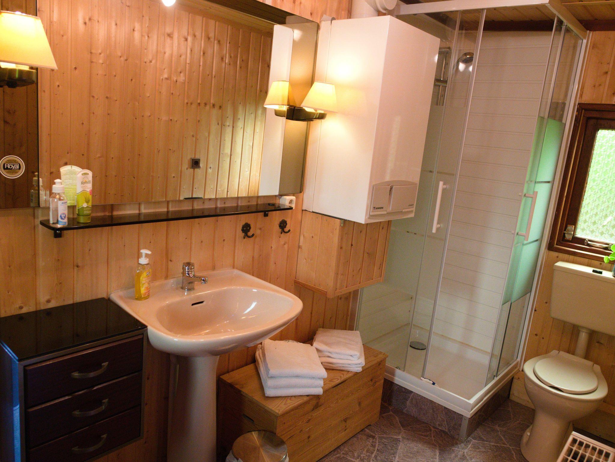 Außerdem gibt es ein seperates Bad mit Dusche, Waschbecken und WC