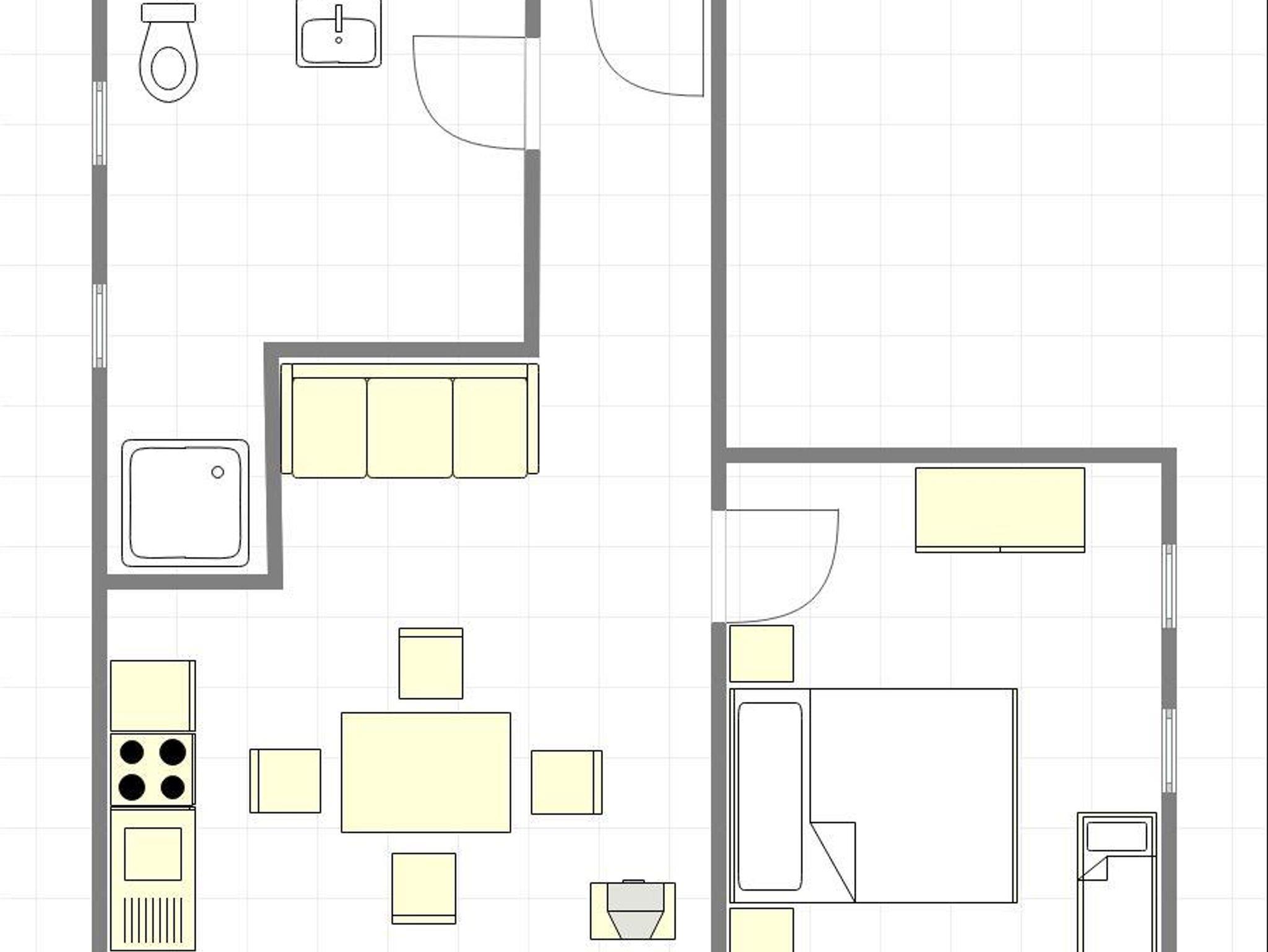 Die Küche ist mit einen 2-Platten-Herd, Wasserkocher, Kaffeemaschine, Toaster und ausreichend Geschirr, Töpfen und Besteck ausgestattet.