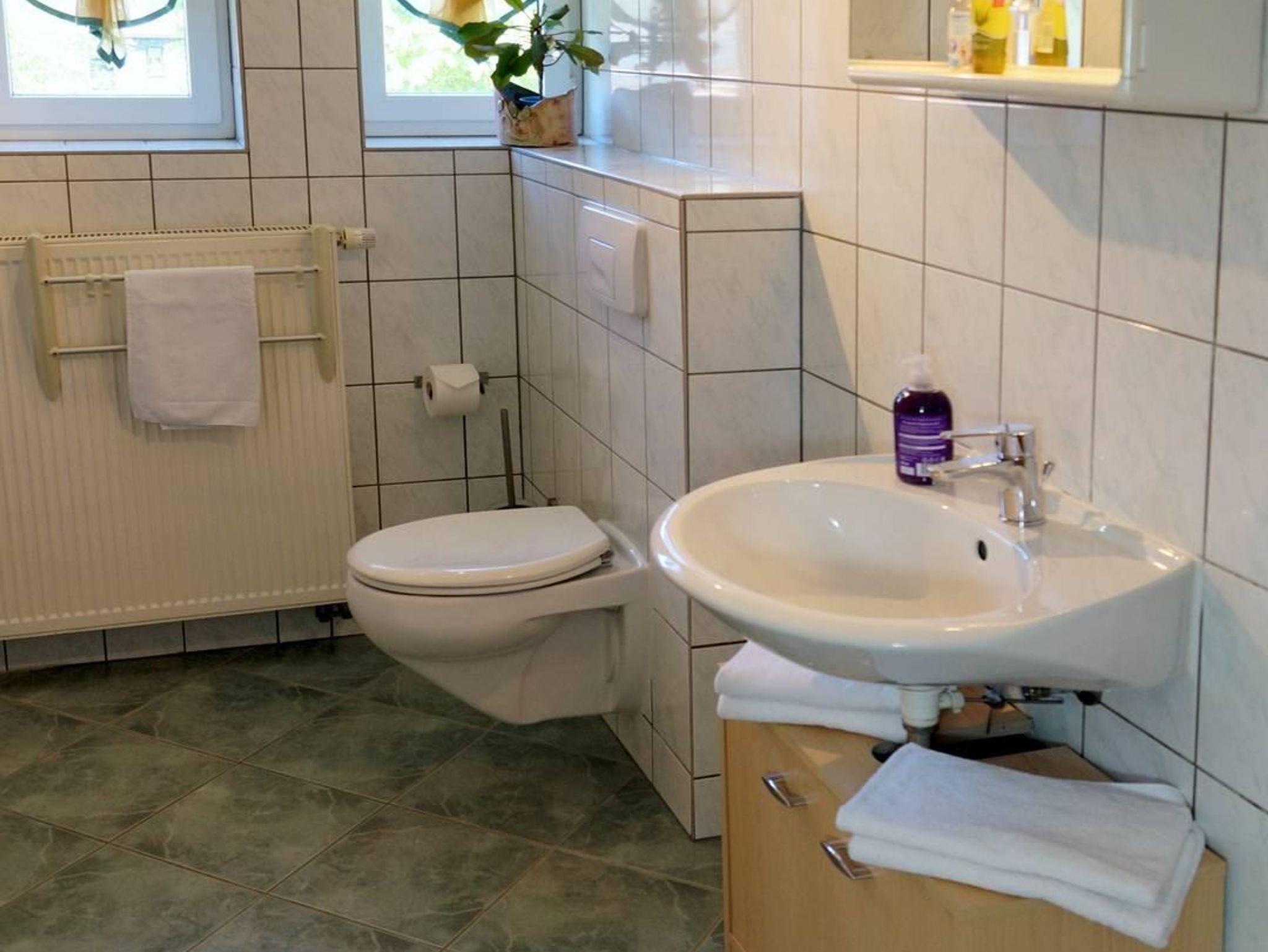 Außerdem gibt es ein seperates Bad mit Dusche, Waschbecken und WC