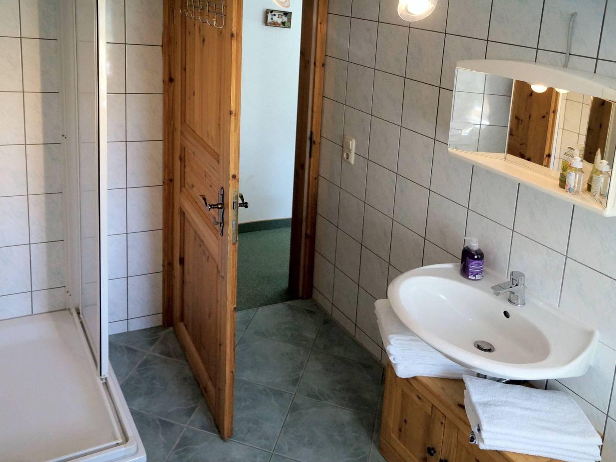 Außerdem gibt es ein seperates Bad mit Dusche, Waschbecken und WC