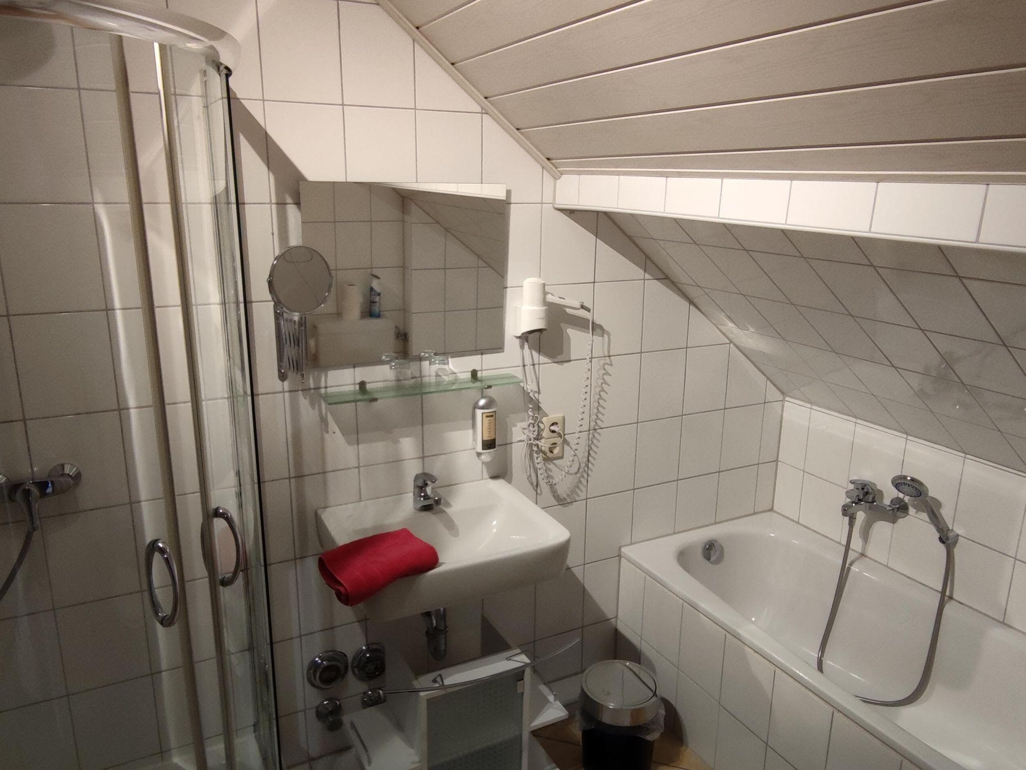 Das Badezimmer ist mit Dusche, WC, Föhn sowie einer separaten Badewanne ausgestattet und sorgt für zusätzlichen Komfort. Herzstück der Wohnung ist die separate Wohnküche, die mit einer Einbauküche, einer gemütlichen Essecke, einem Flachbildfernseher mit Sat-TV und einer Stereoanlage ausgestattet ist.
