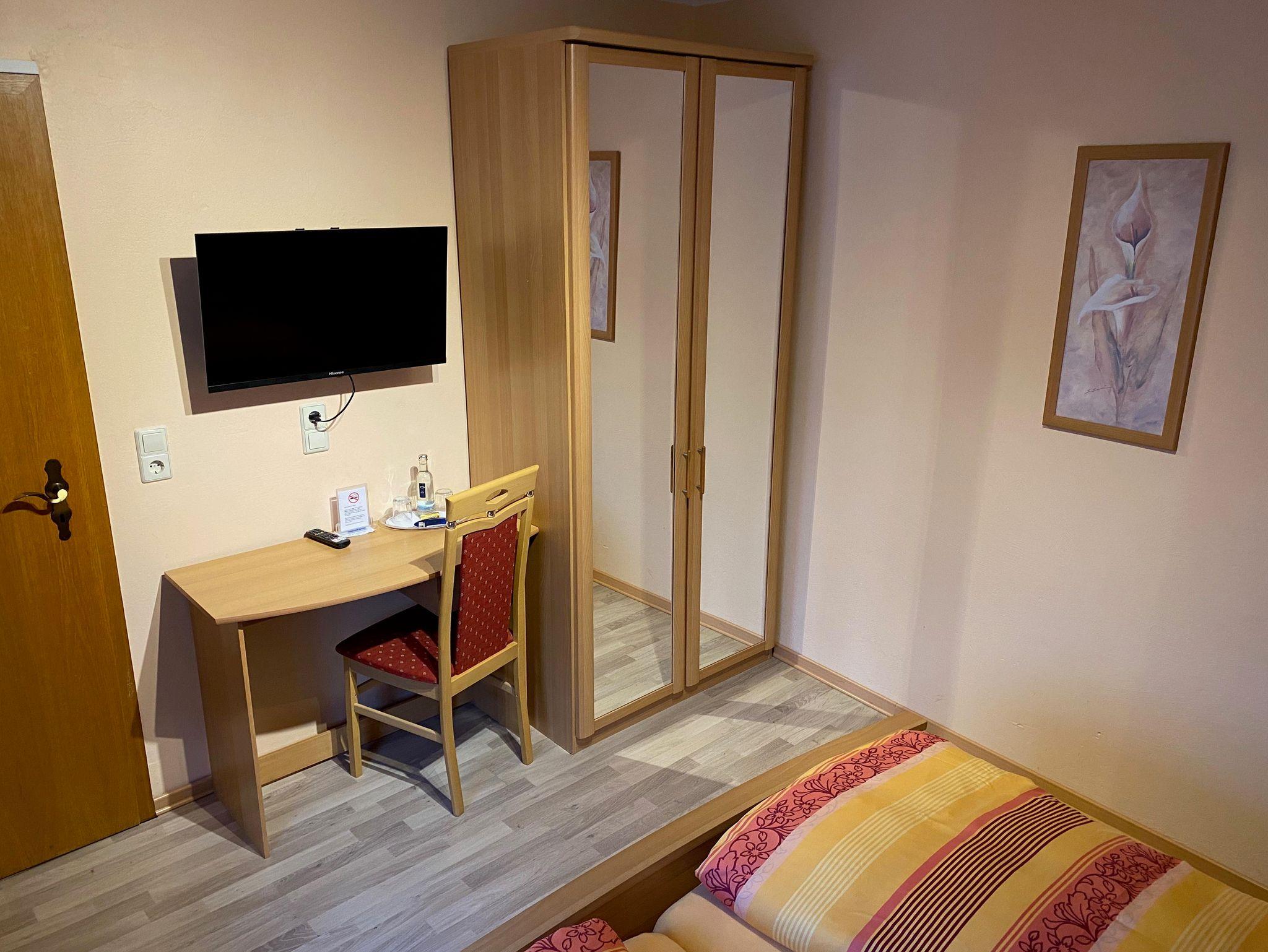 Unsere Klassik-Zimmer bieten Ihnen eine komfortable und funktionale Ausstattung für einen angenehmen Aufenthalt. Jedes Zimmer verfügt über ein bequemes Bett sowie einen praktischen Kleiderschrank für Ihre persönlichen Dinge. Das Badezimmer ist mit Dusche, WC und Föhn ausgestattet.
