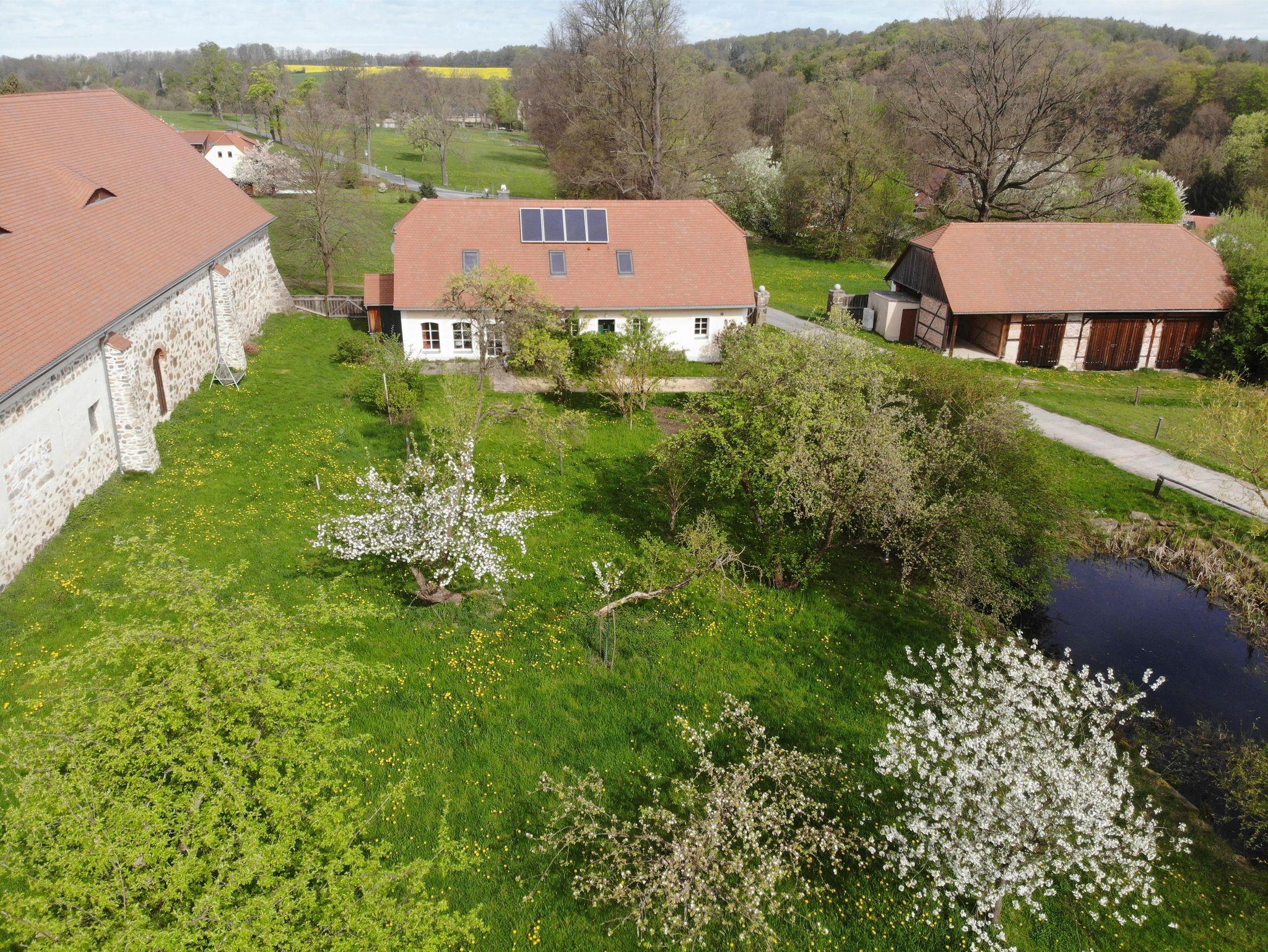 Das Ferienhaus befindet sich im sehr schön sanierten Ensembles des Niederruppersdorfer Rittergutes. Es ist eines der Torhäuser zum Rittergut. Es ist umgeben von weitläufigen Wiesen und liegt unmittelbar am Hofteich. Das Ferienhaus bietet 2 Ferienwohnungen, in welchem bis zu max. (7+8)=15 Personen ein ländliches Erlebnis erleben können. Sie finden dort Sitzmöglichkeiten sowie einen Platz für Lagerfeuer oder zum Grillen.