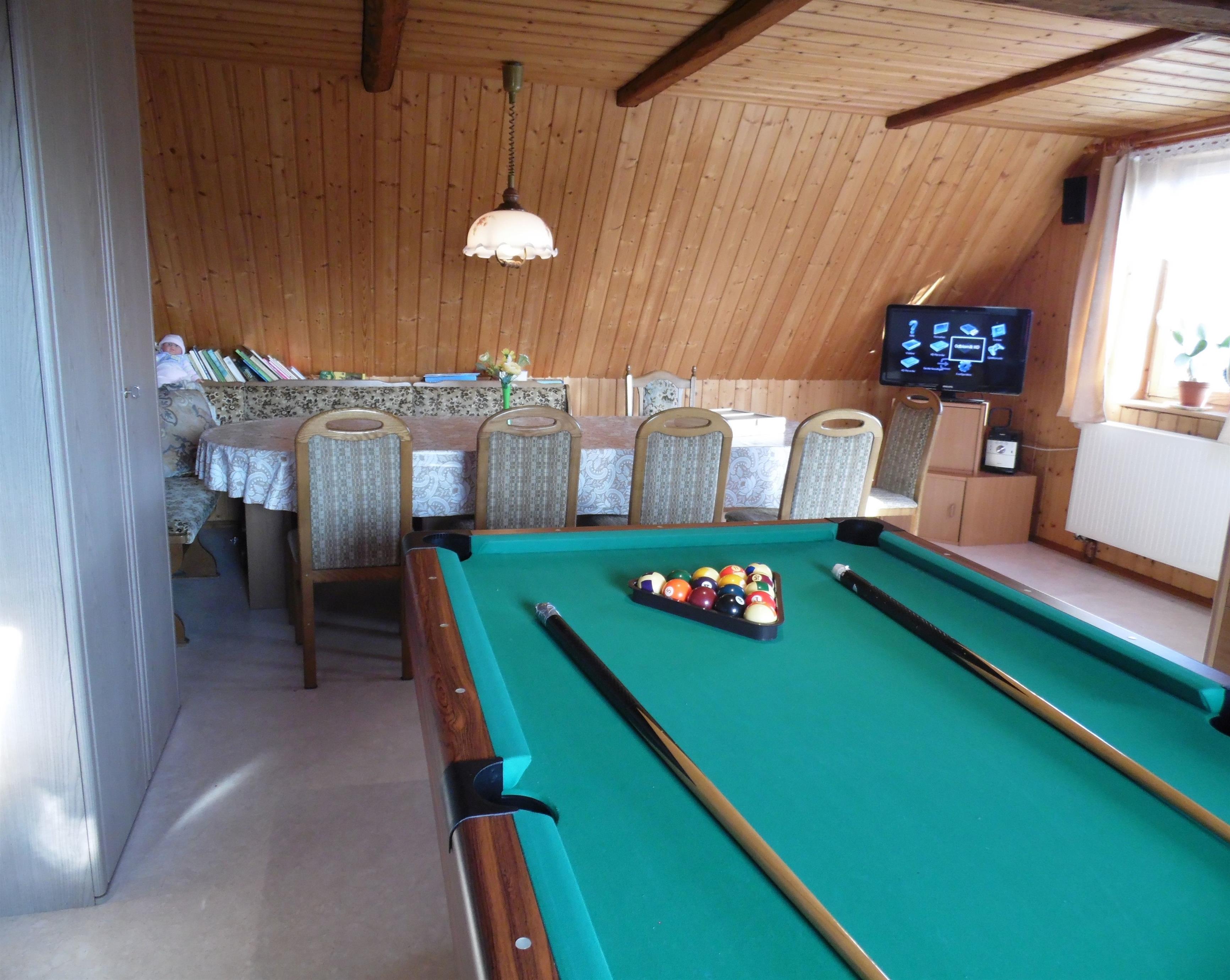Im Wohnhaus kann ein Aufenthaltsraum (im Winter mit Heizungsaufpreis ) mit Billard und Balkon genutzt werden!
