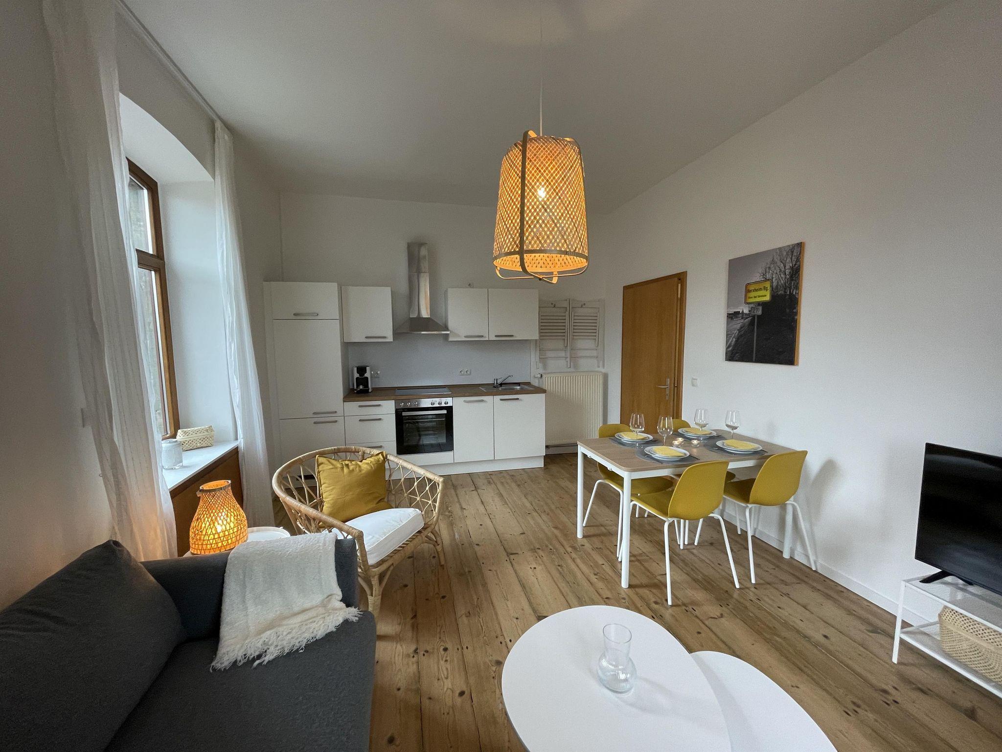 Die Wohnung ist fast im Original vorhanden. Möbelstücke, Boden etc. wurden weitestgehend übernommen und geben dieser Ferienwohnung einen Nostalgie-Style.
